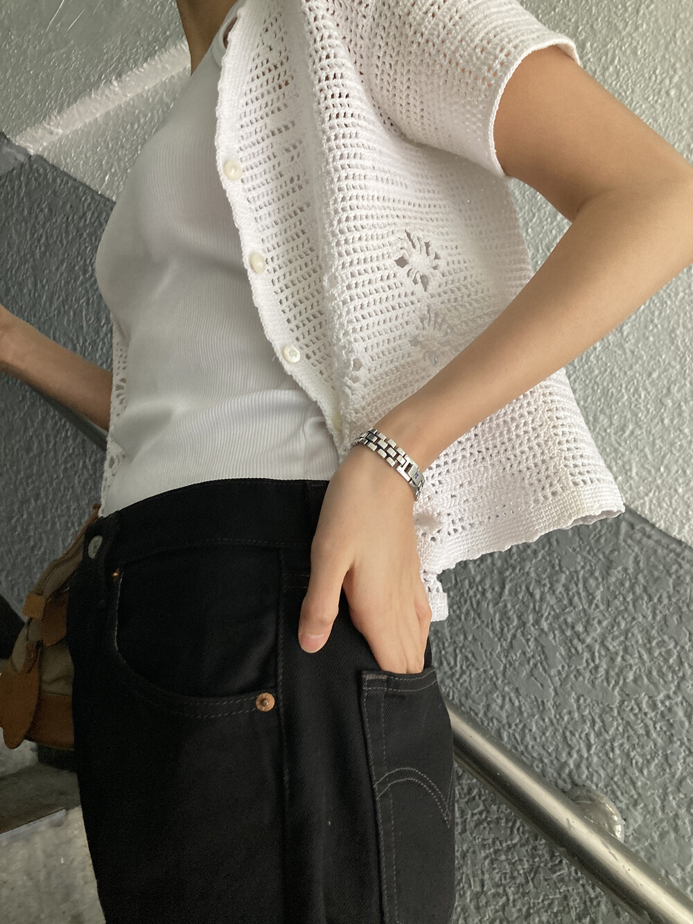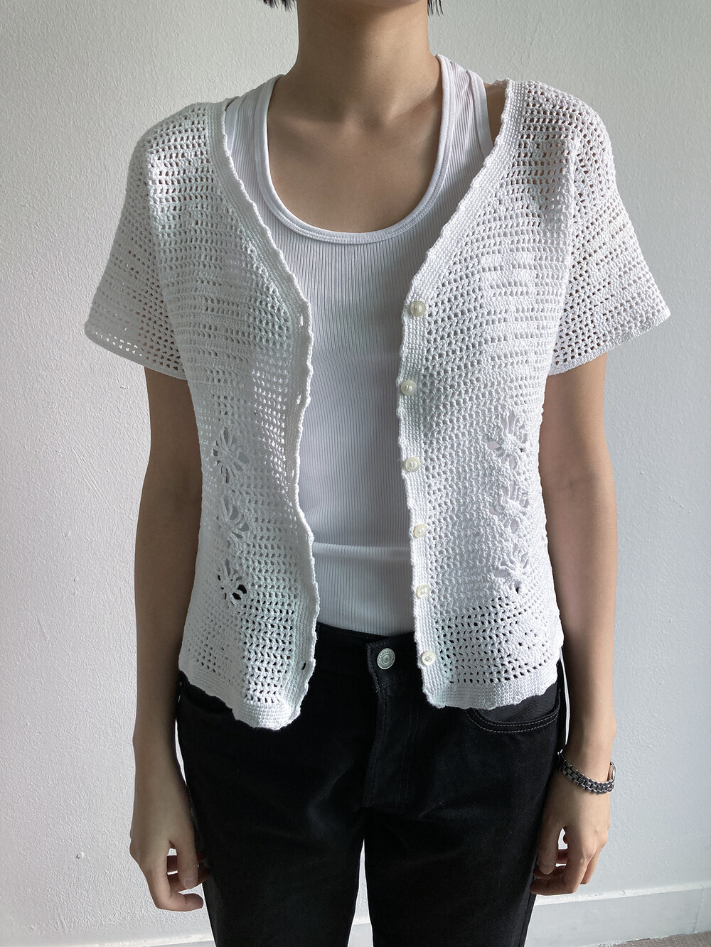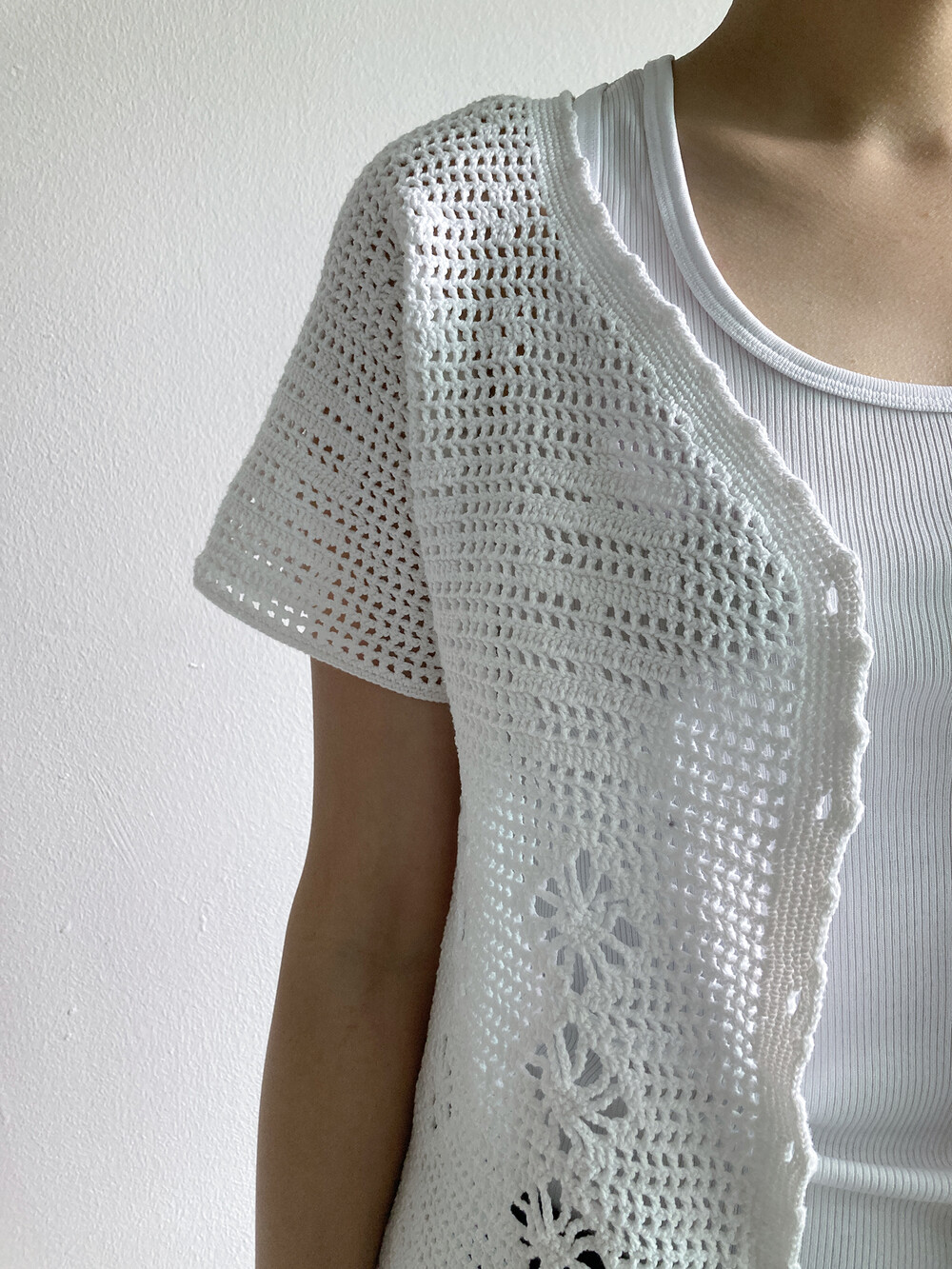 white crochet cardigan