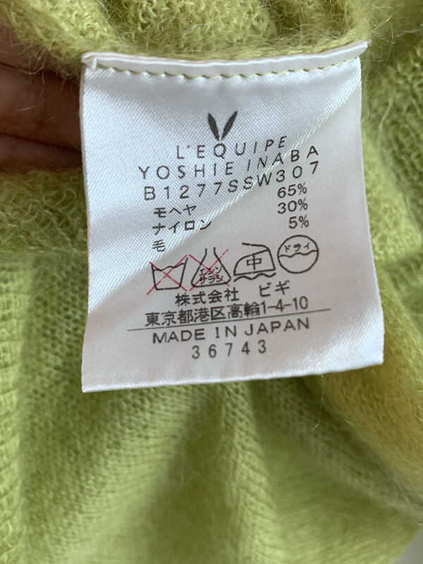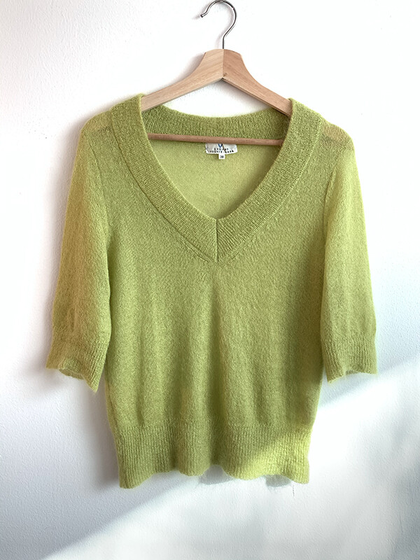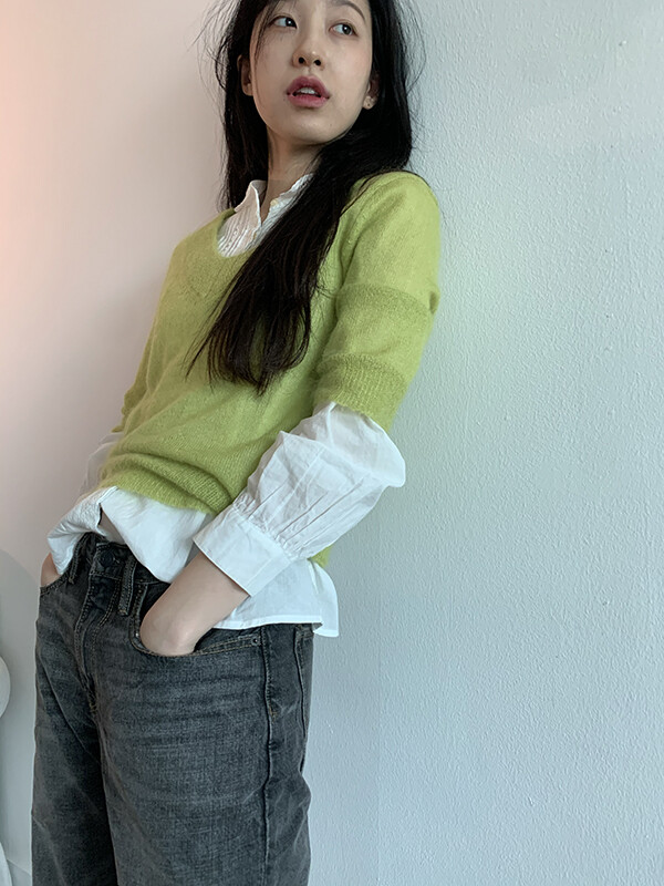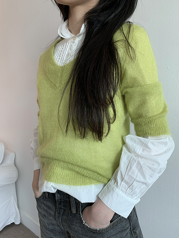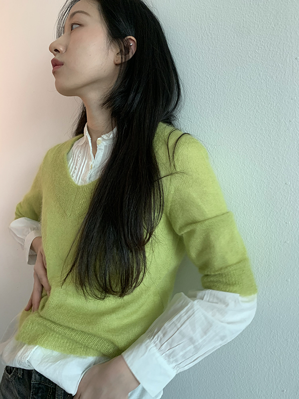 밝은 그린올리브 컬러의 모헤어 니트입니다