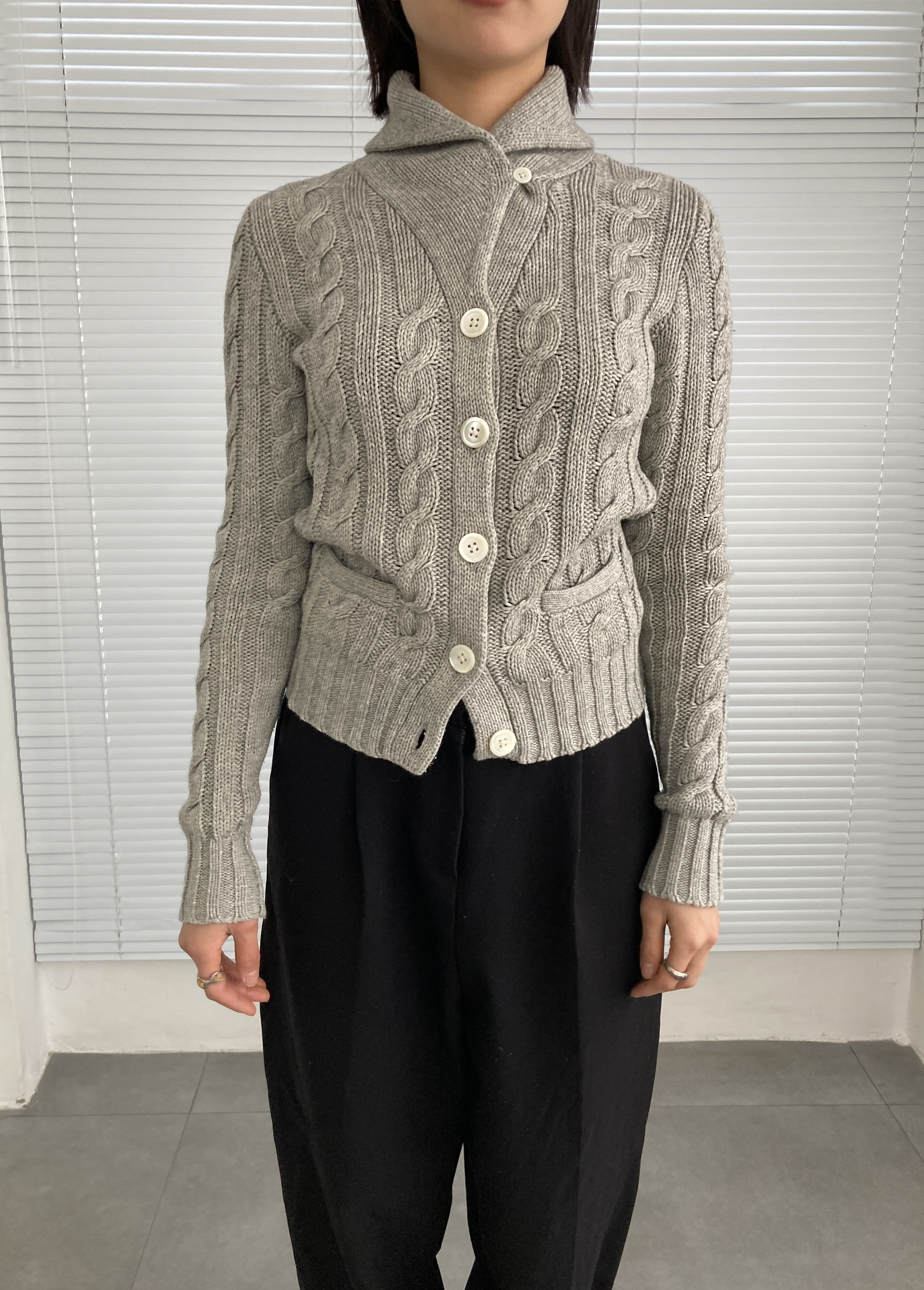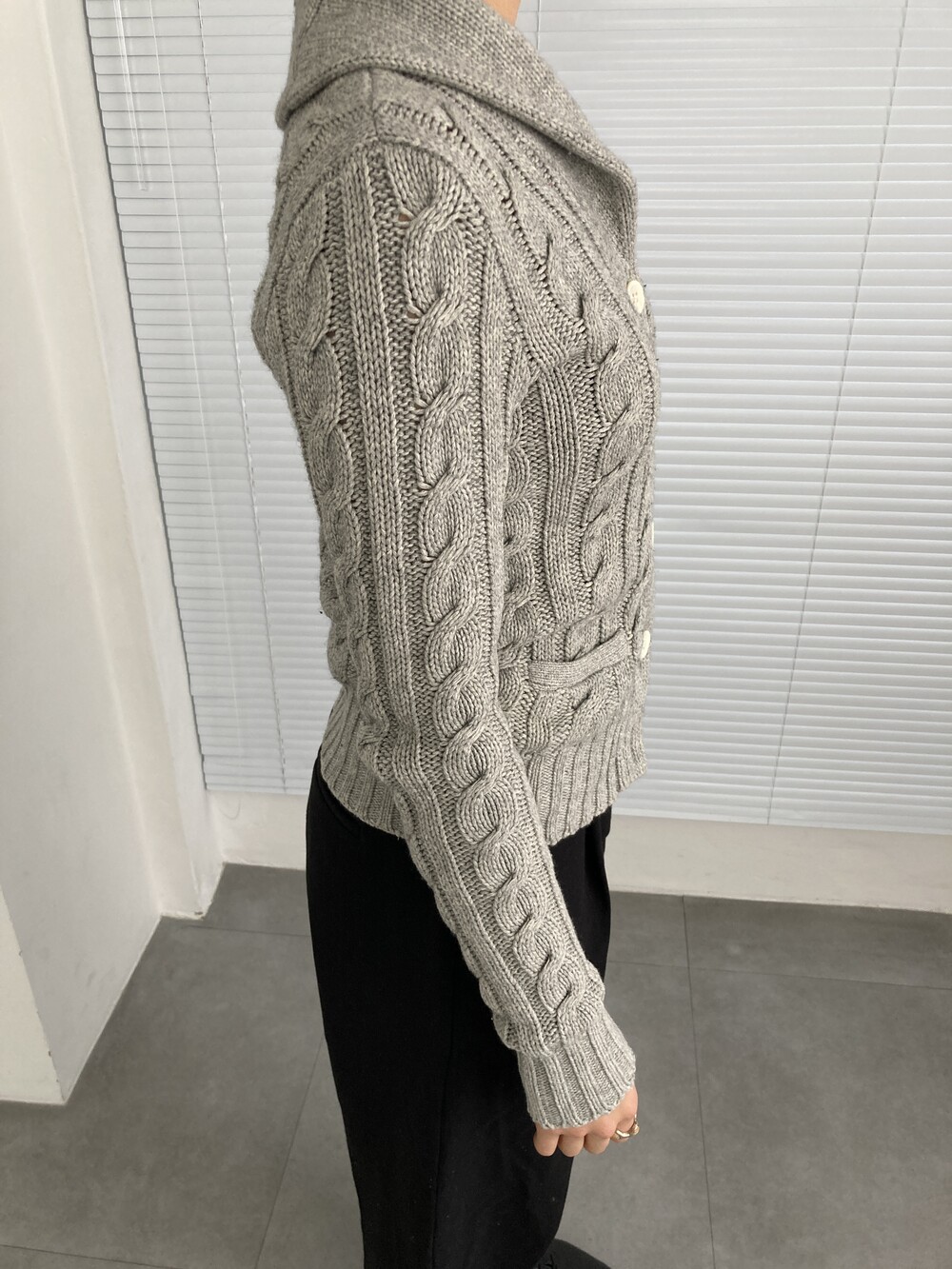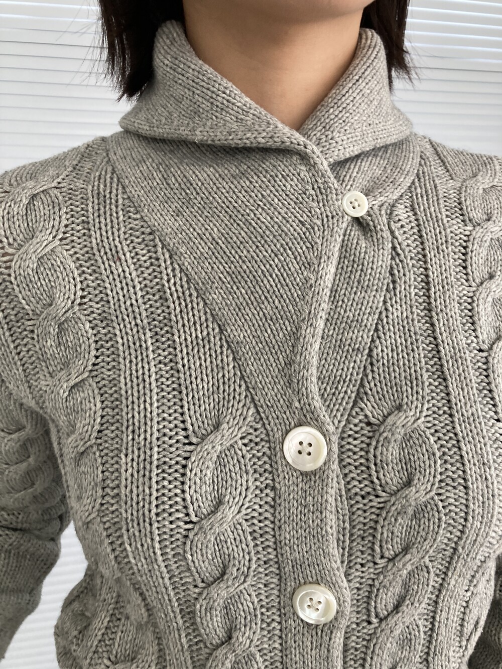 RALPH LAUREN grey cable knit shawl collar cardigan
