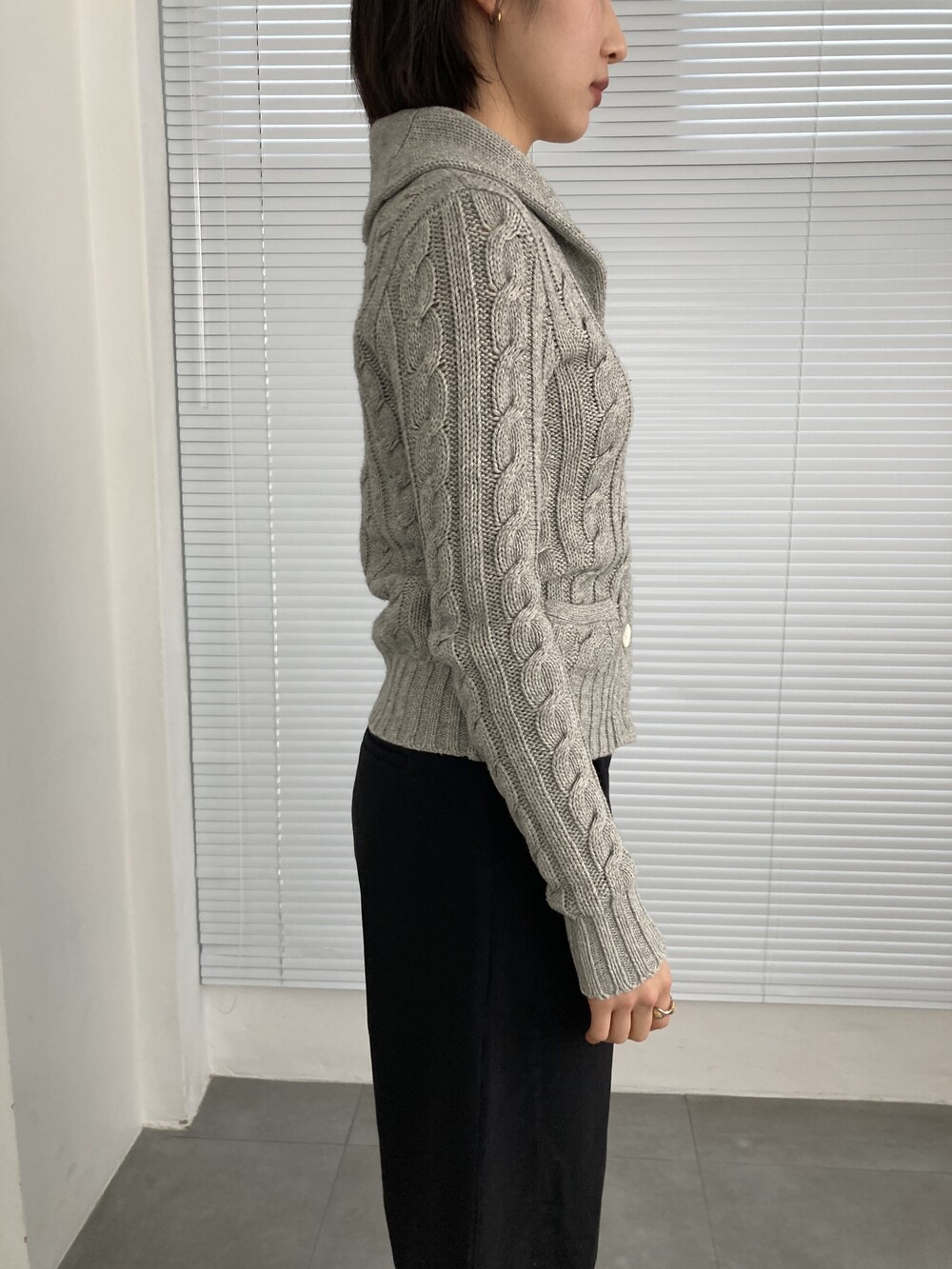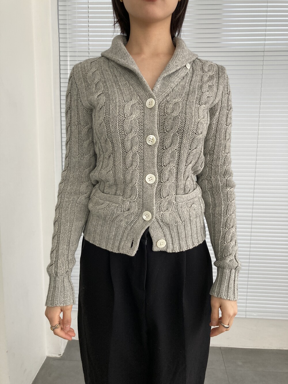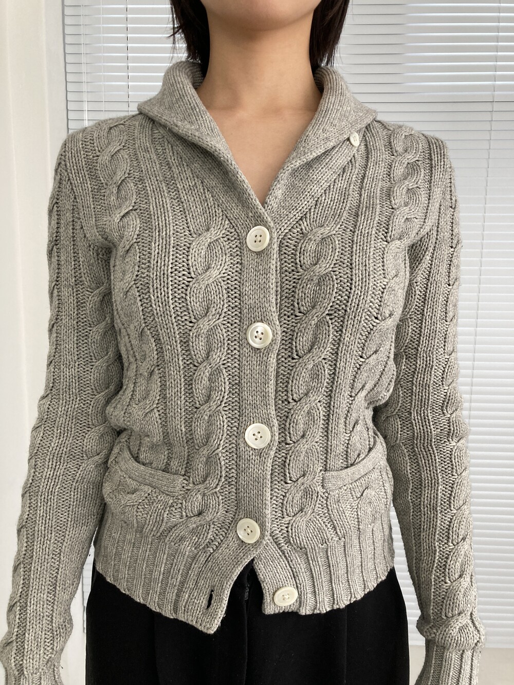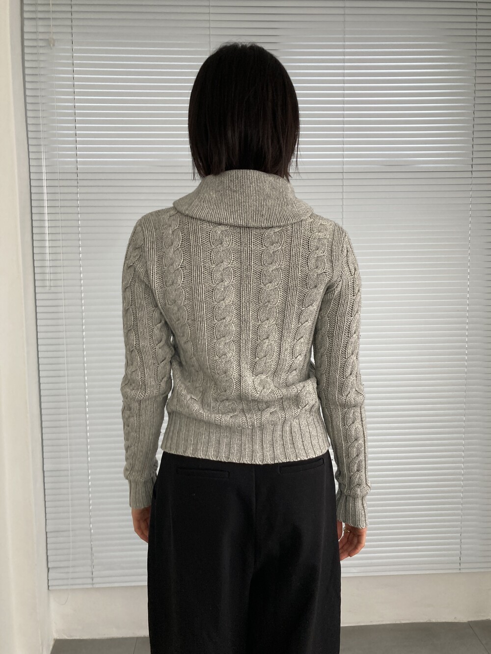 RALPH LAUREN grey cable knit shawl collar cardigan