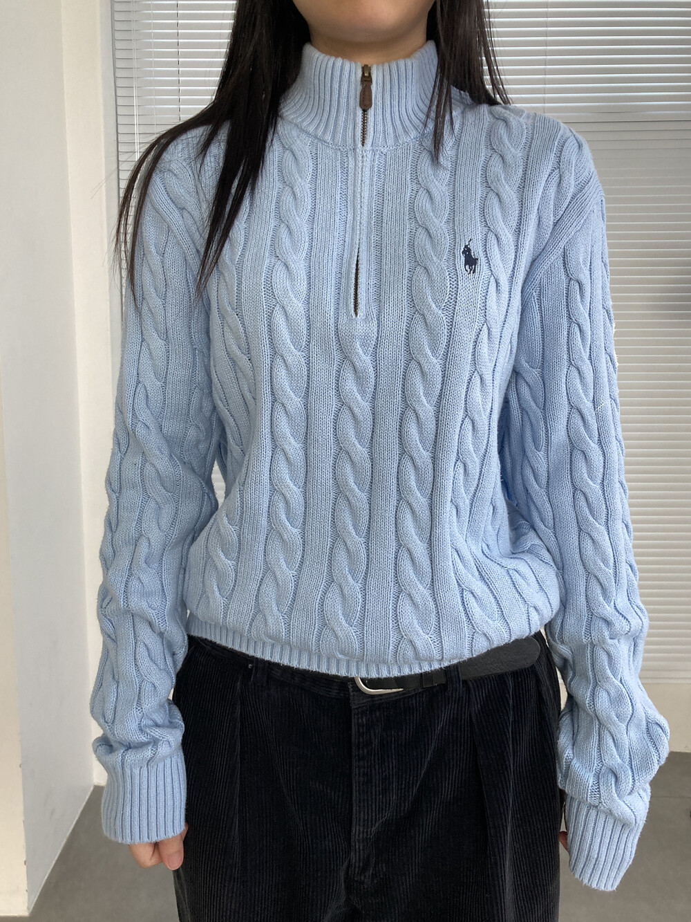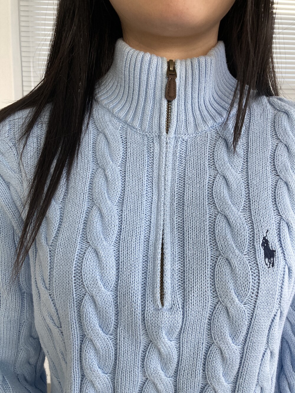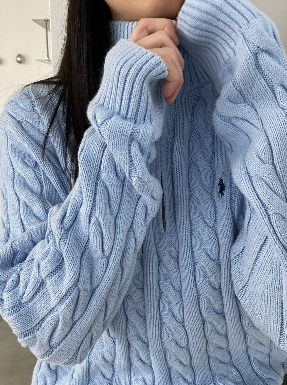POLO RALPH LAUREN light blue cable half zip knit