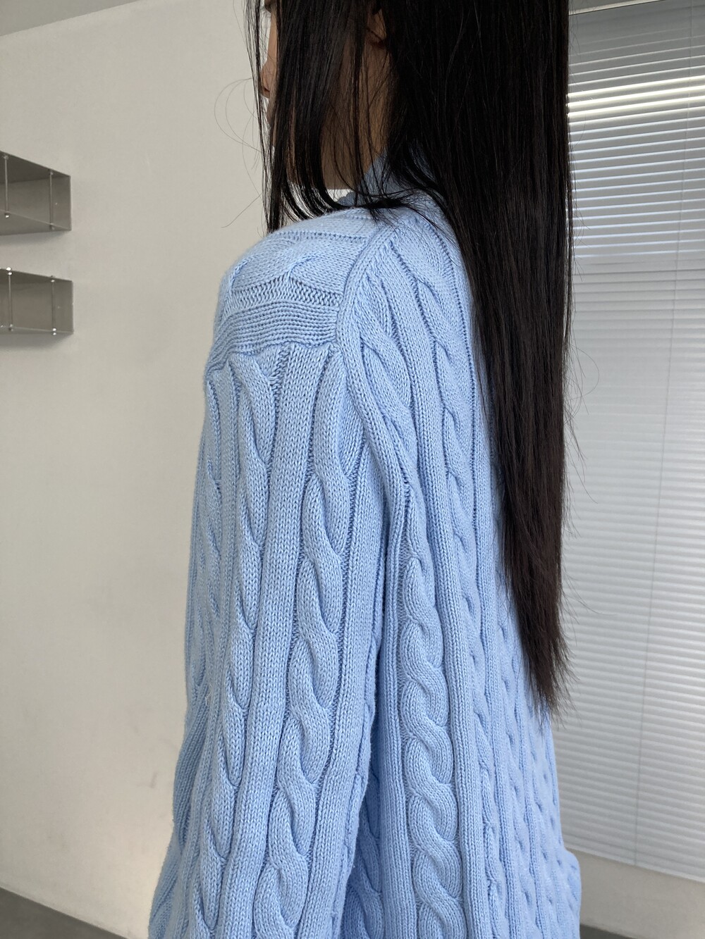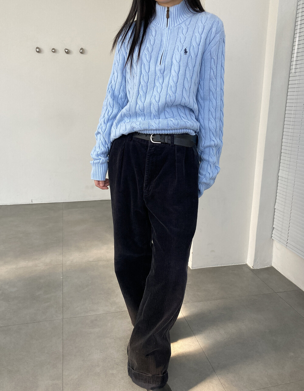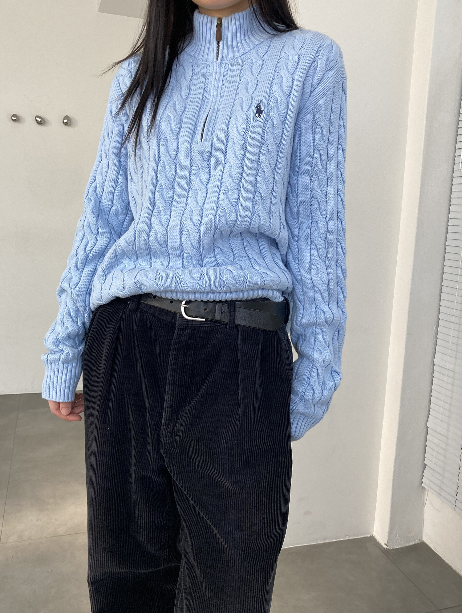 POLO RALPH LAUREN light blue cable half zip knit