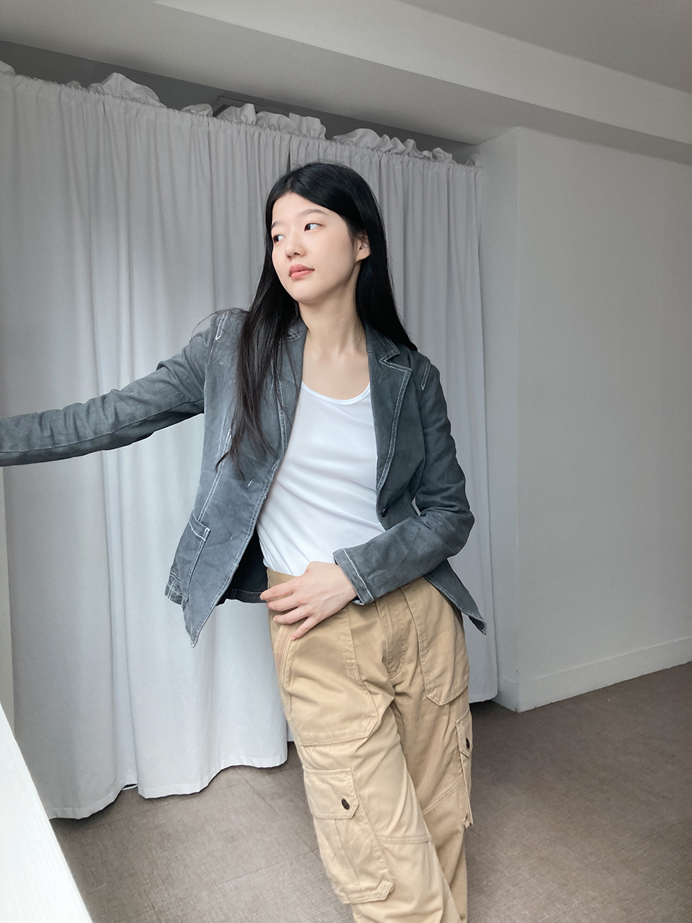 I.C.B의 그레이컬러 데님 자켓입니다.