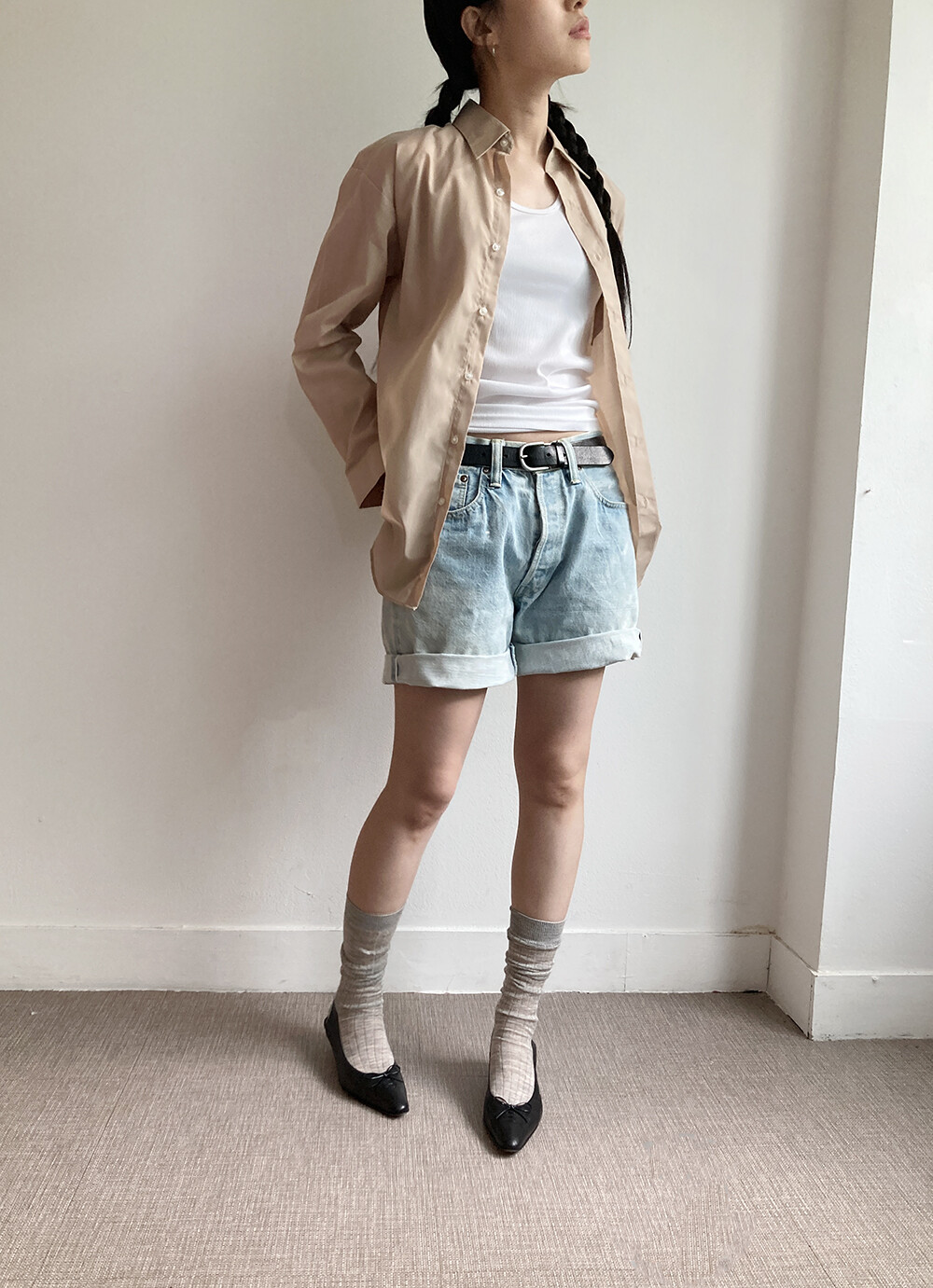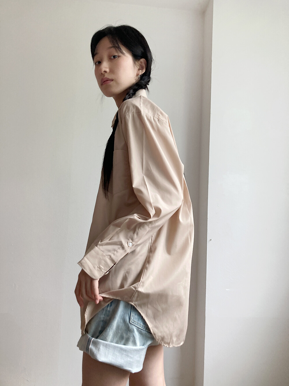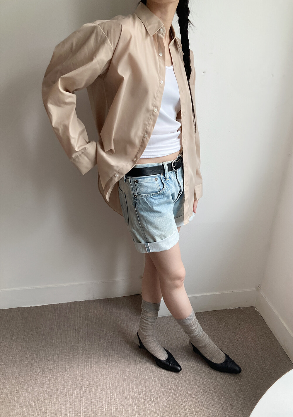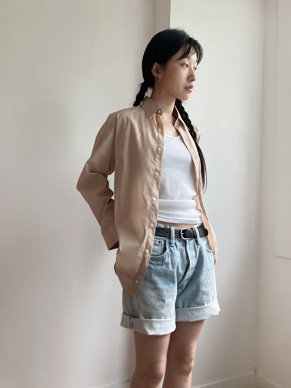 beige shirt