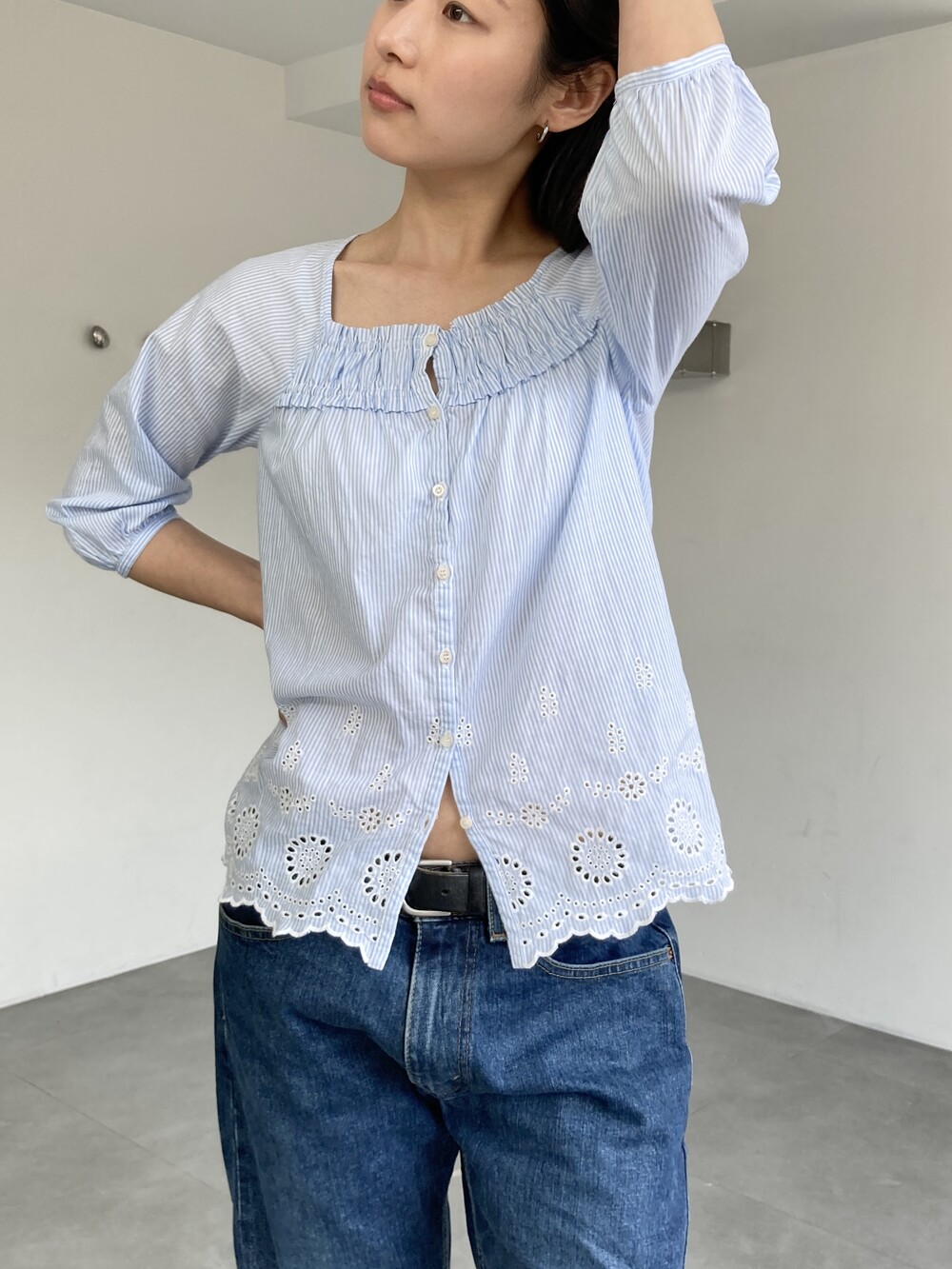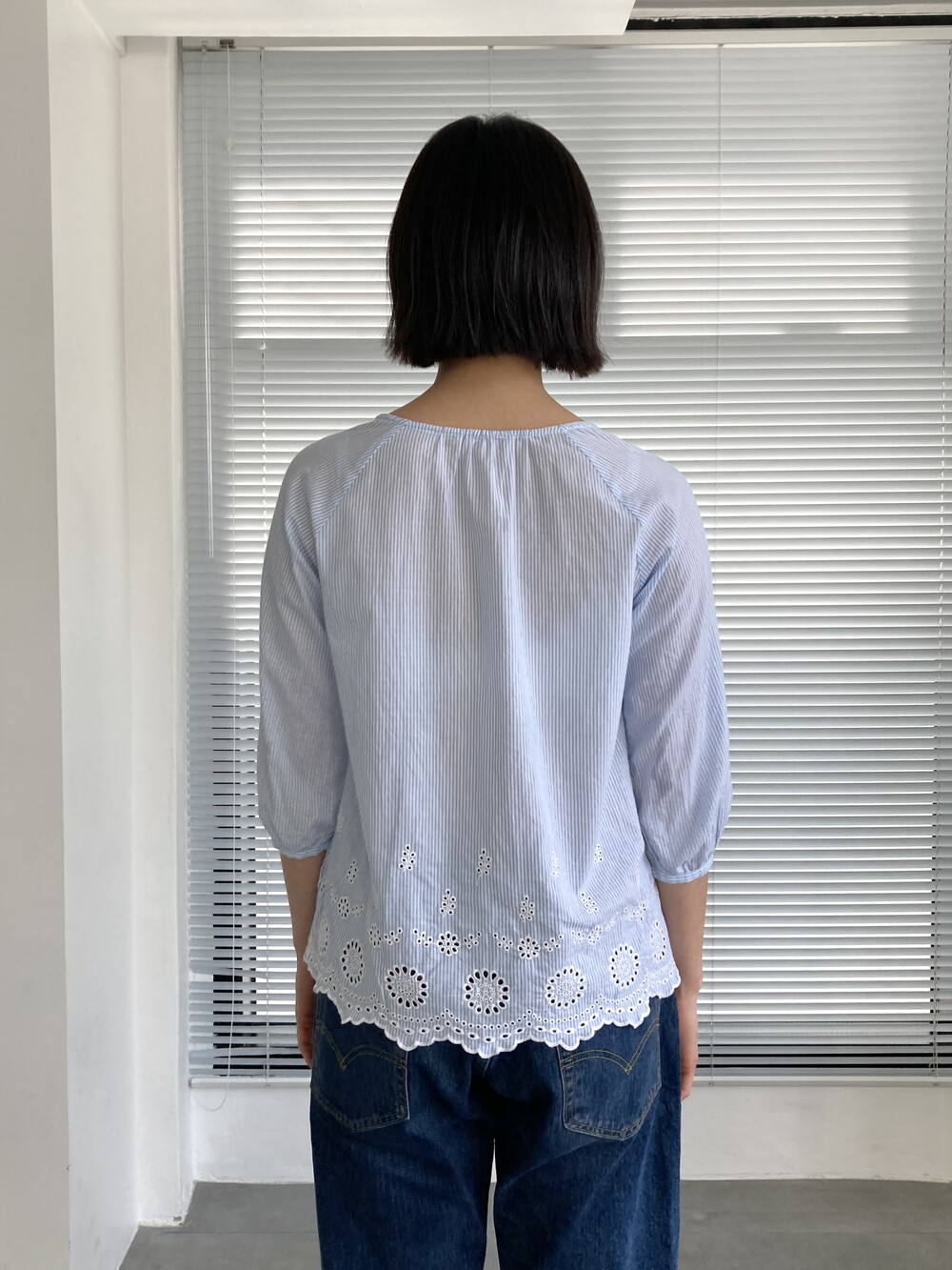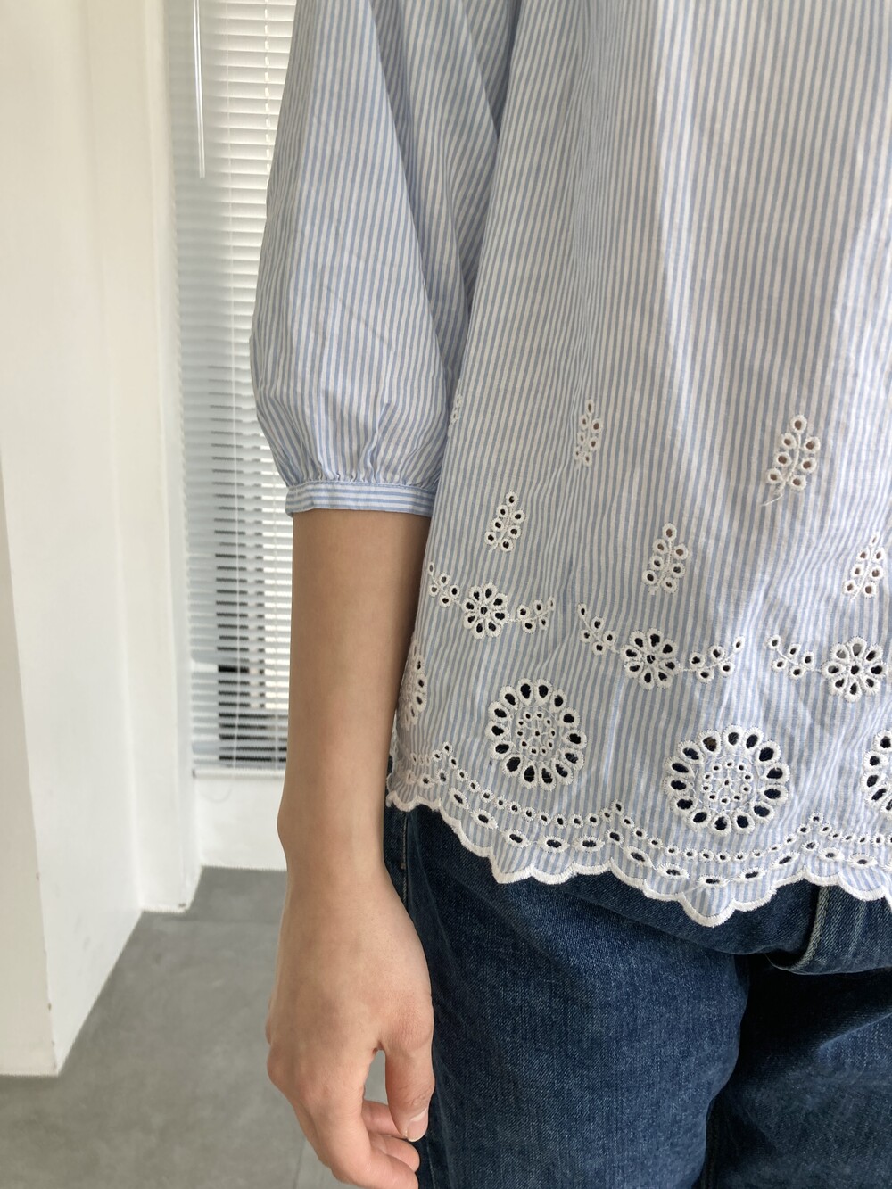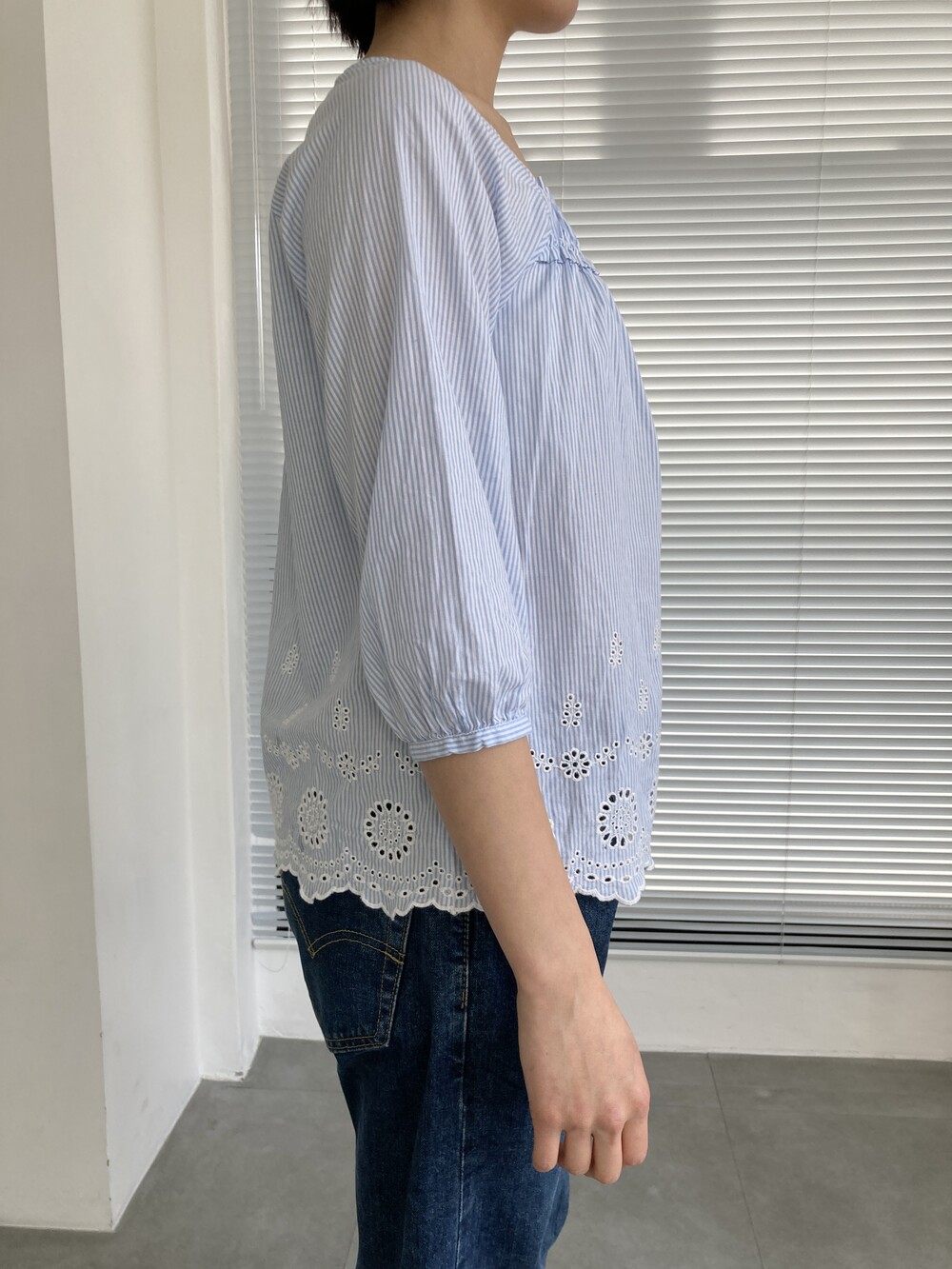 punched stripe blouse