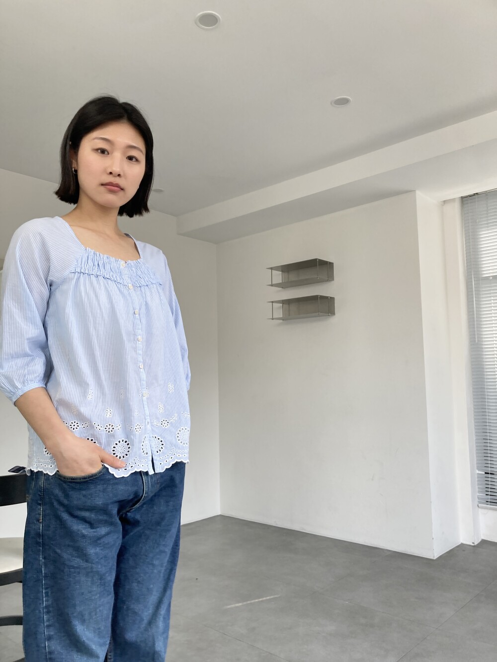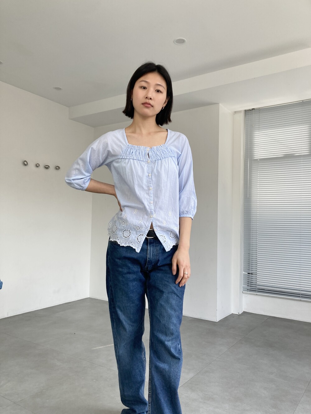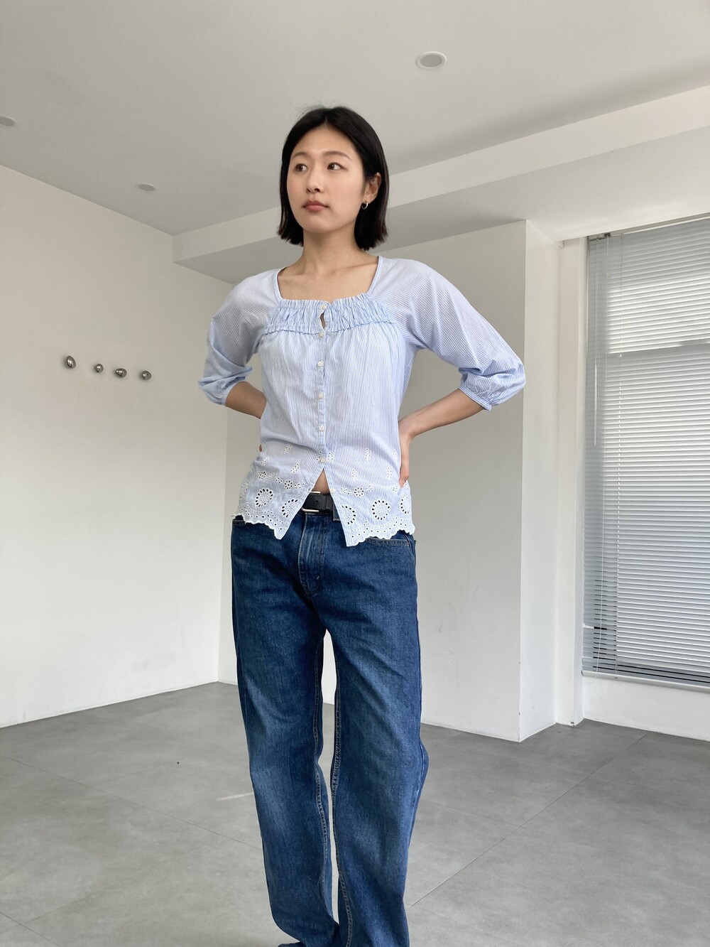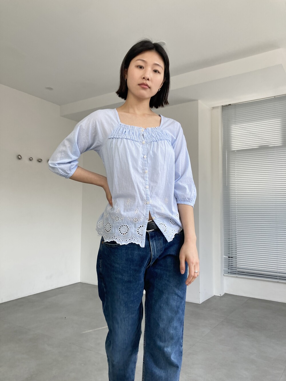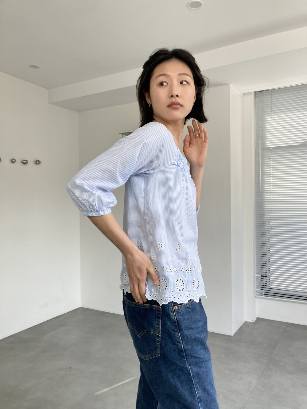 punched stripe blouse
