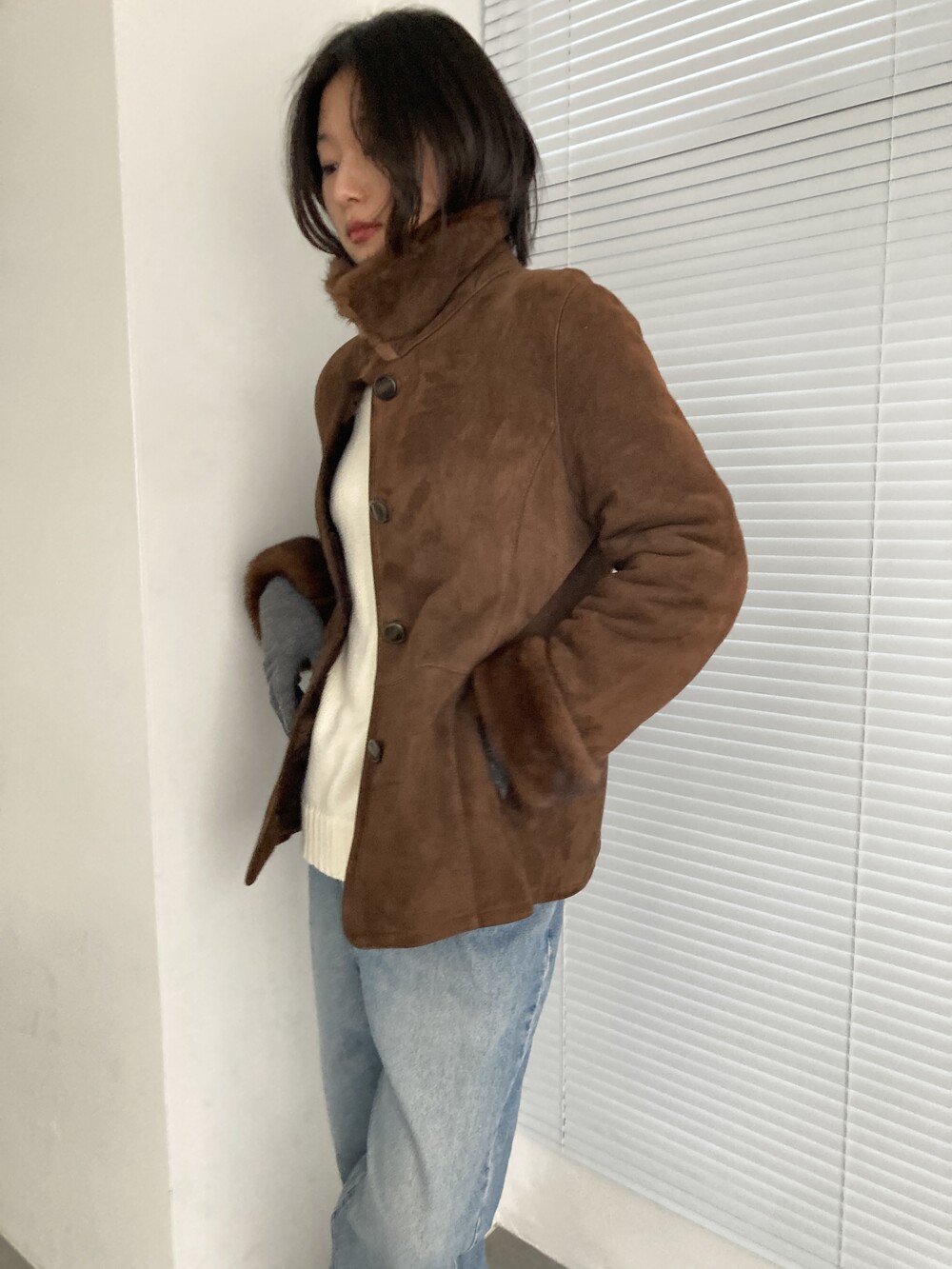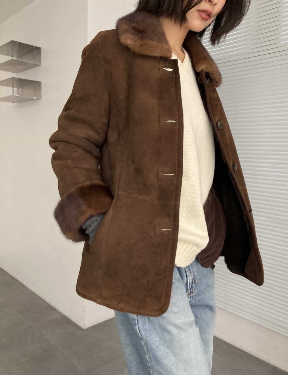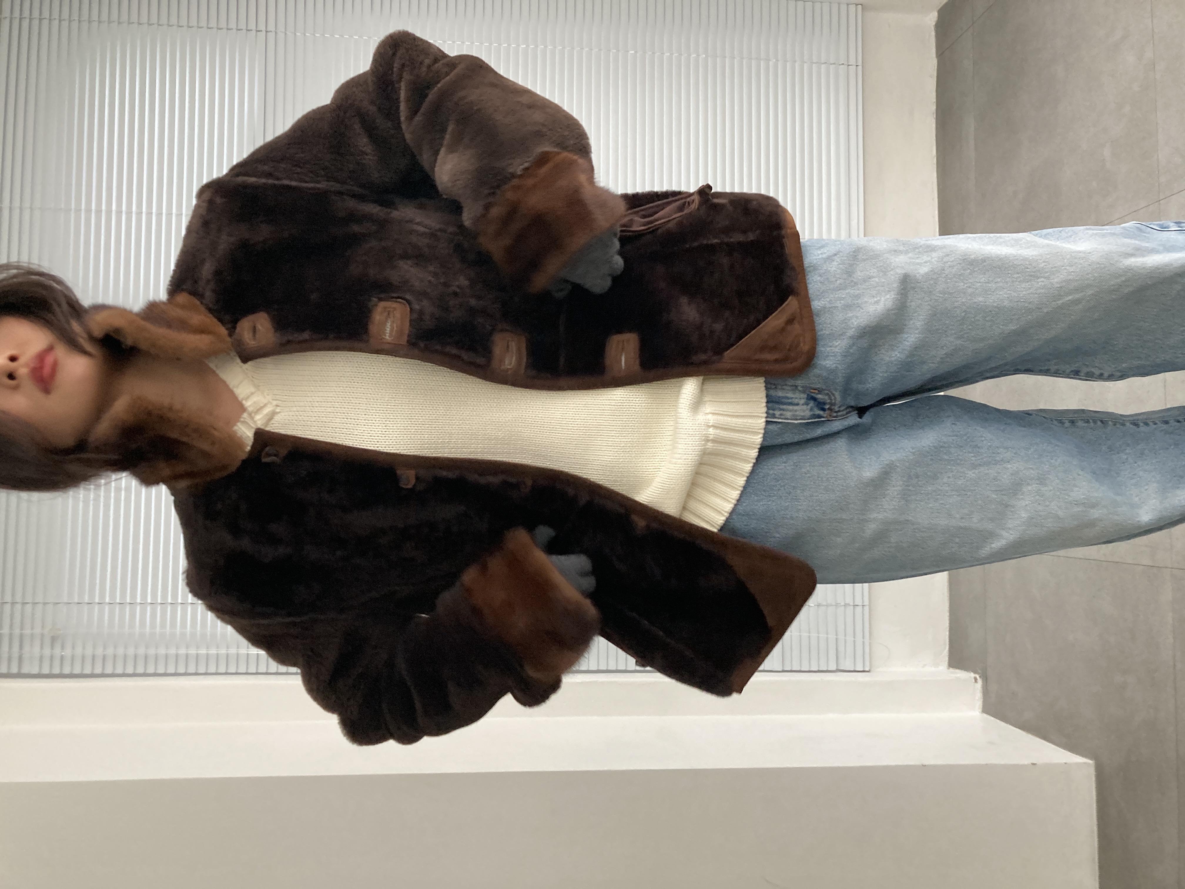 brown sheepskin mouton jacket