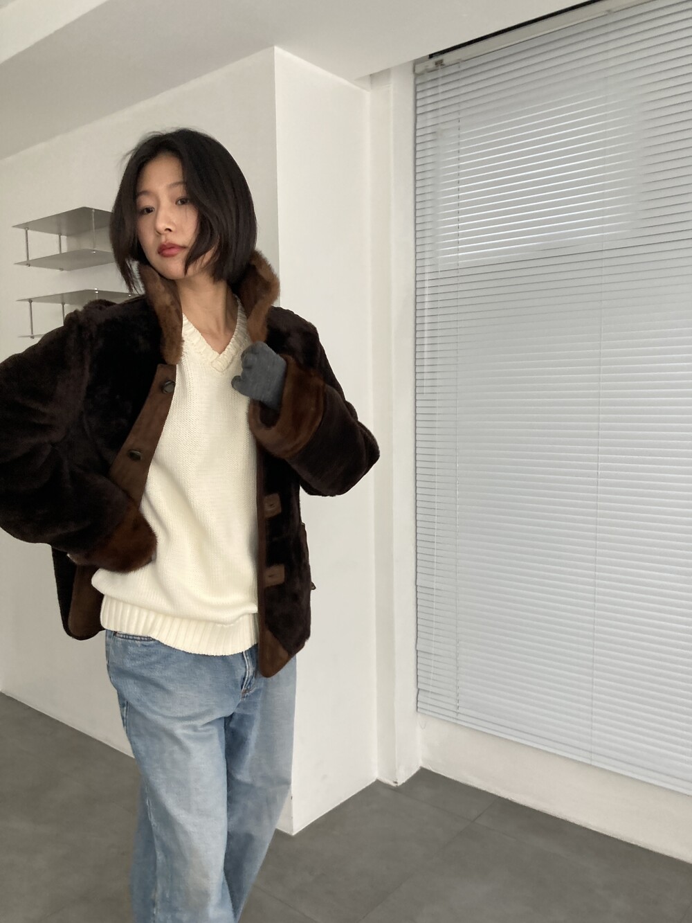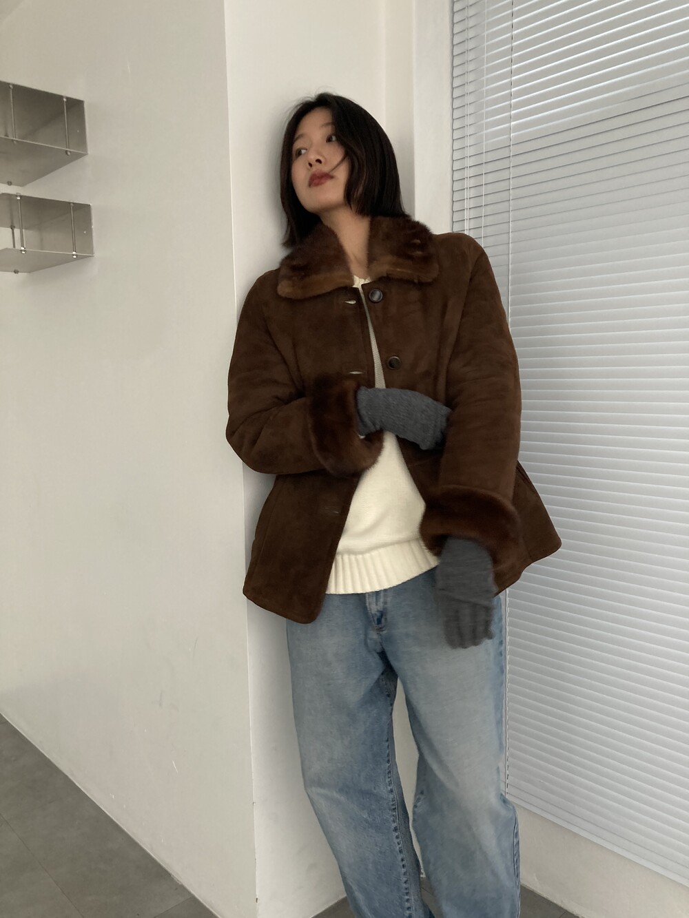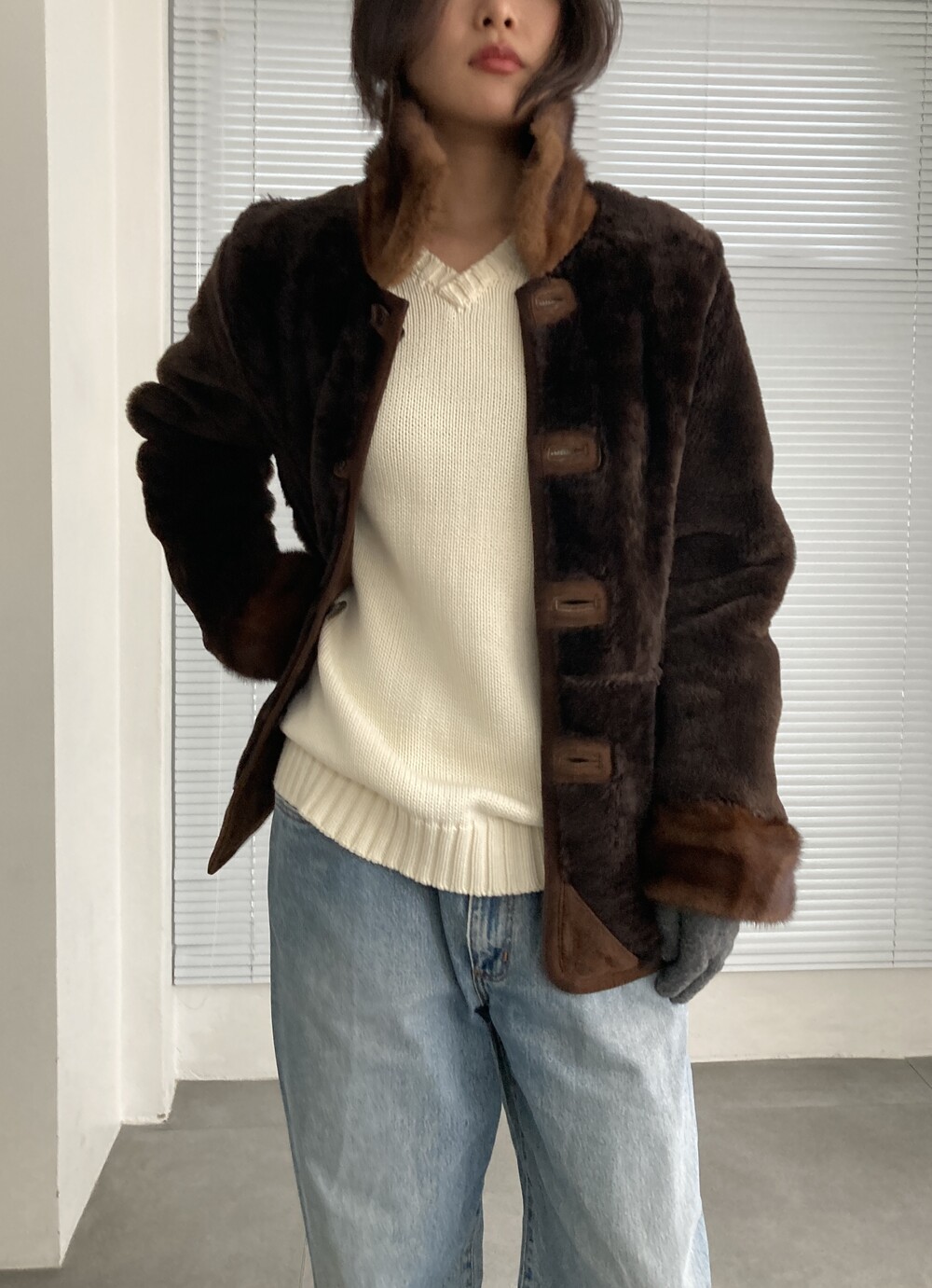 brown sheepskin mouton jacket