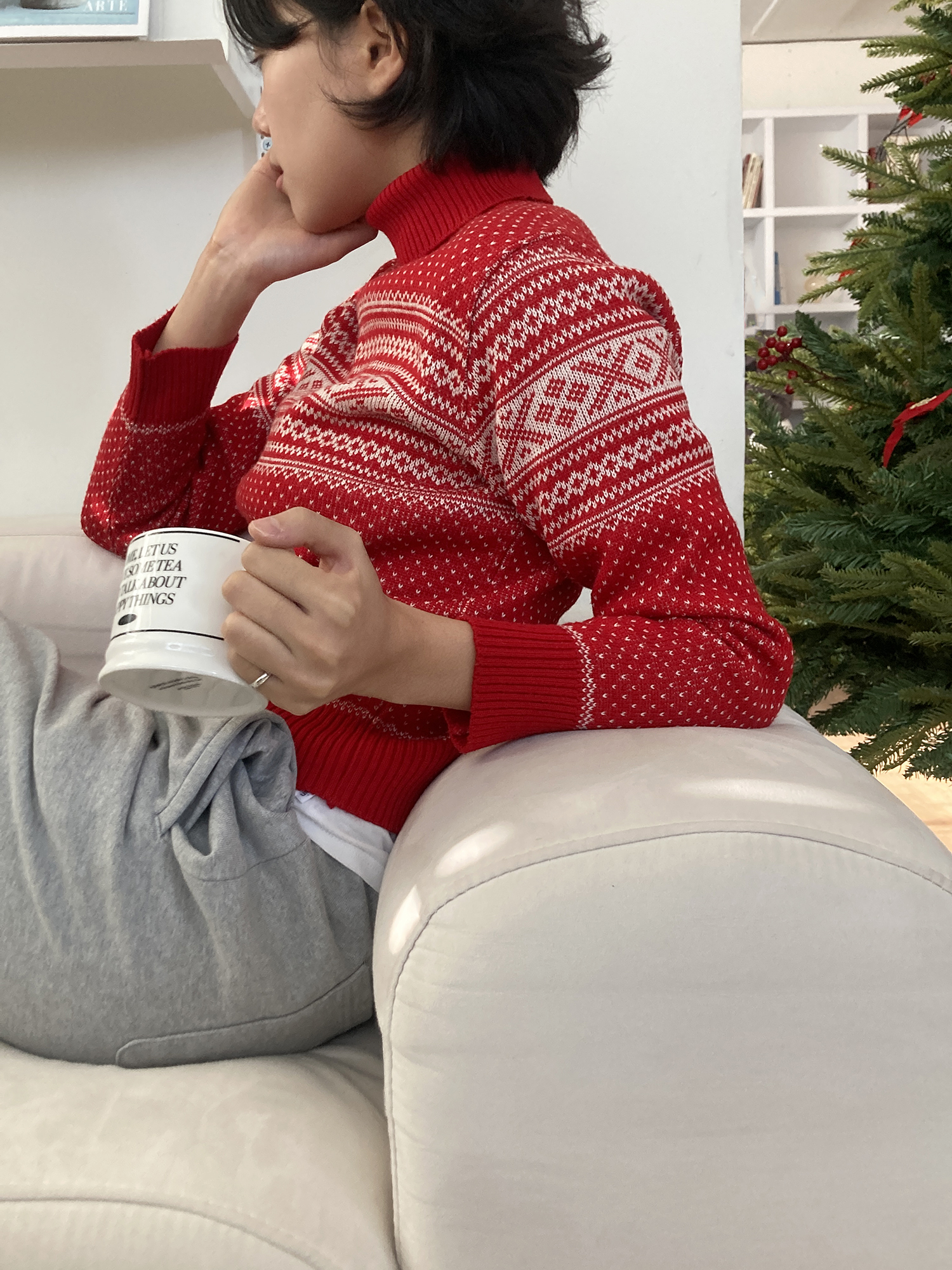 red turtleneck cotton knit