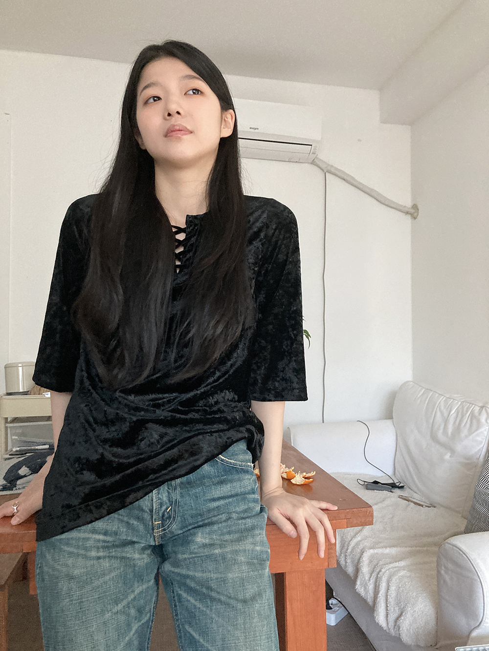 벨루어느낌의 소재감으로, 은은히 보이는 플라워패턴이 매력적인 제품입니다.