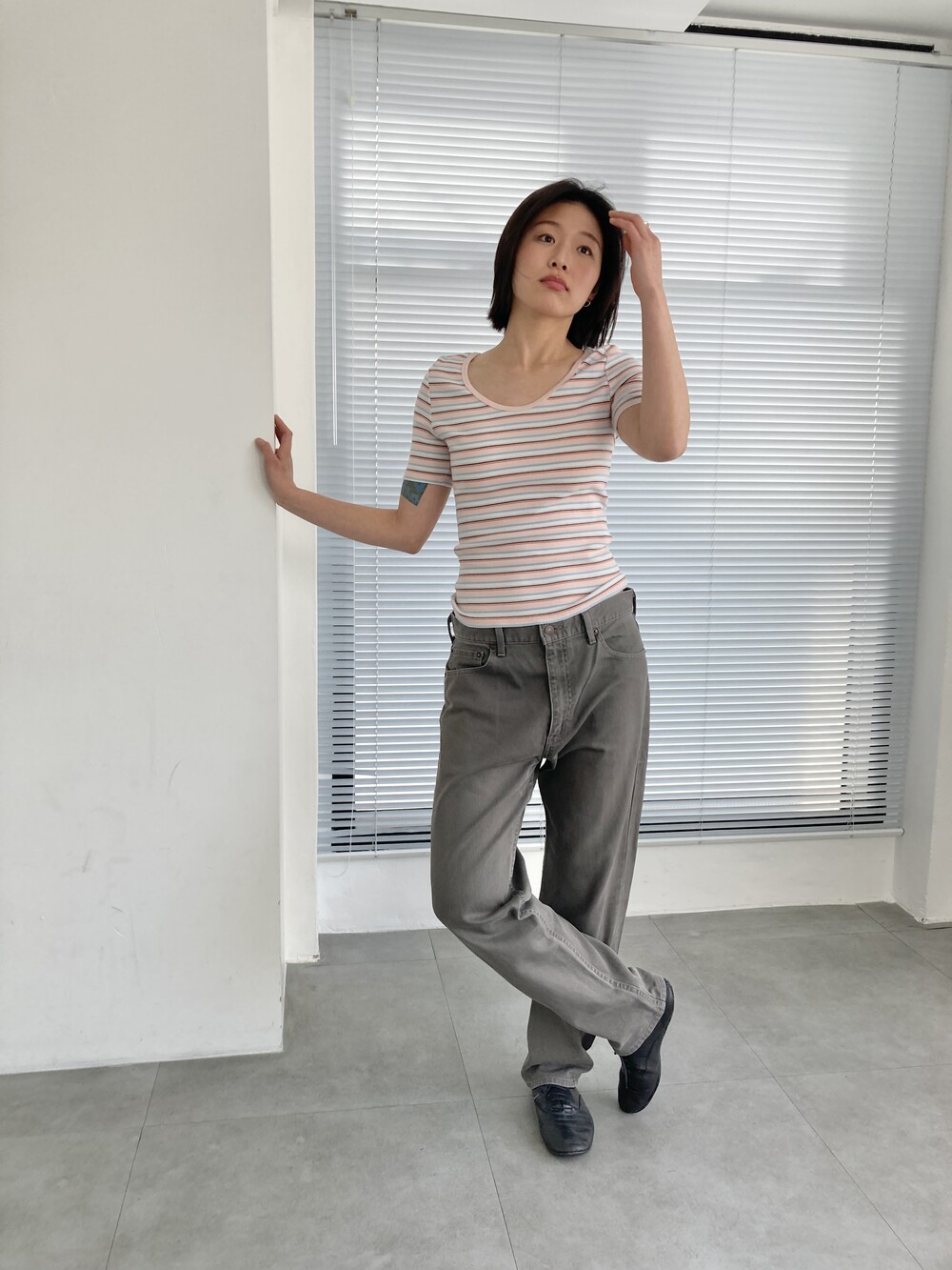 가지고 계시는 의류 사이즈와 비교 측정 하시면 보다 더 정확합니다.