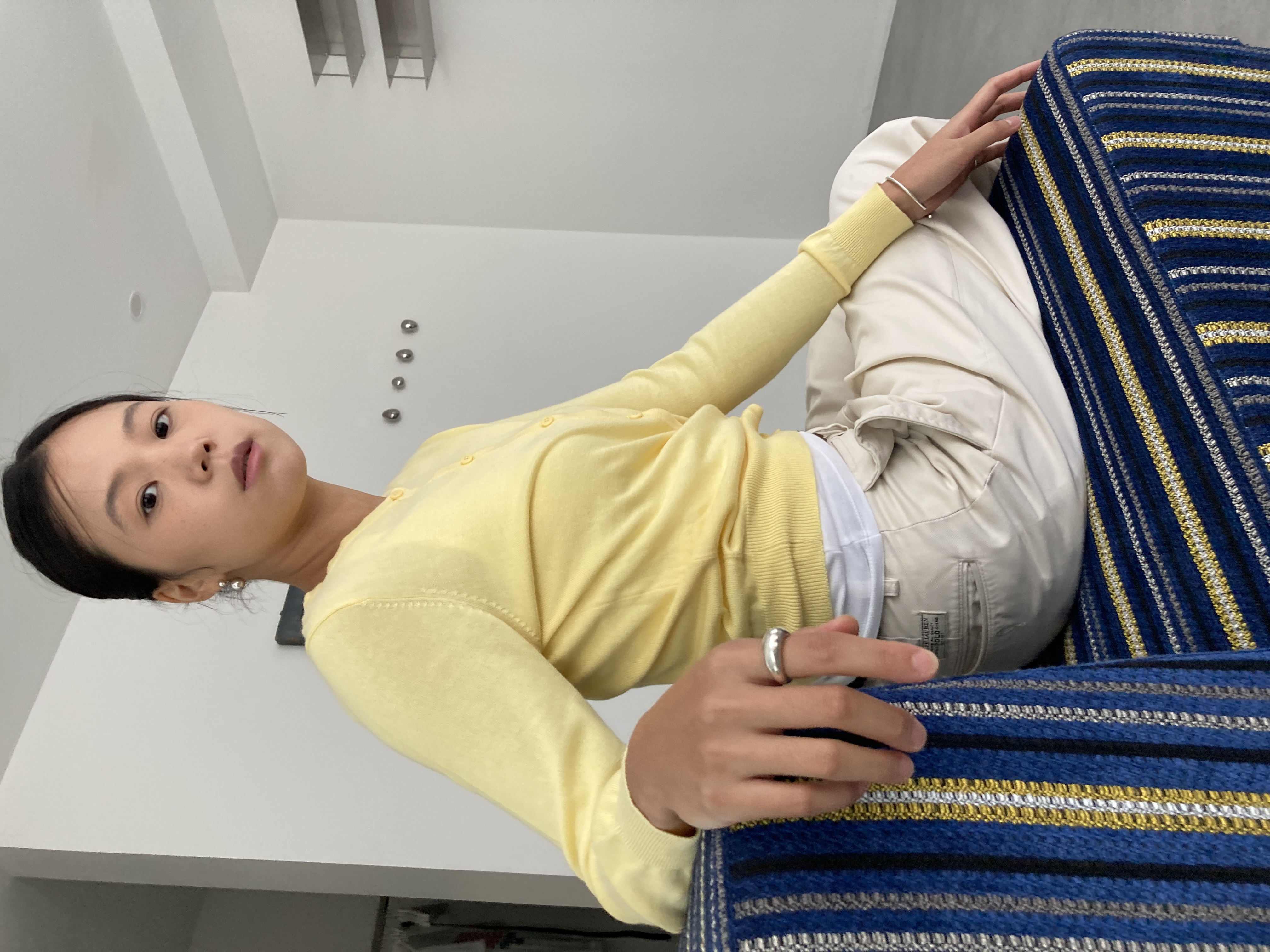 yellow cardigan