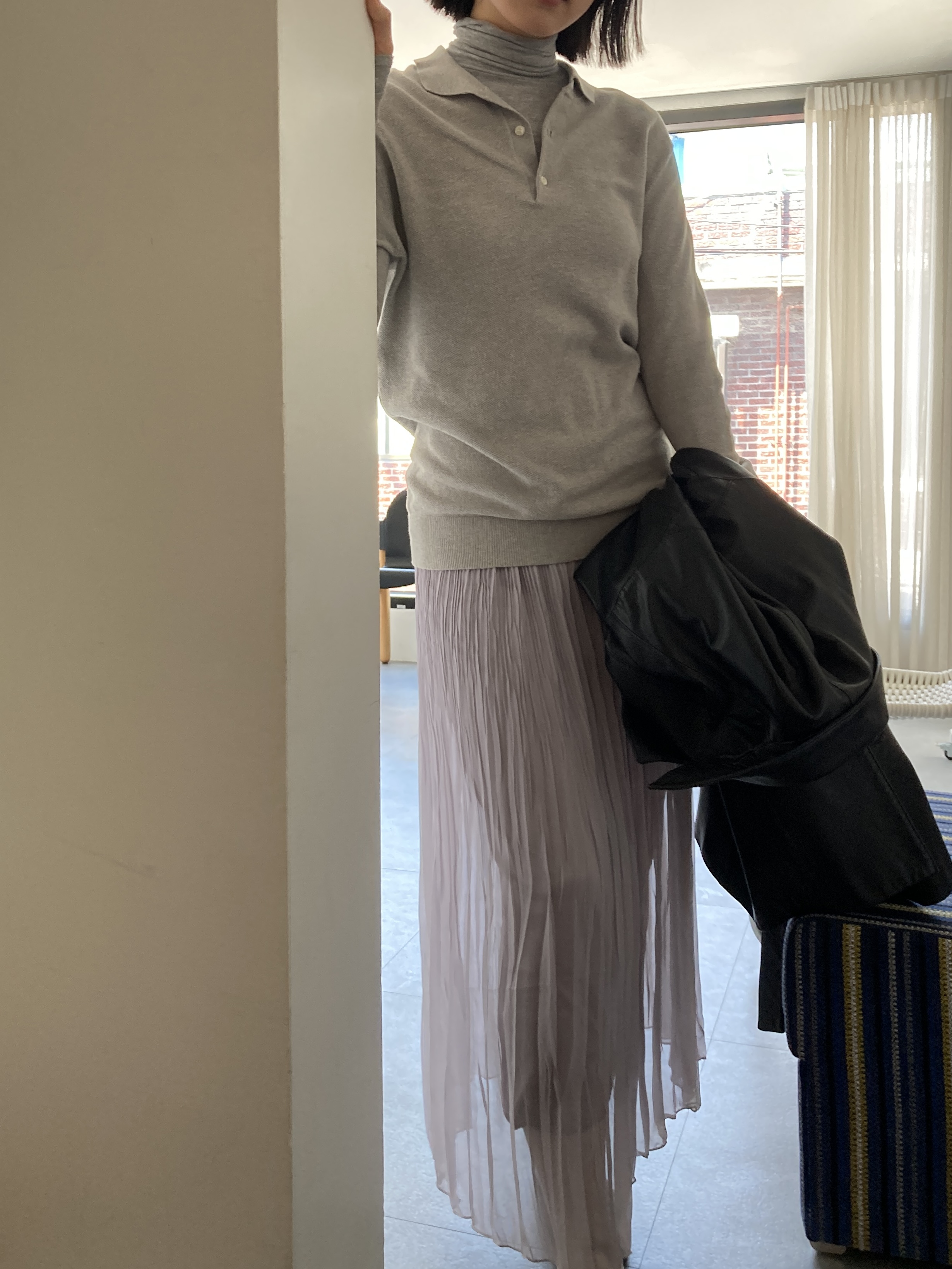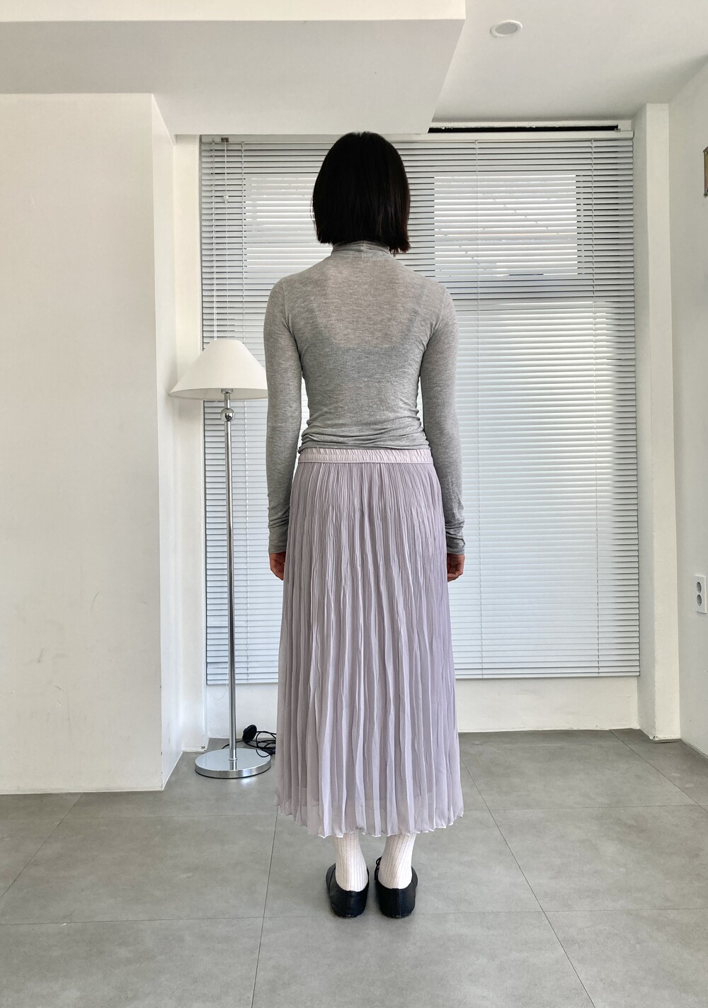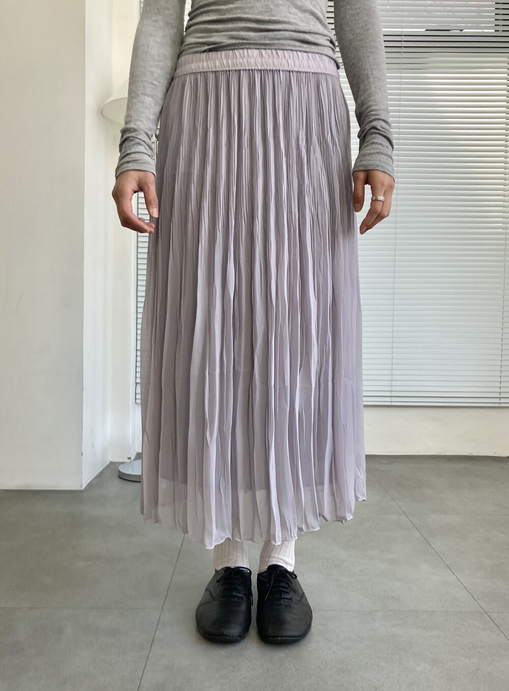 grey pleats long skirt