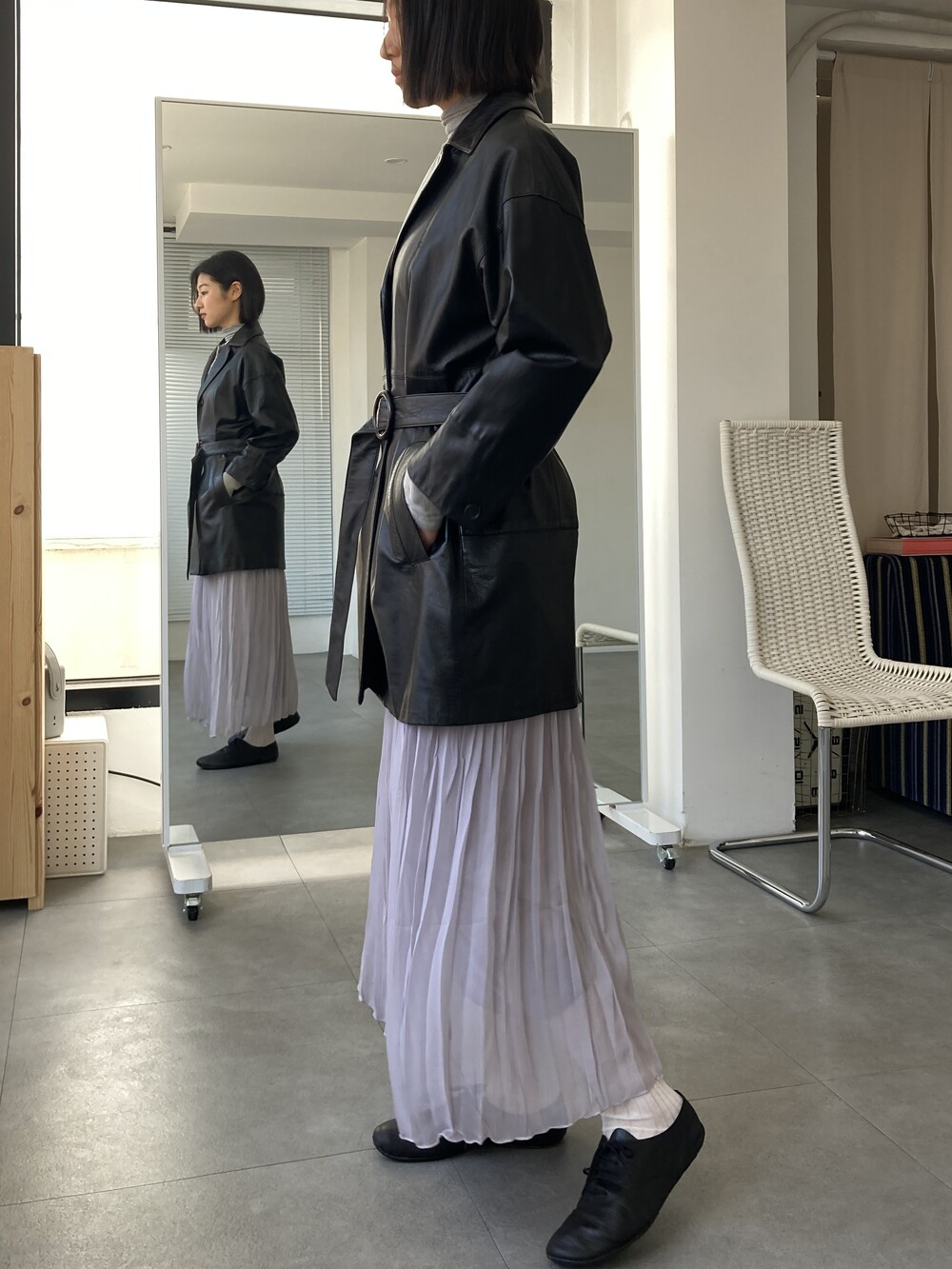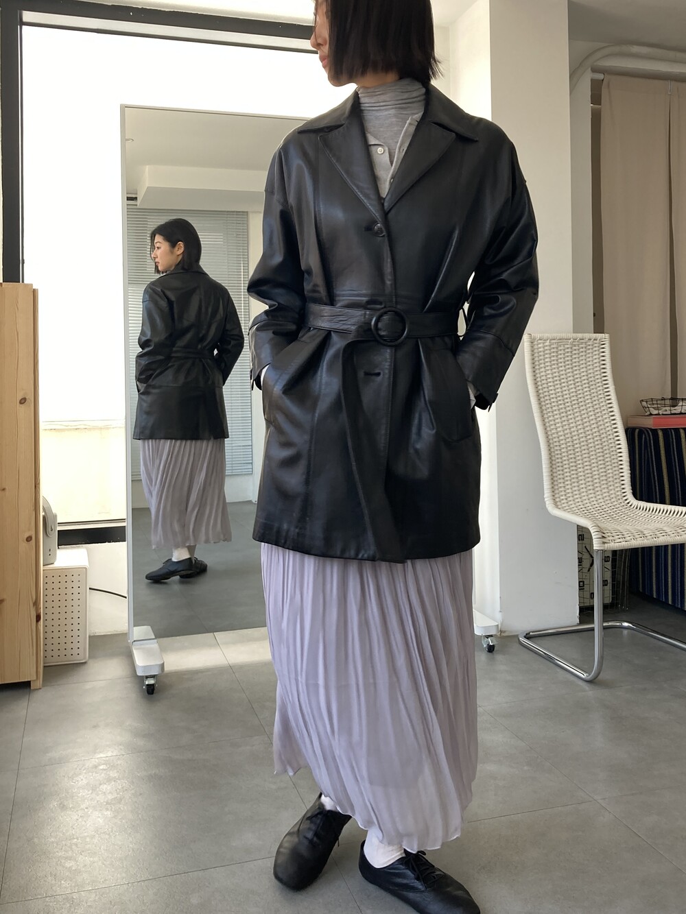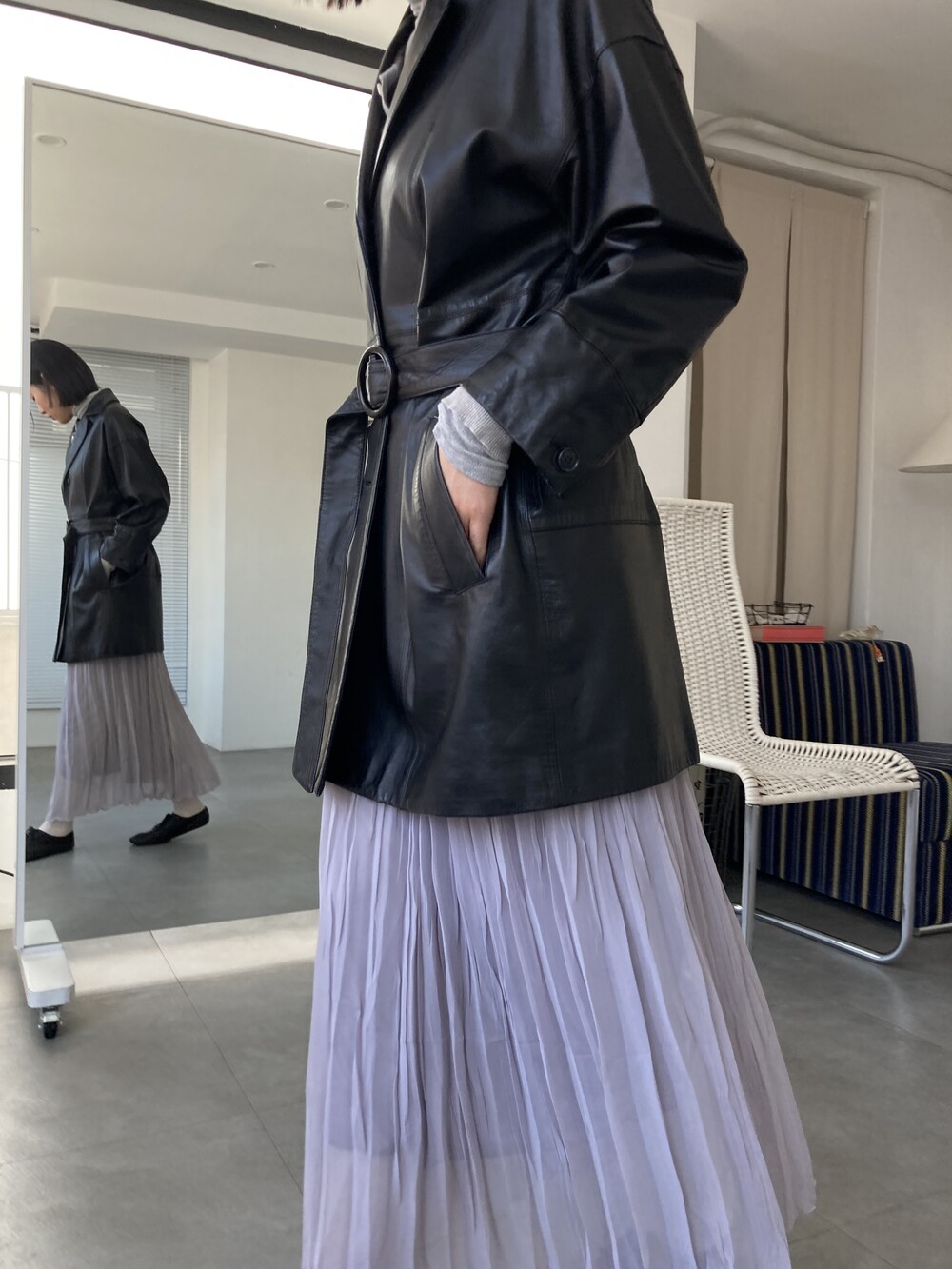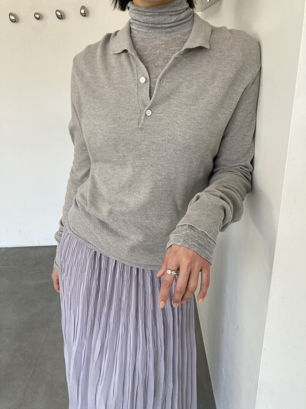 grey pleats long skirt