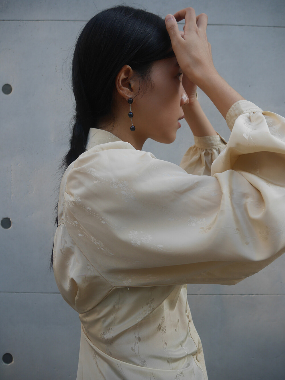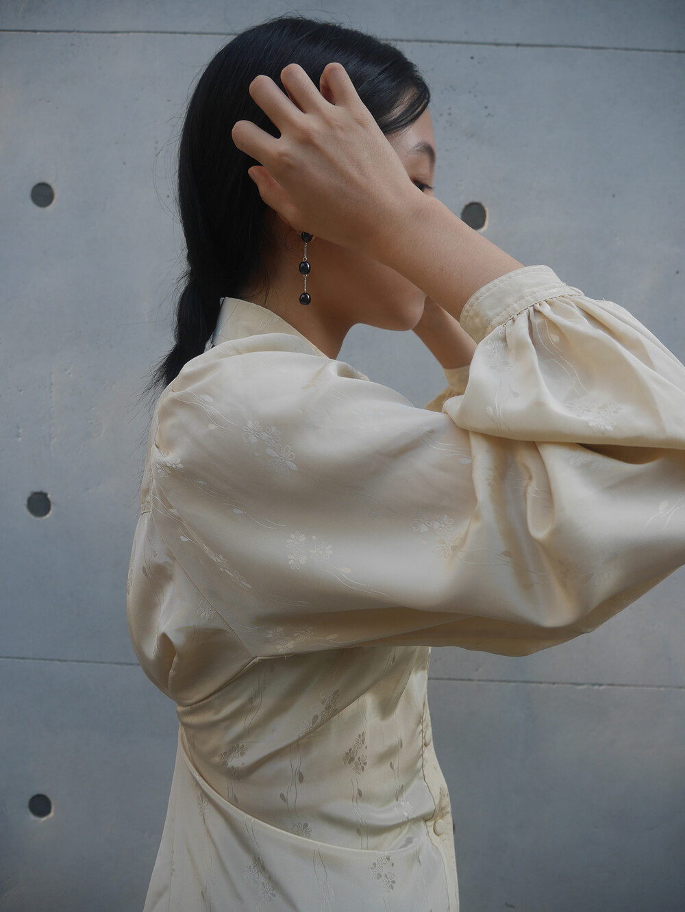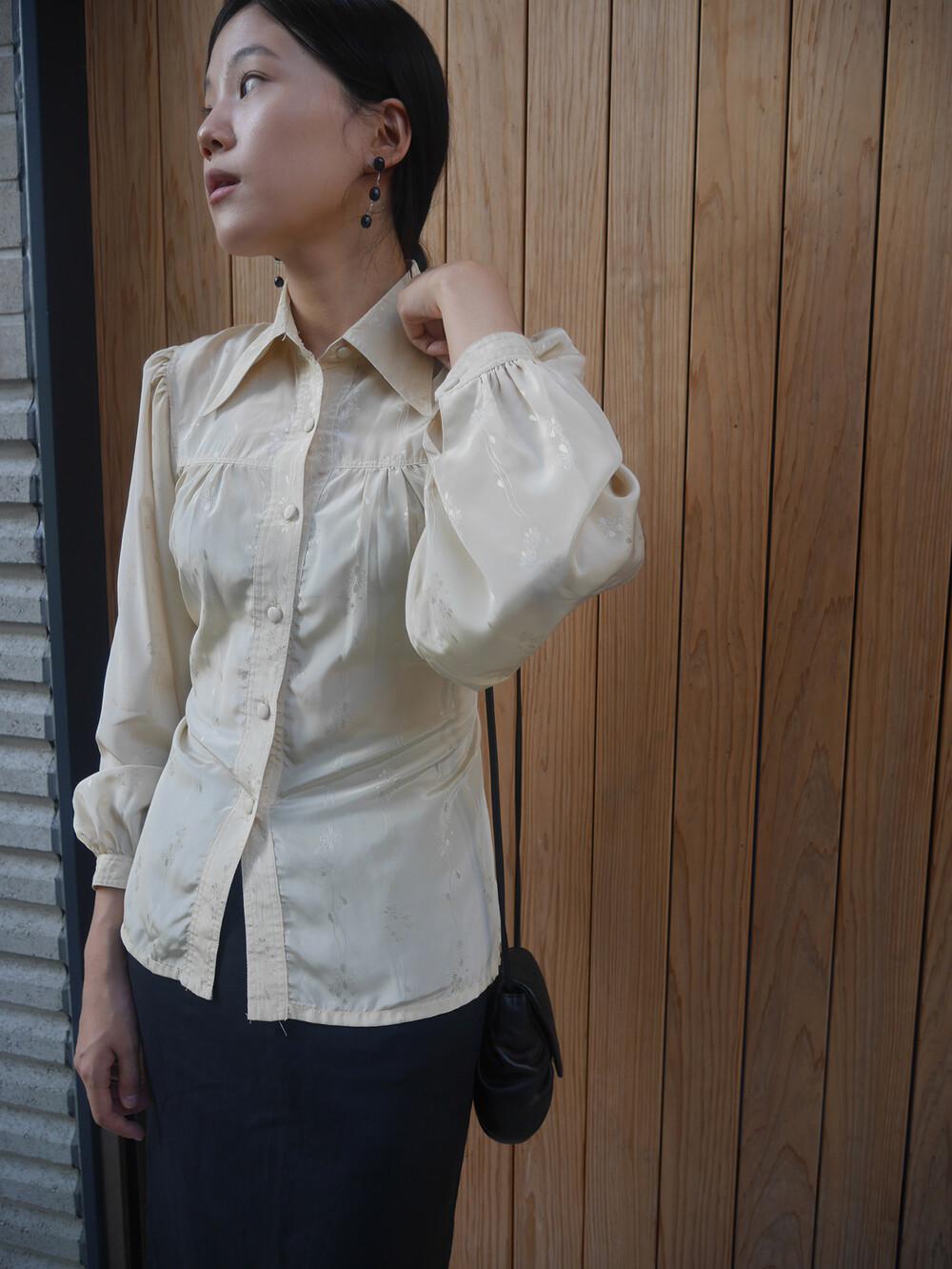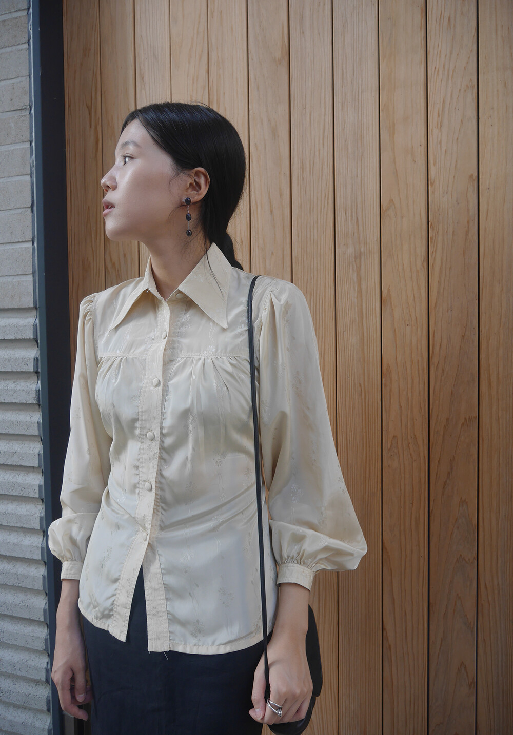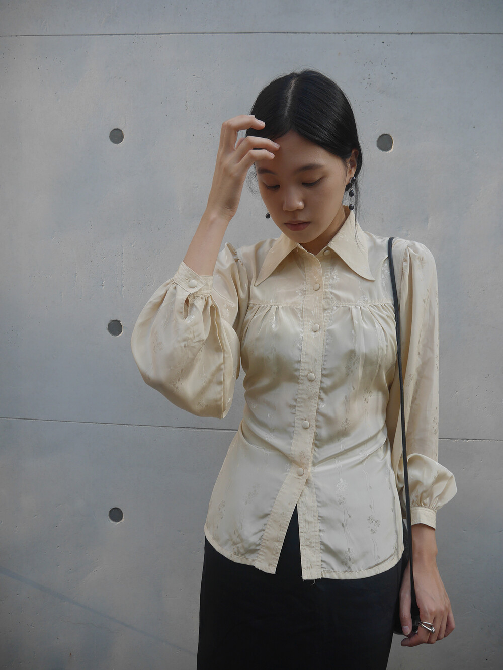 beige flower blouse