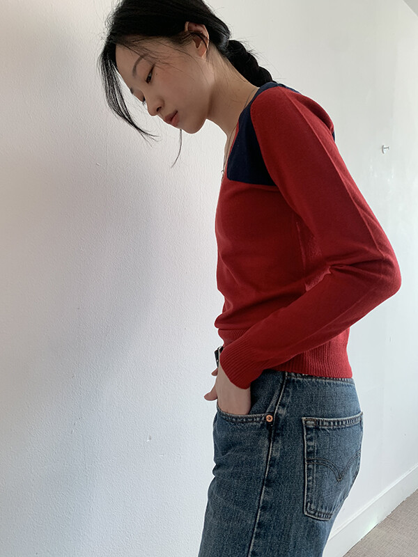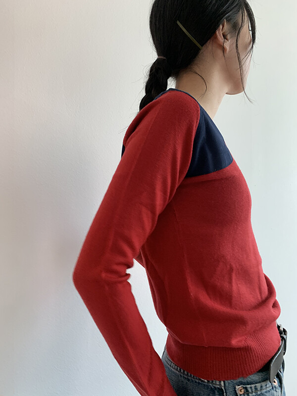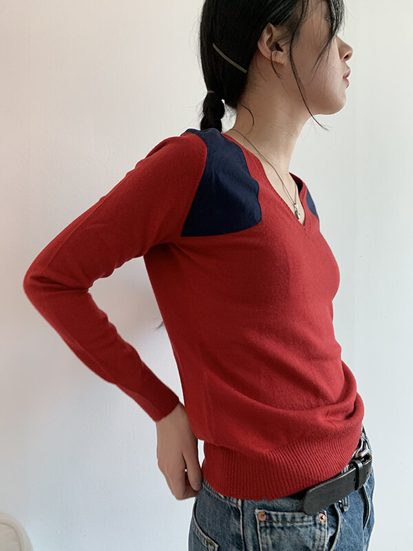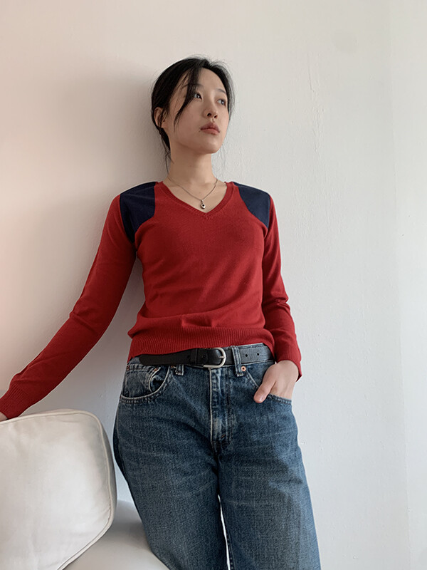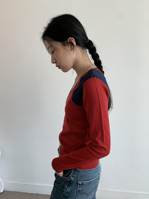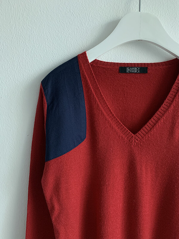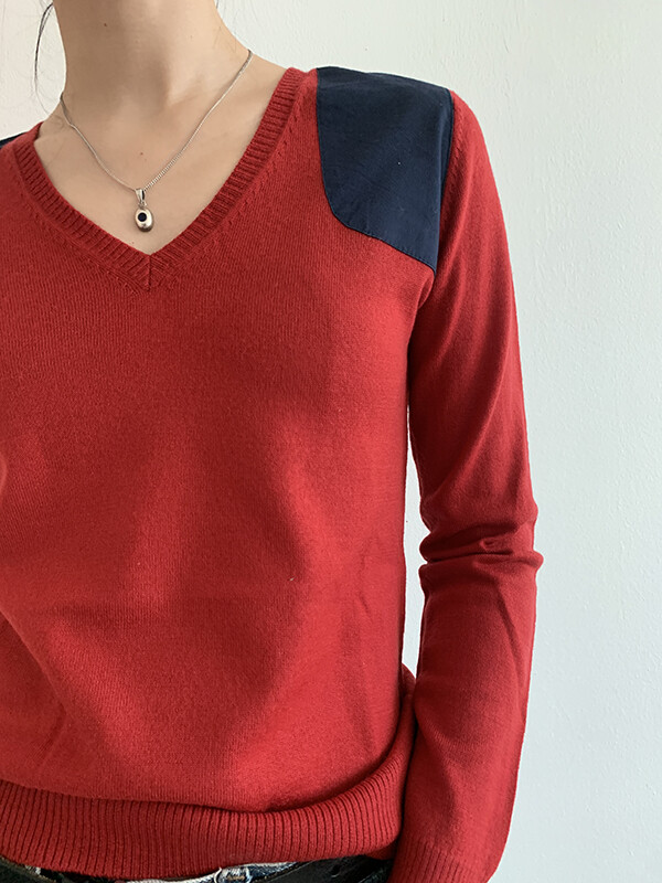 어깨에 네이비 코튼원단으로 패치되어 있는 디자인이 귀엽네요.