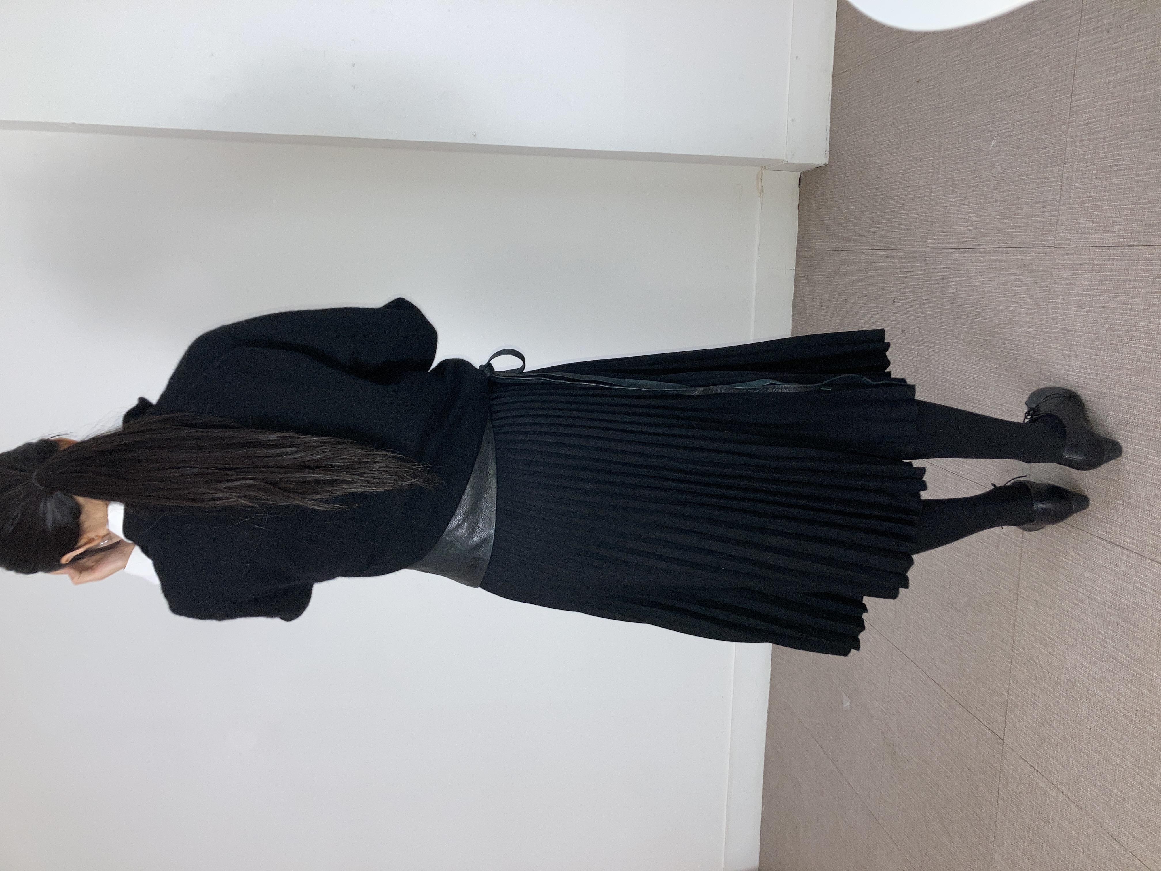 wool black pleats skirt