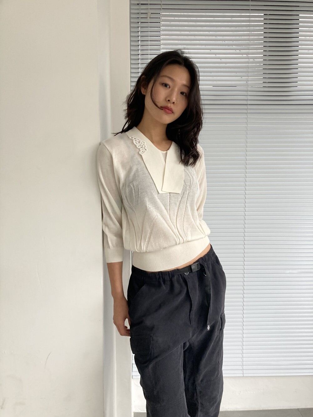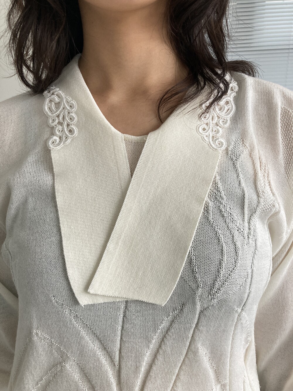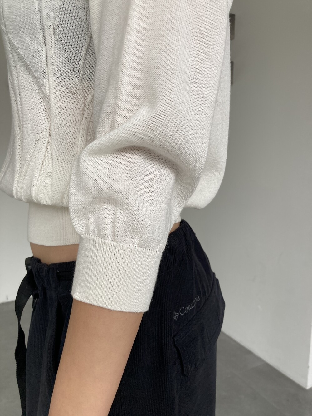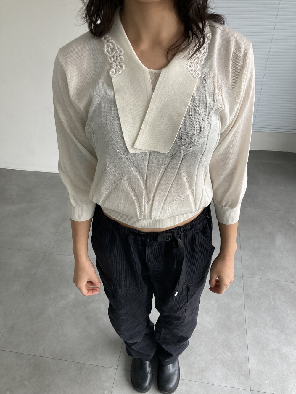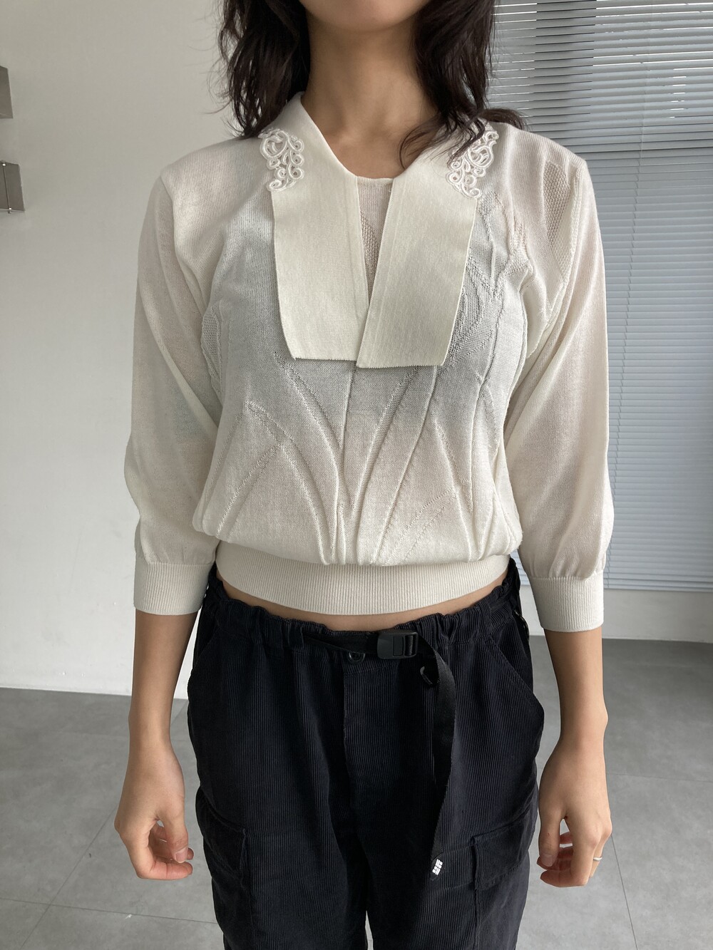 white knit top