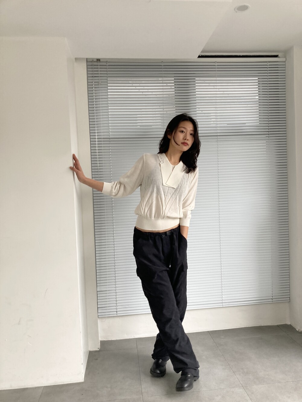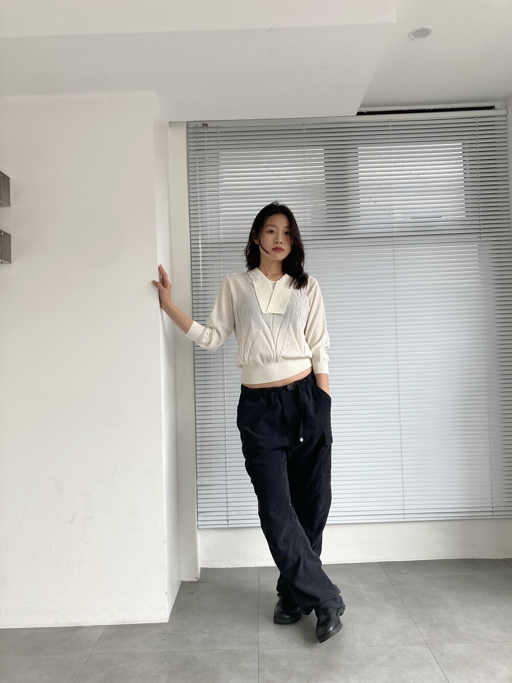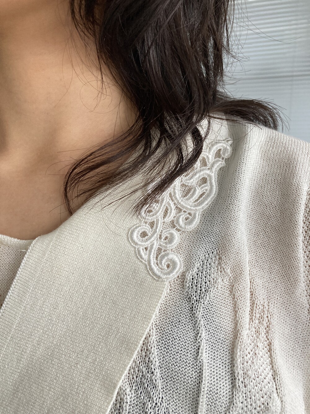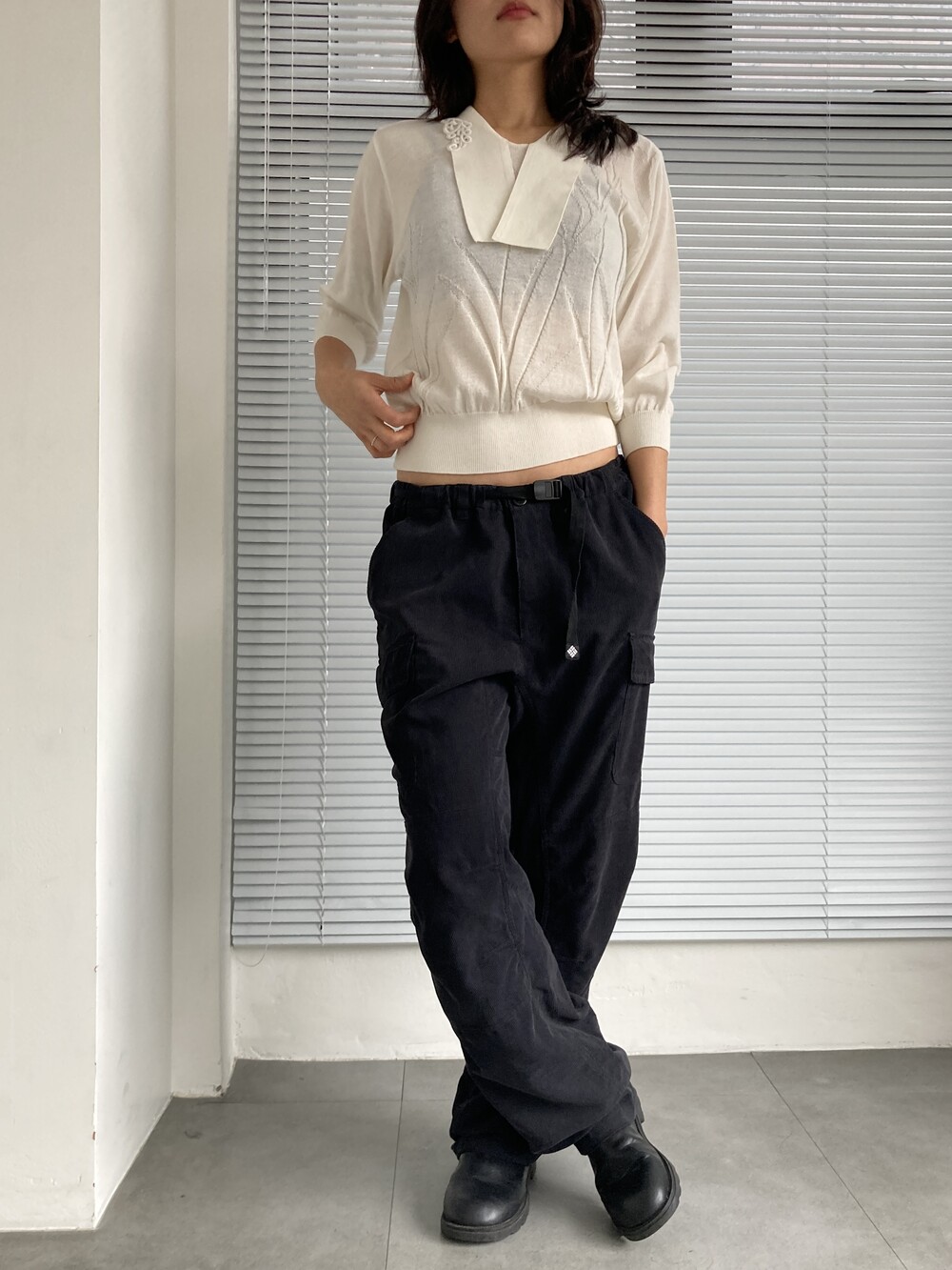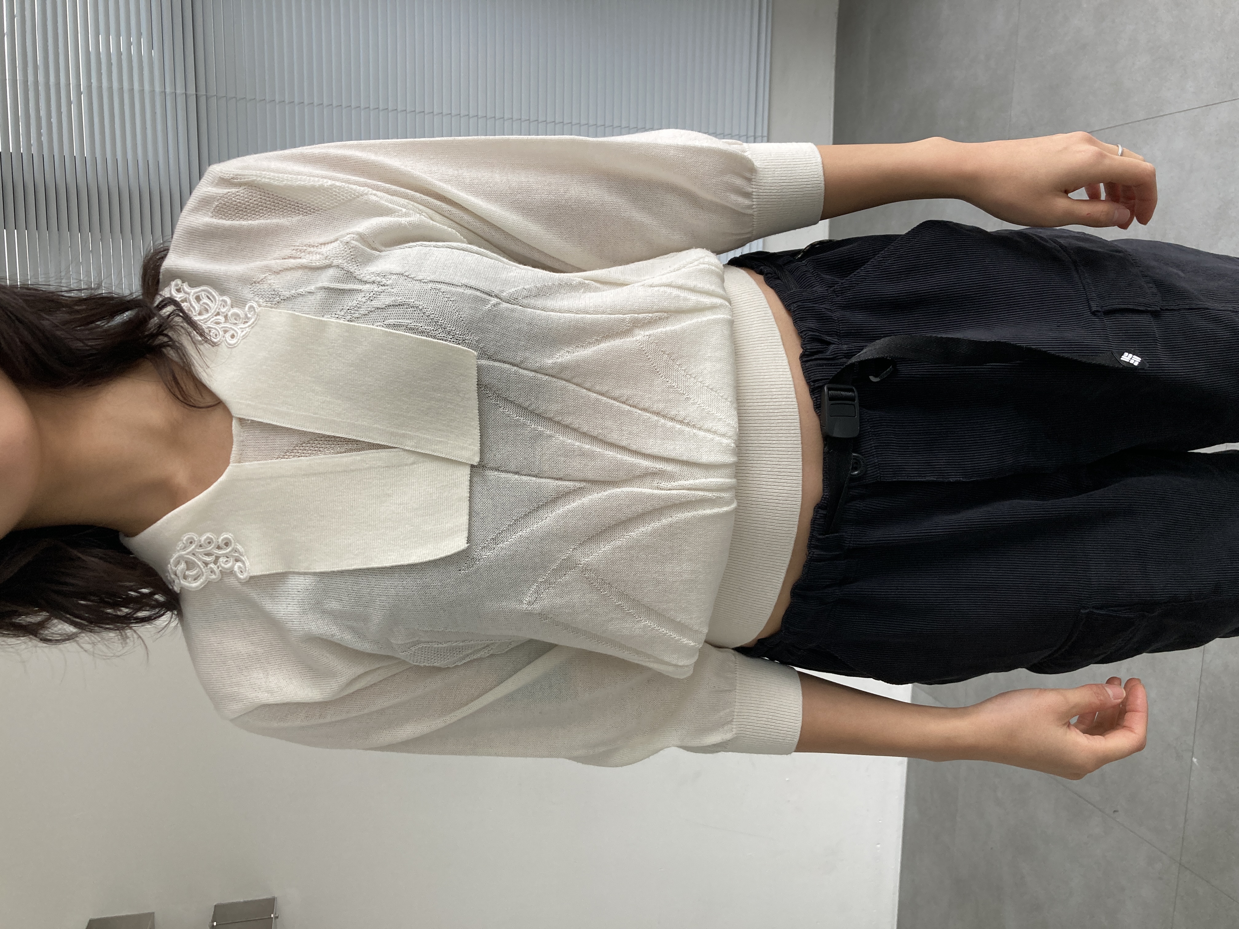 white knit top