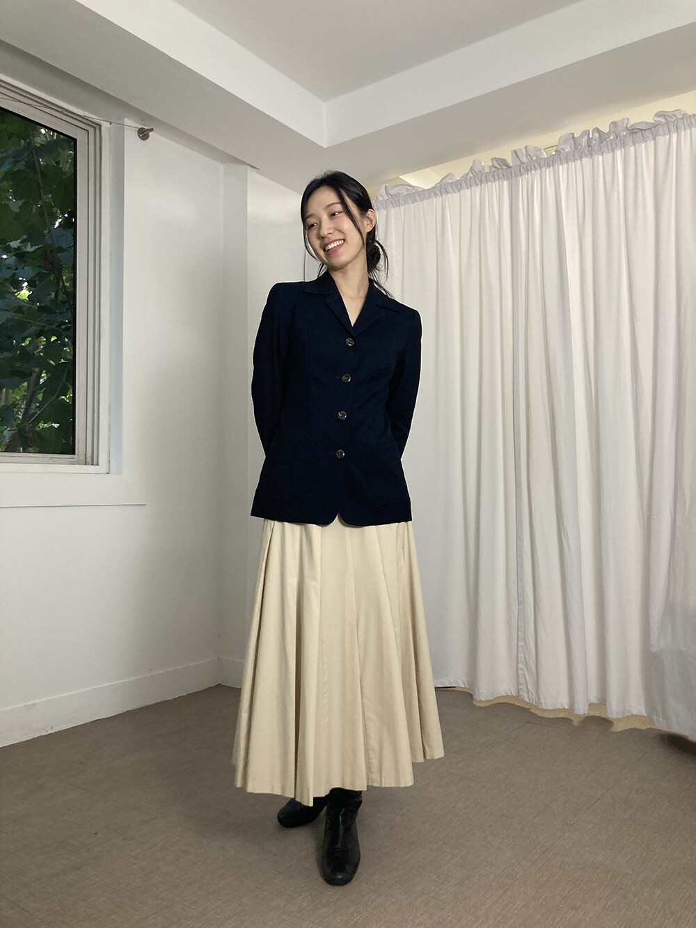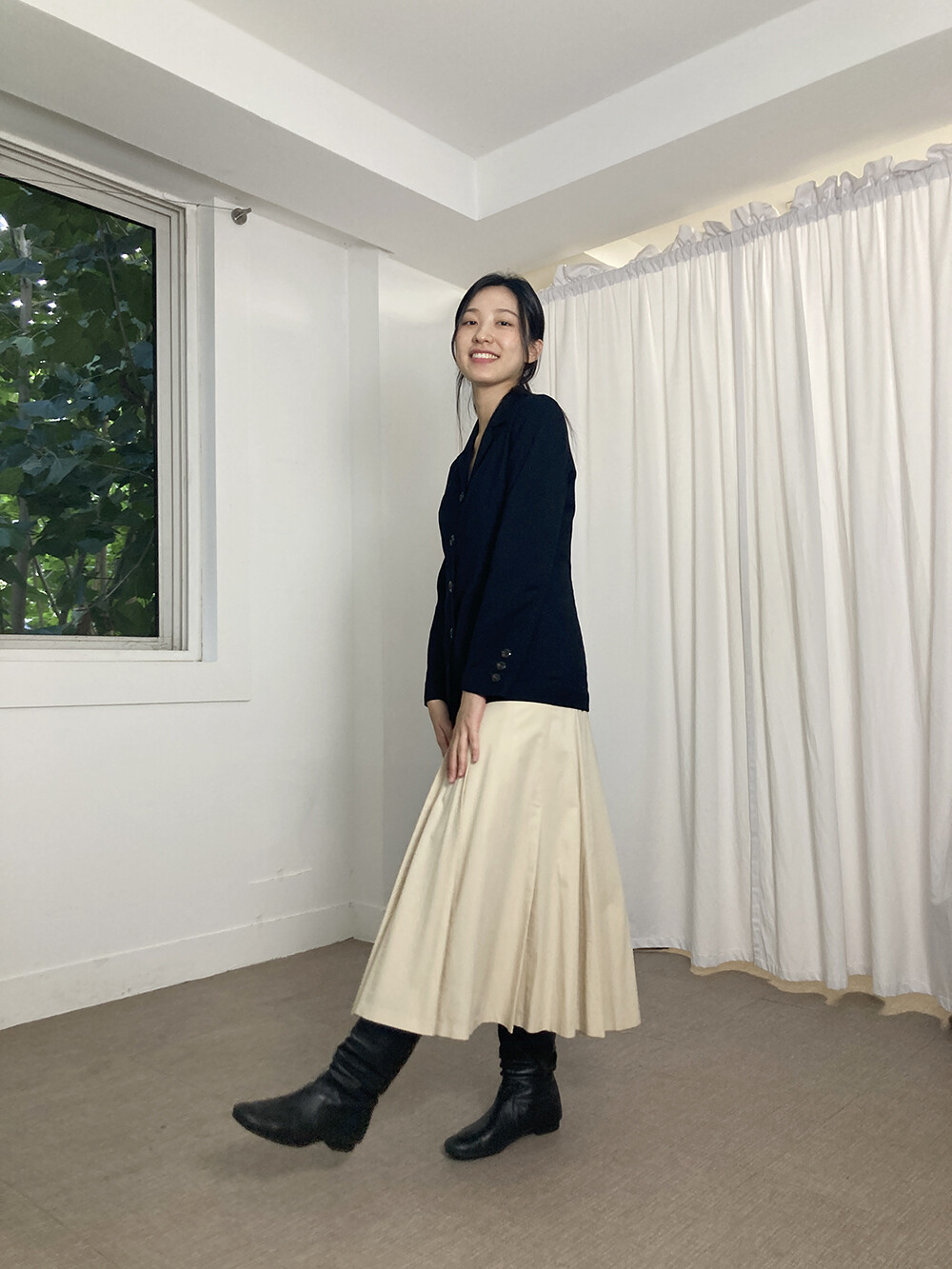 베이지 컬러와 맥시한 기장감이 매력적인 제품입니다.