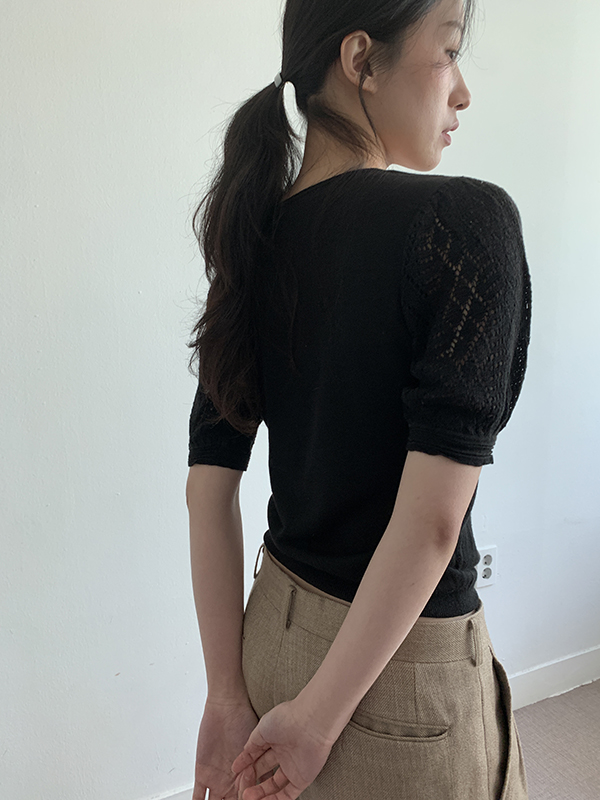 콩 같은 버튼과, 살짝 볼륨감 있는 니트형식의 소매가 귀엽네요.
