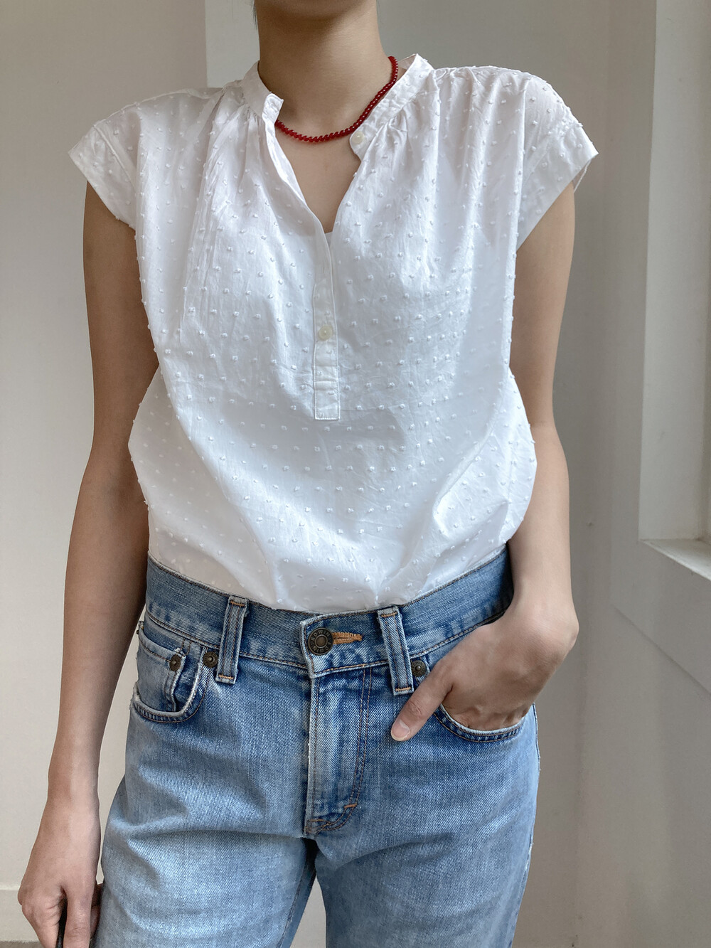 white cotton sleeveless