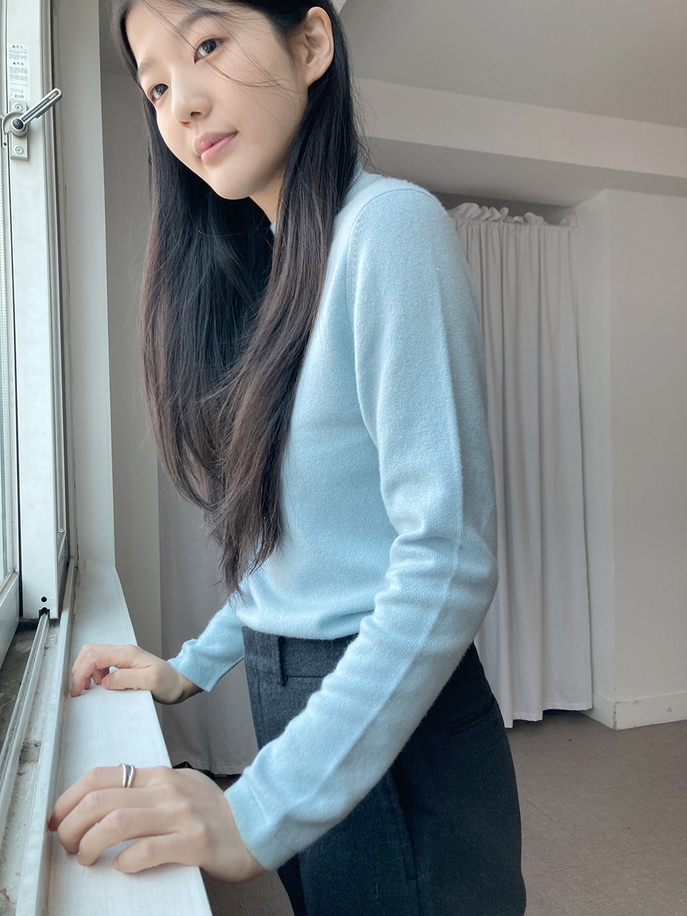 부드러운 하늘색컬러의 캐시미어 니트입니다.