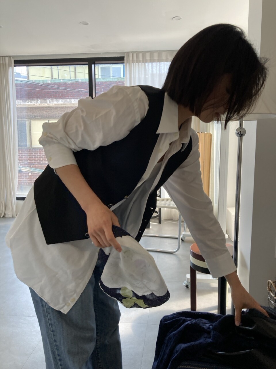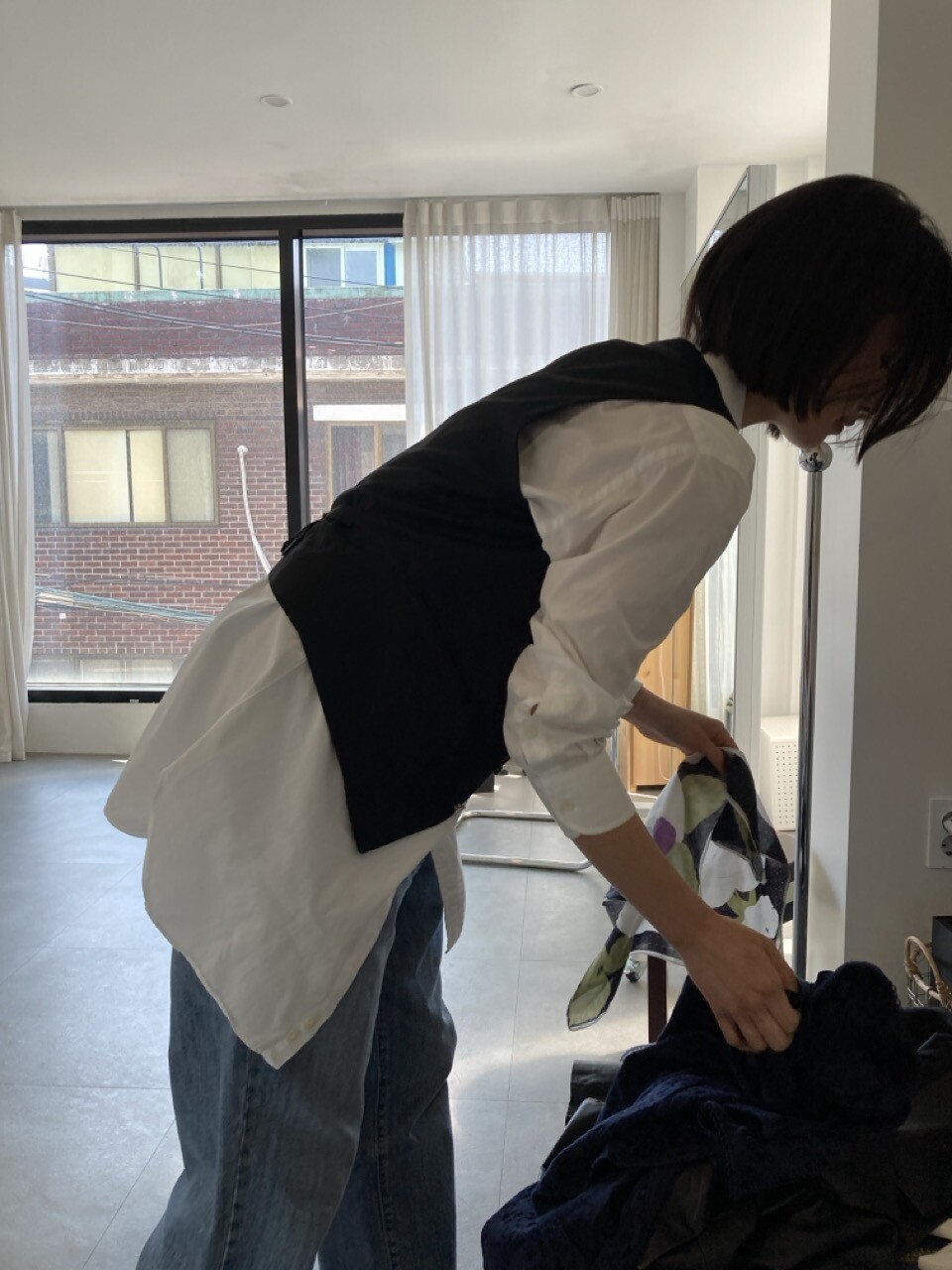 가지고 계시는 의류 사이즈와 비교 측정 하시면 보다 더 정확합니다.