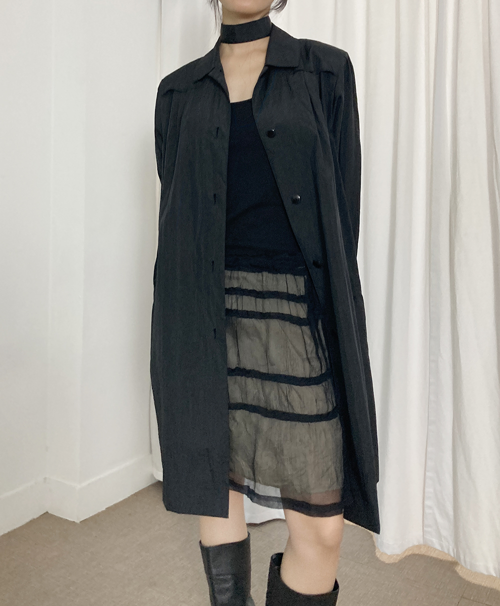 SANYO의 얇은 블랙 나일론 코트입니다.