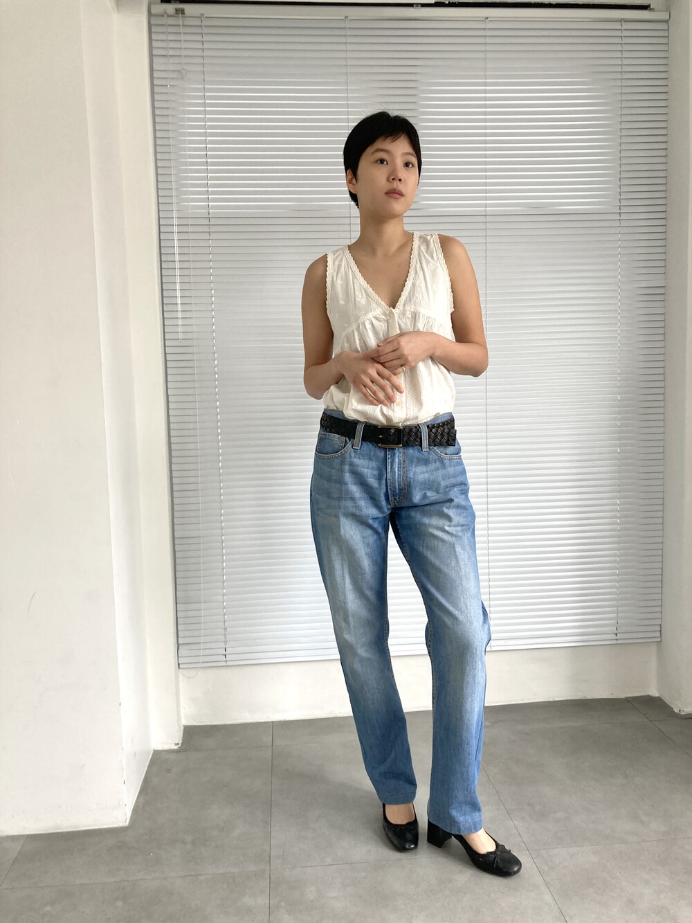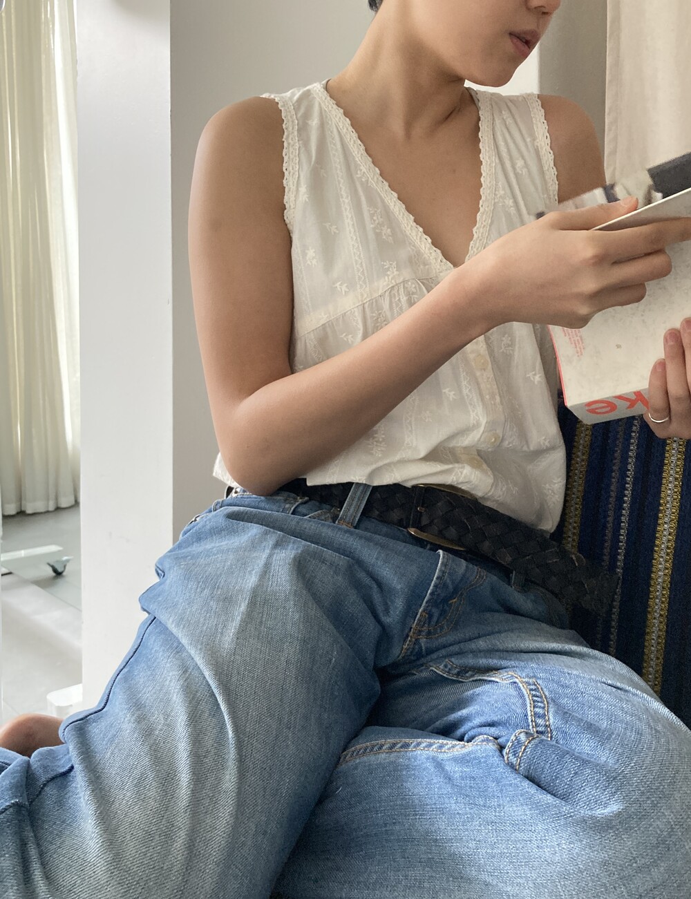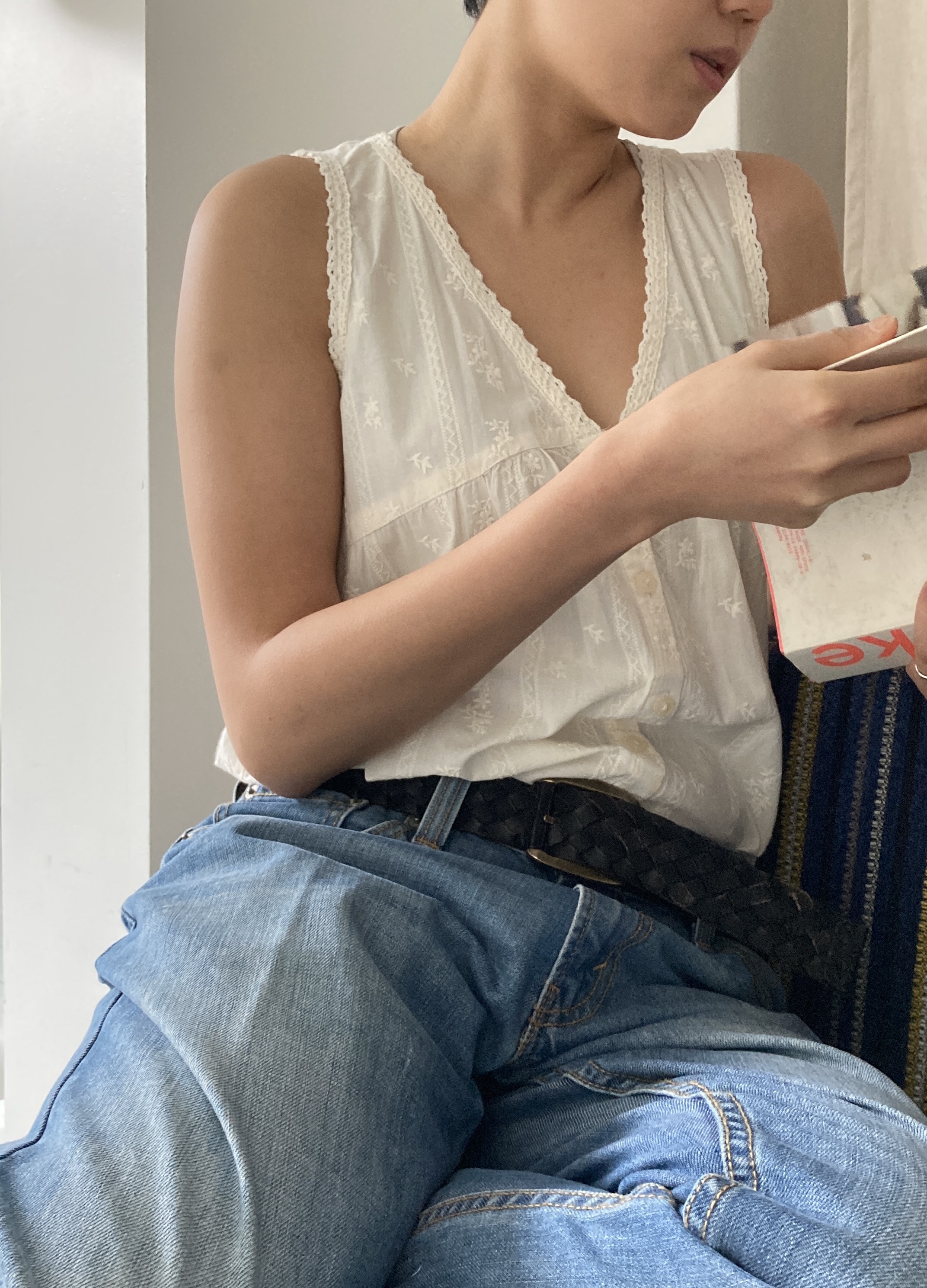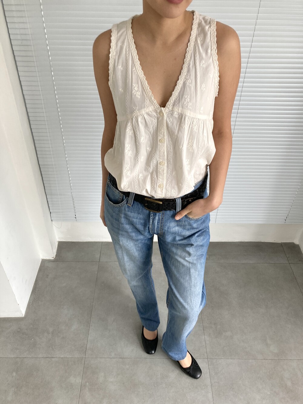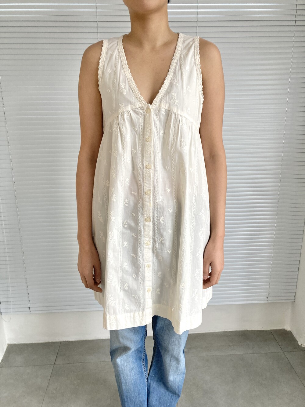 ivory embroidered sleeveless