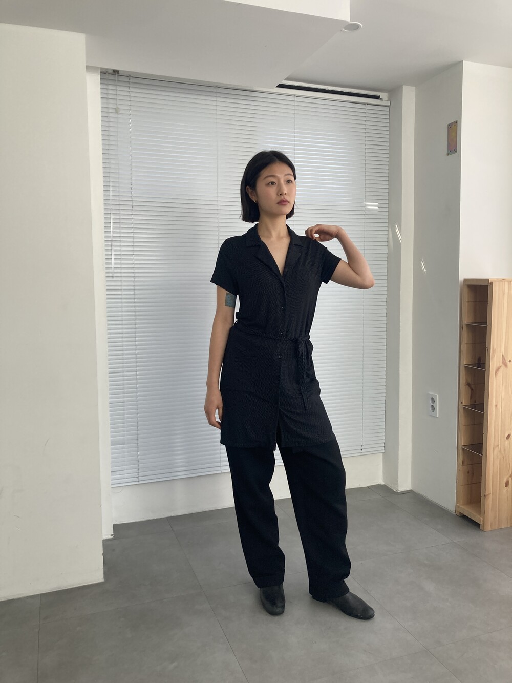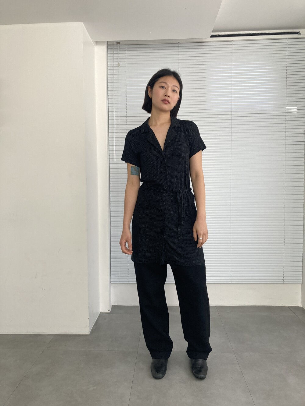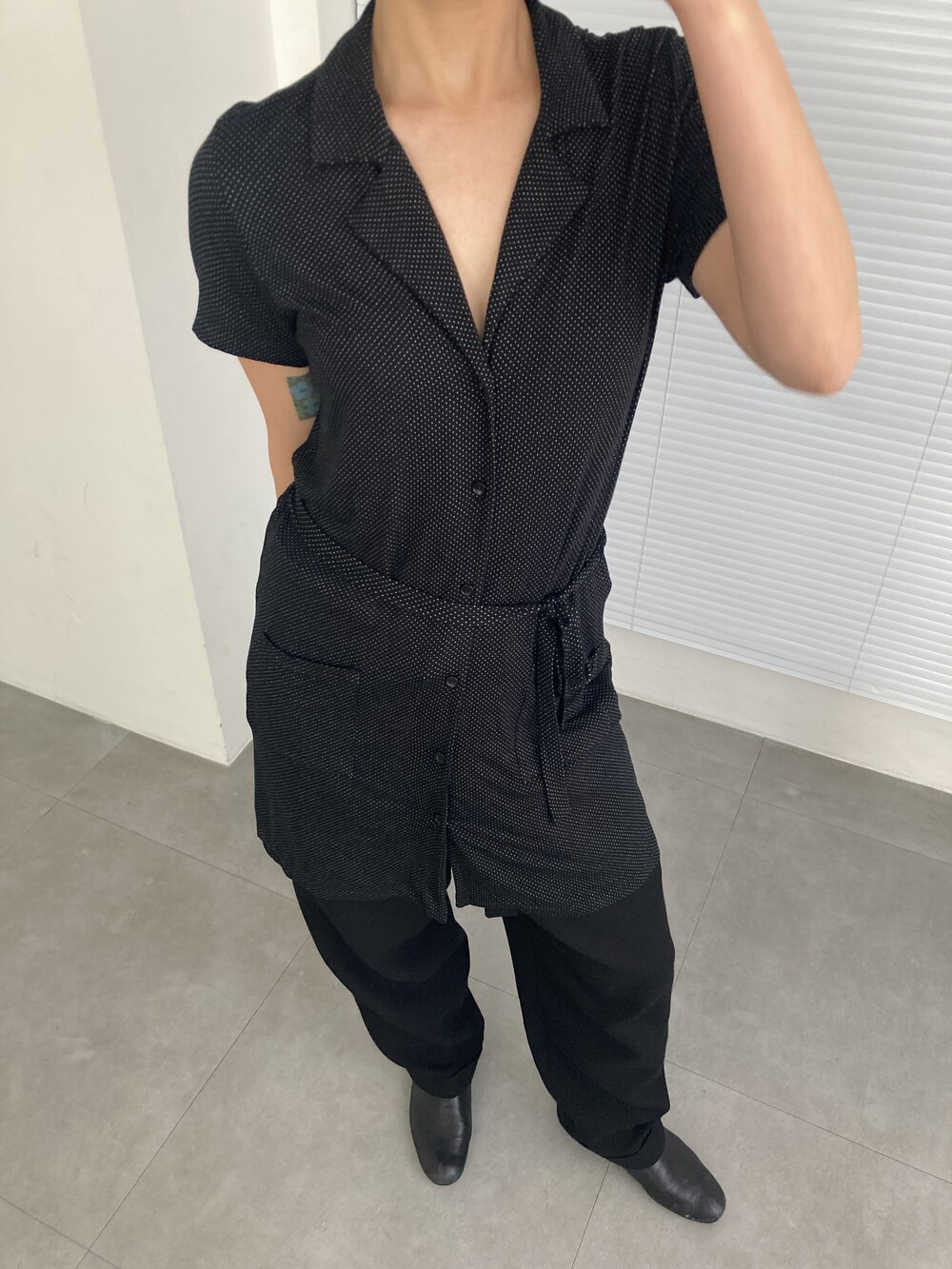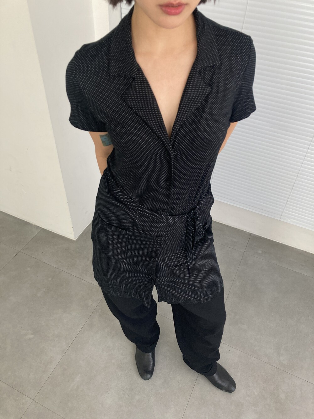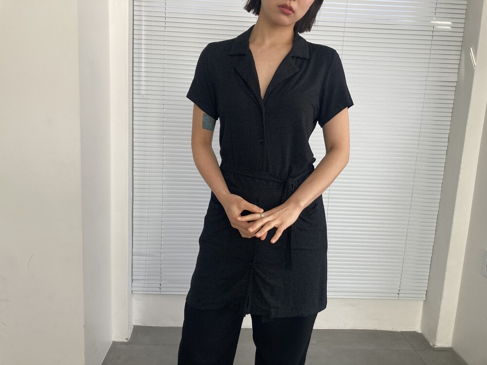 AGNES.B dot belted shirt