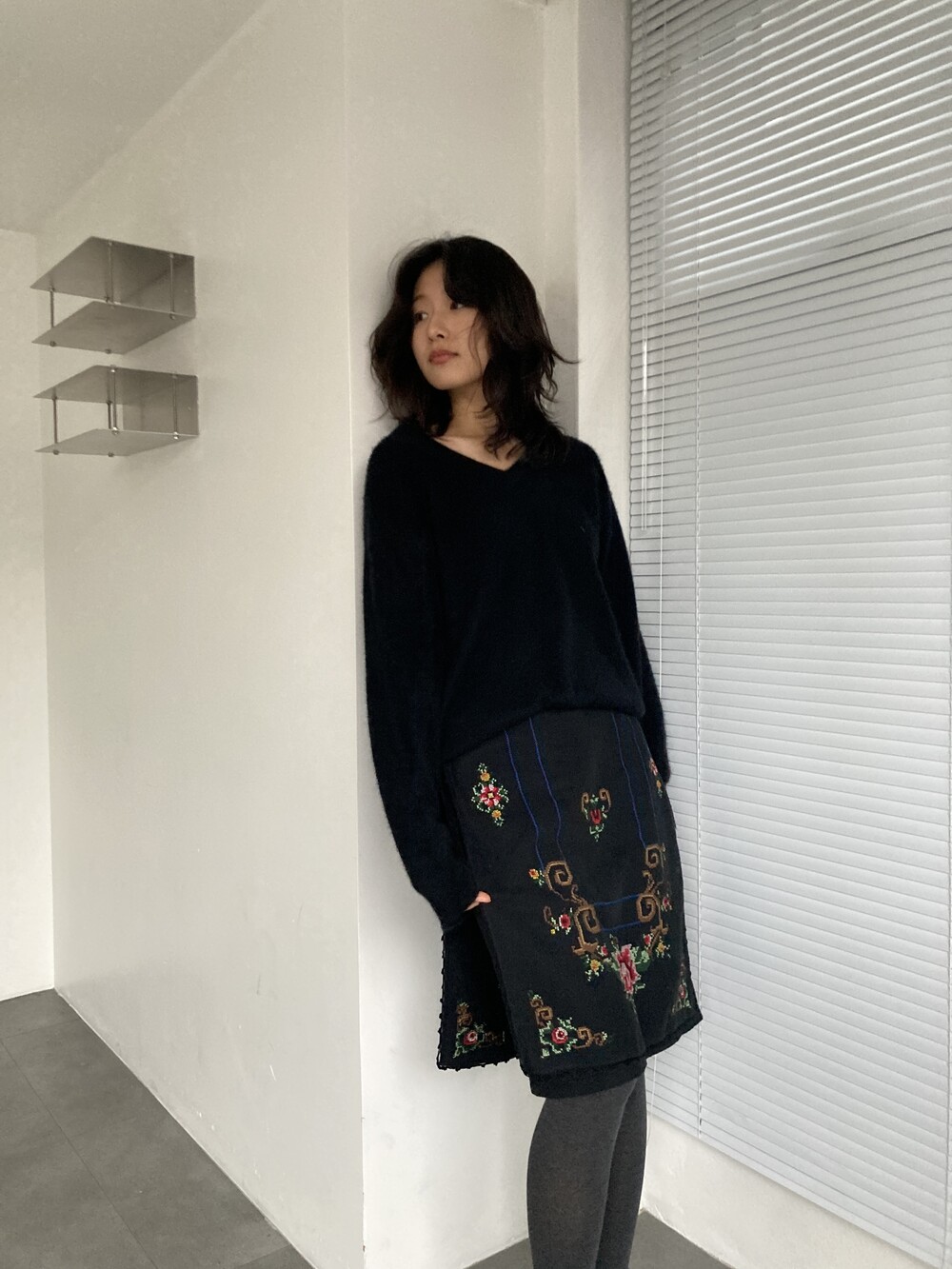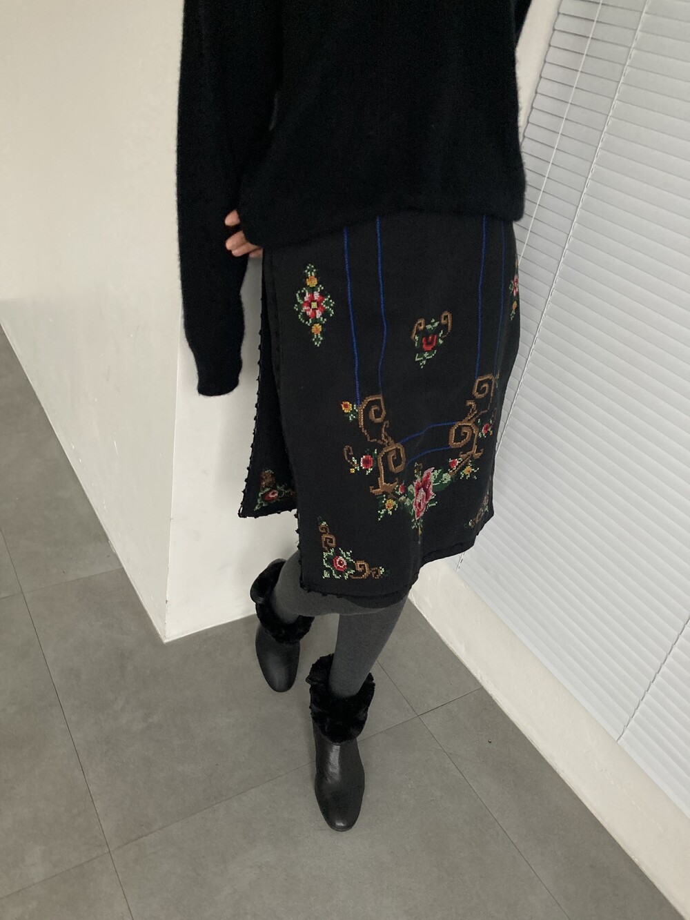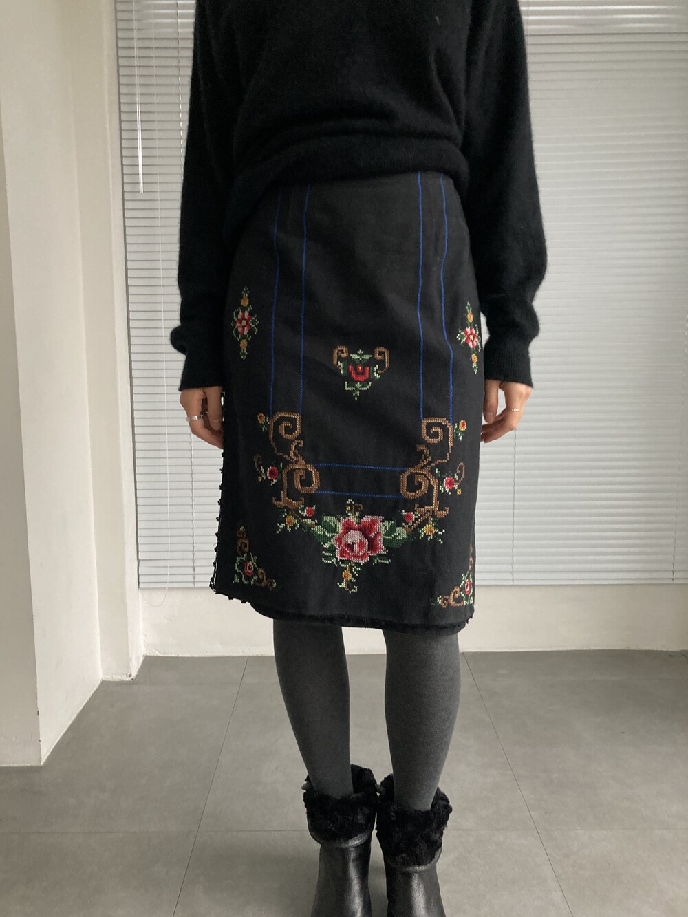 BEAMS hand stitched rose skirt