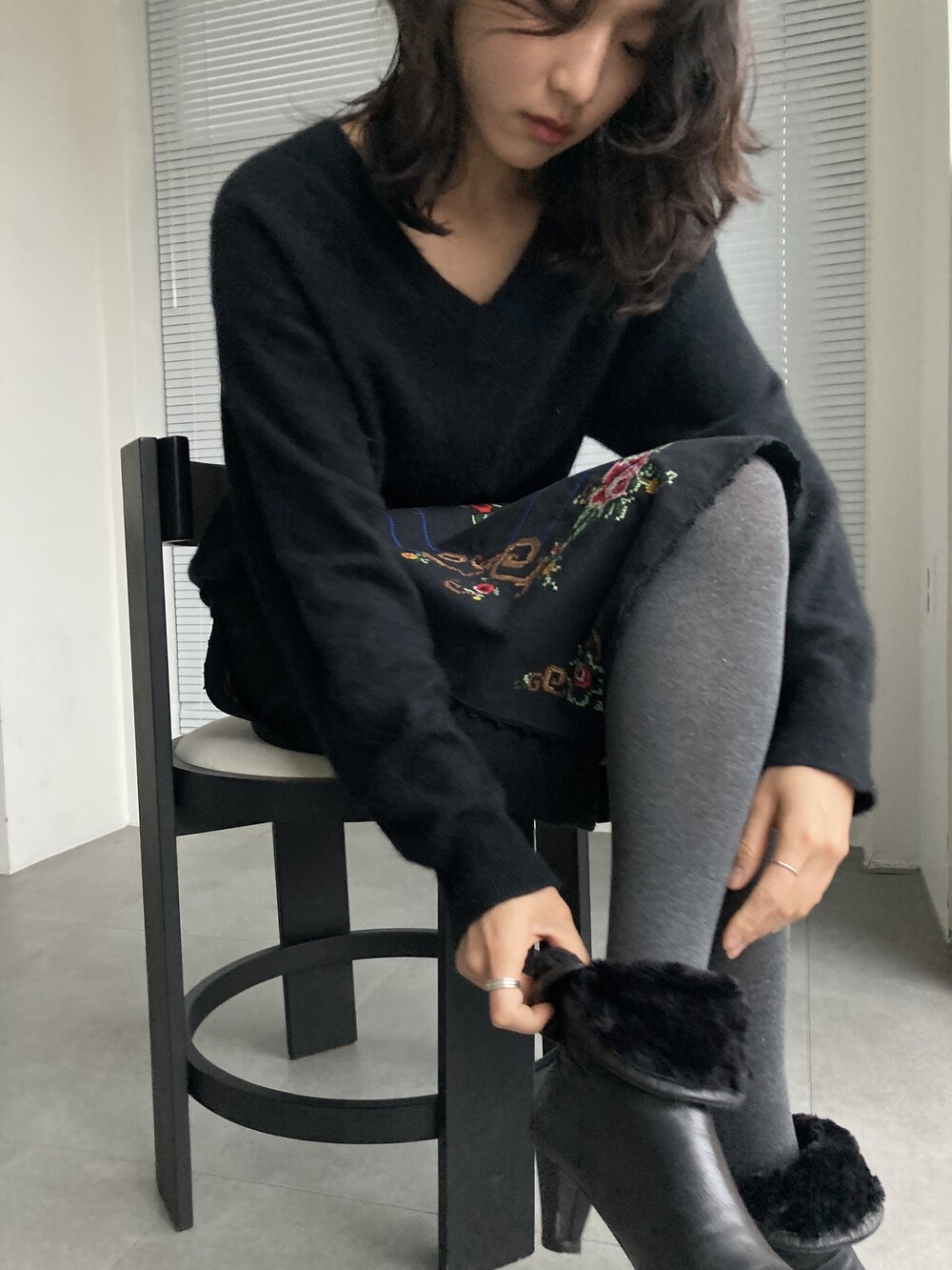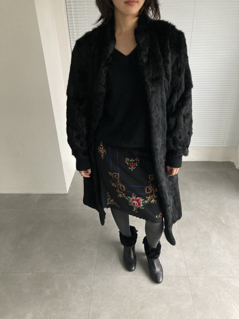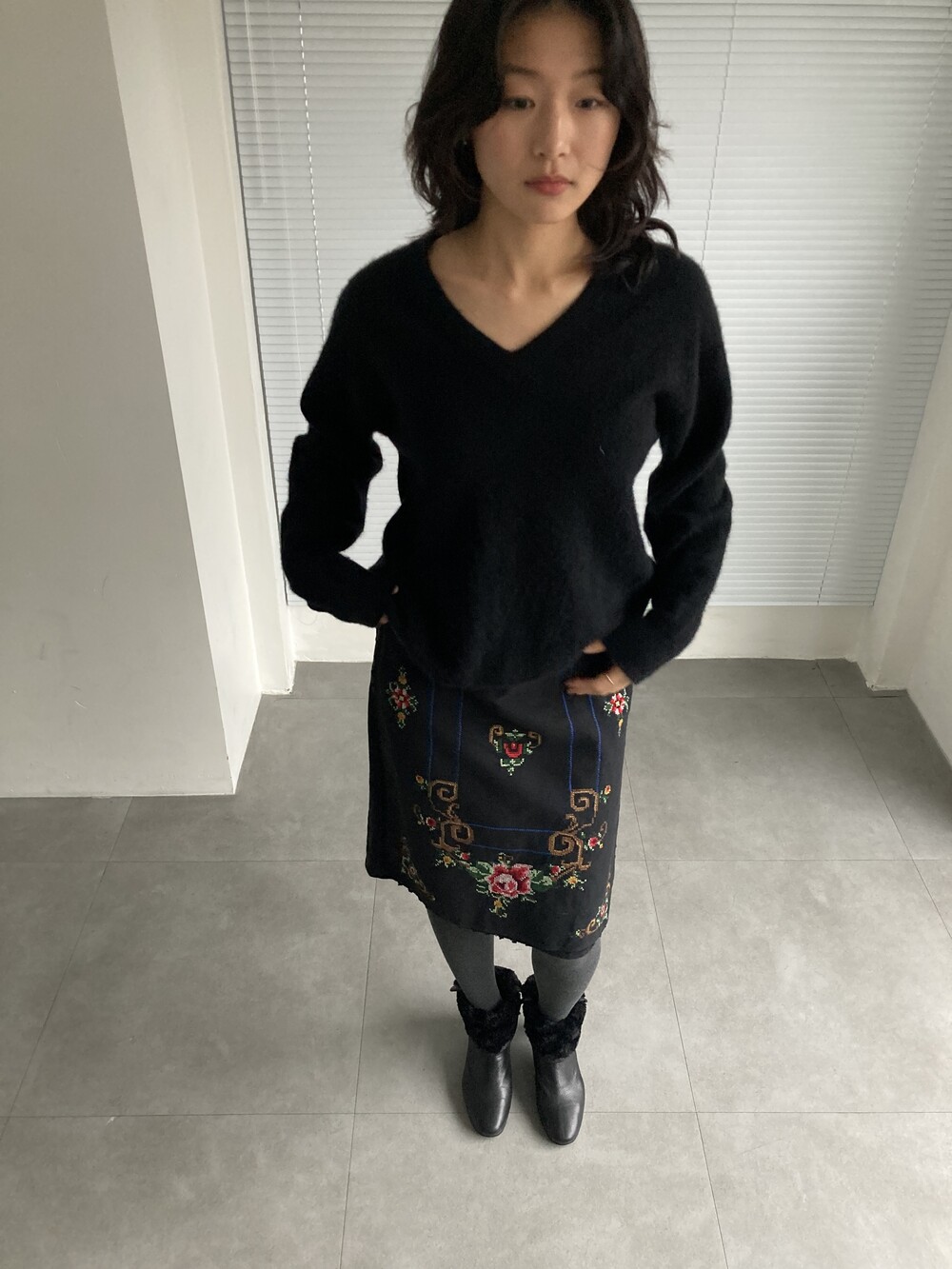 BEAMS hand stitched rose skirt