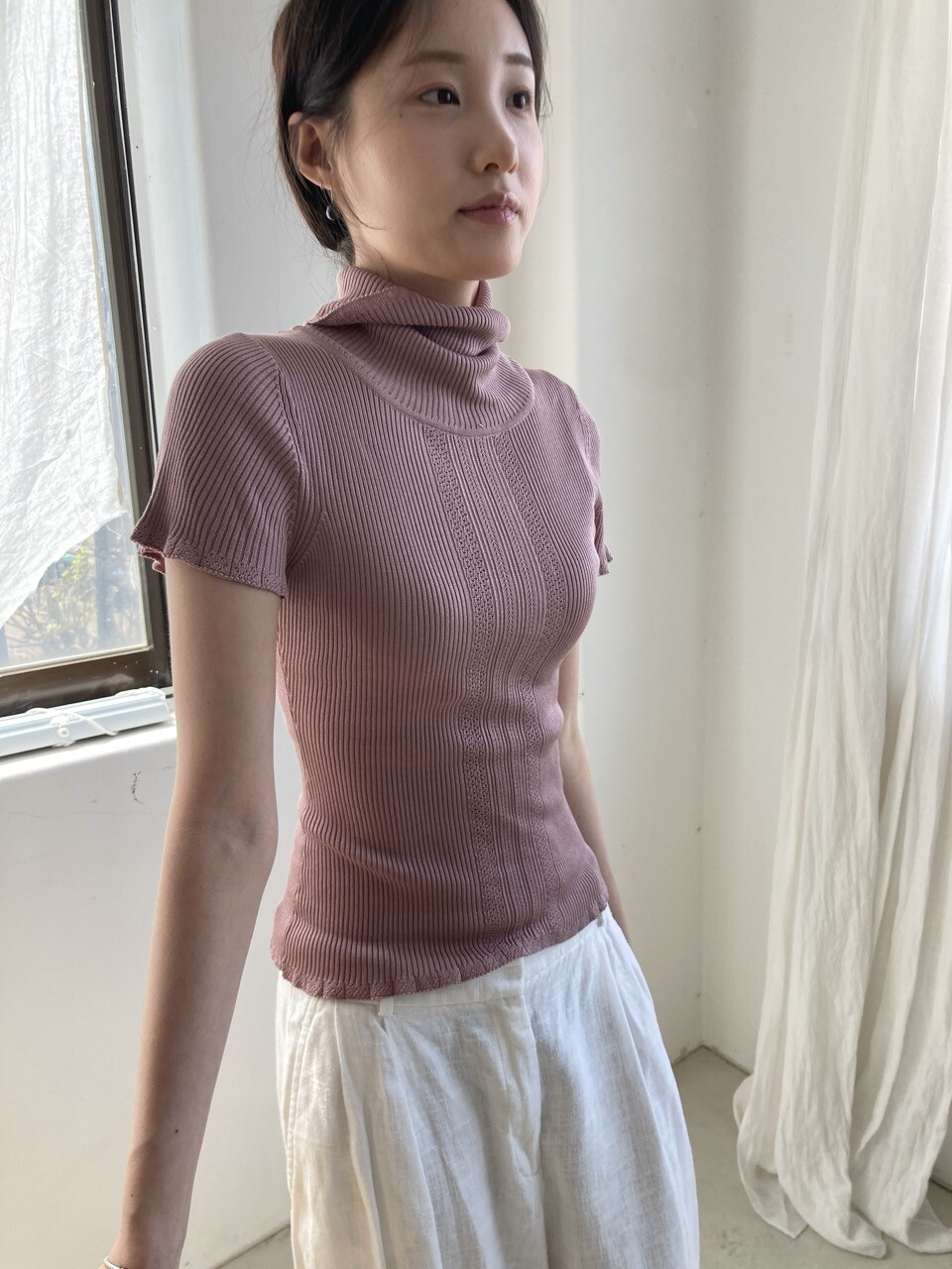 pink rib knit turtleneck