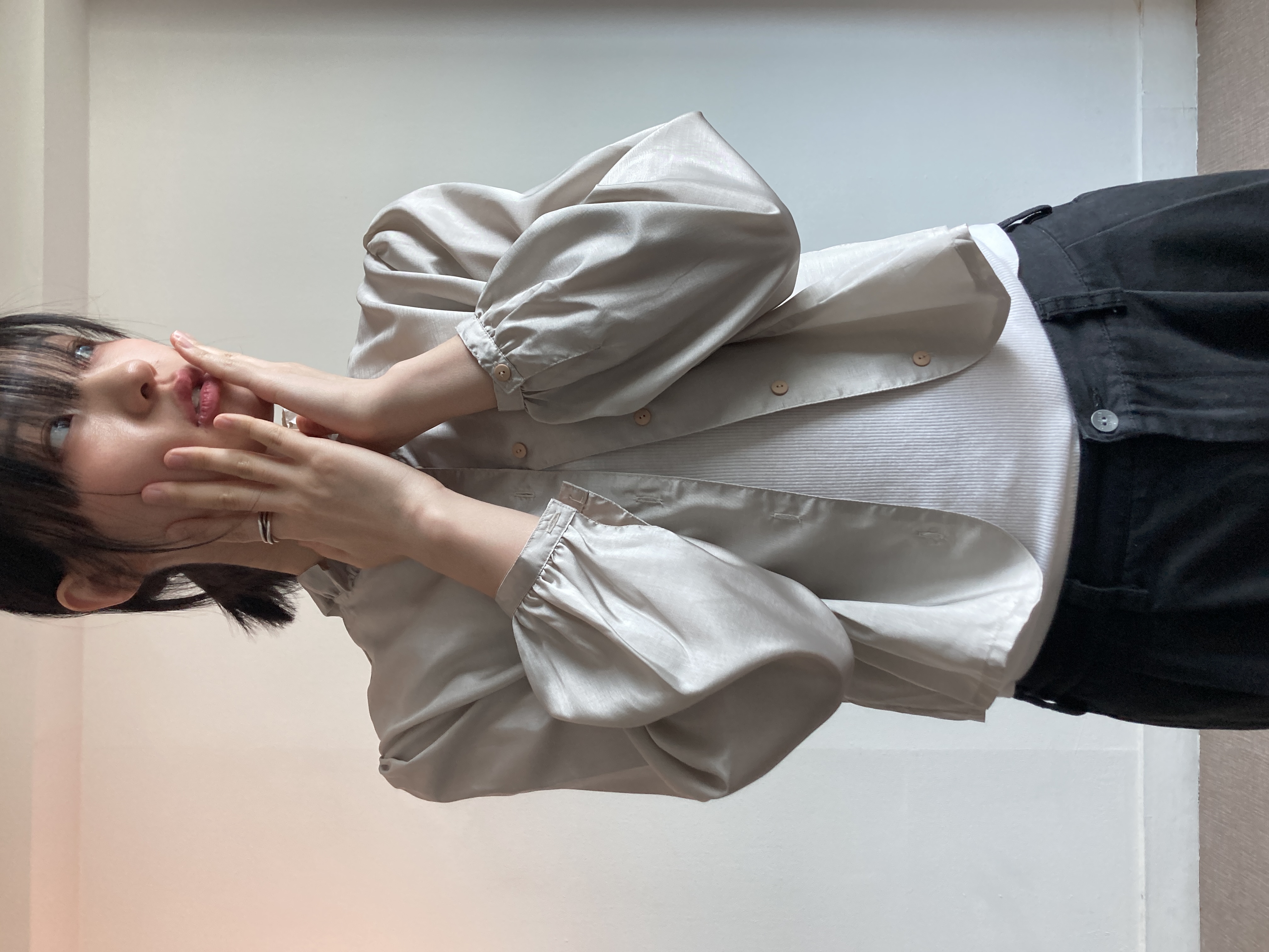 grey frill blouse