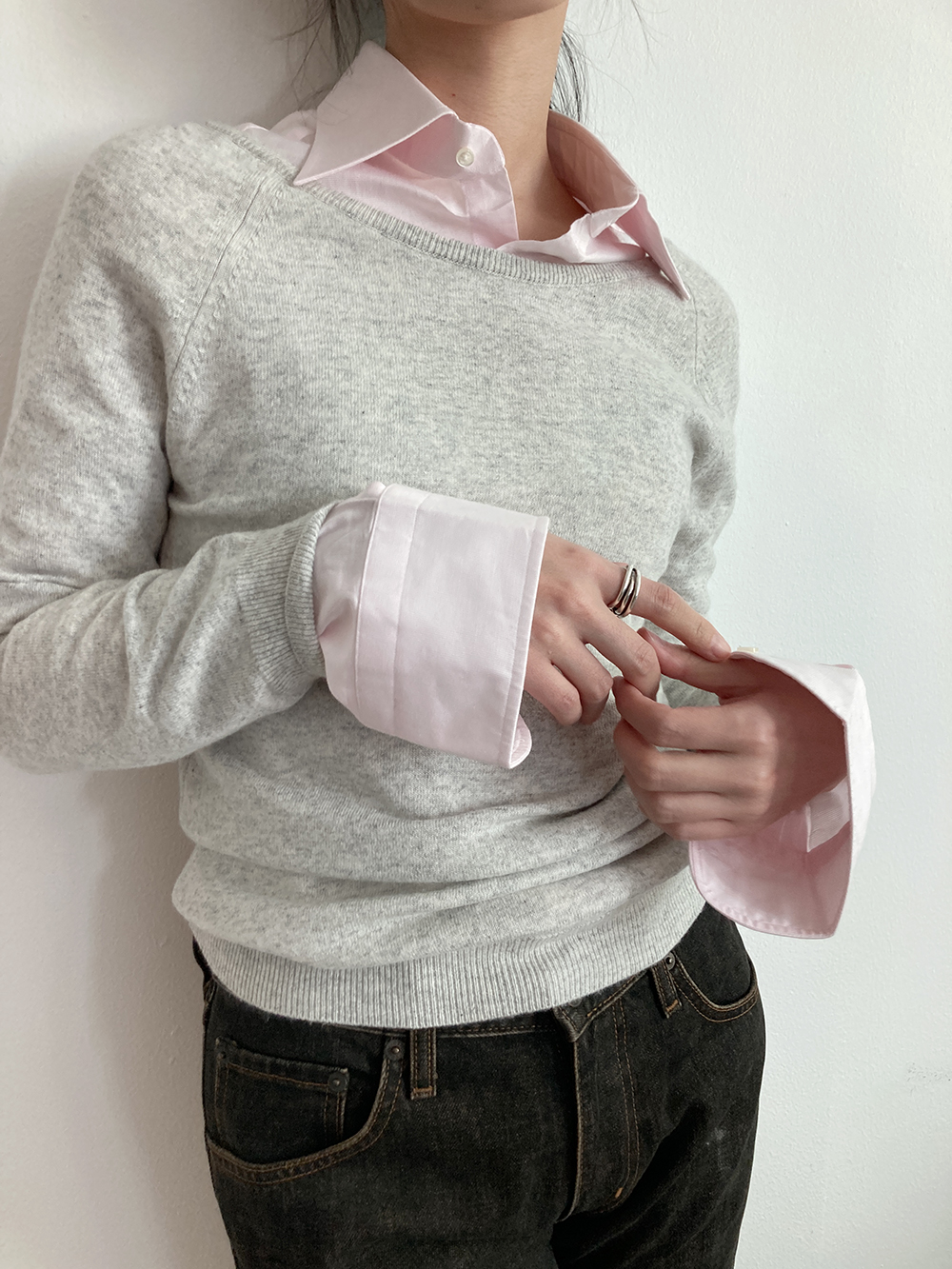 캐시미어 실크 울 혼방의 보트넥 니트입니다.