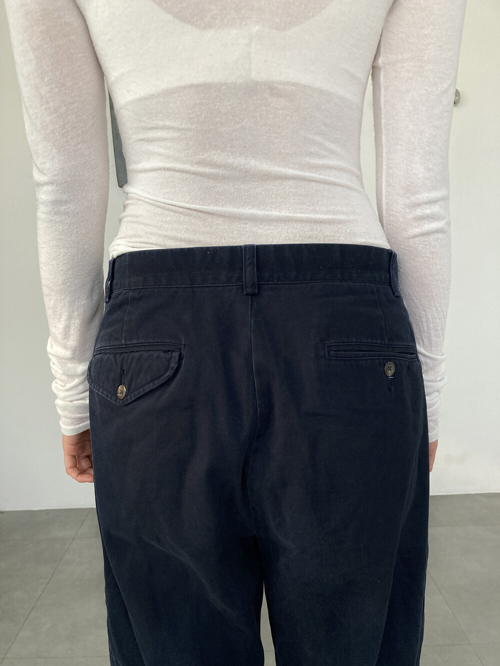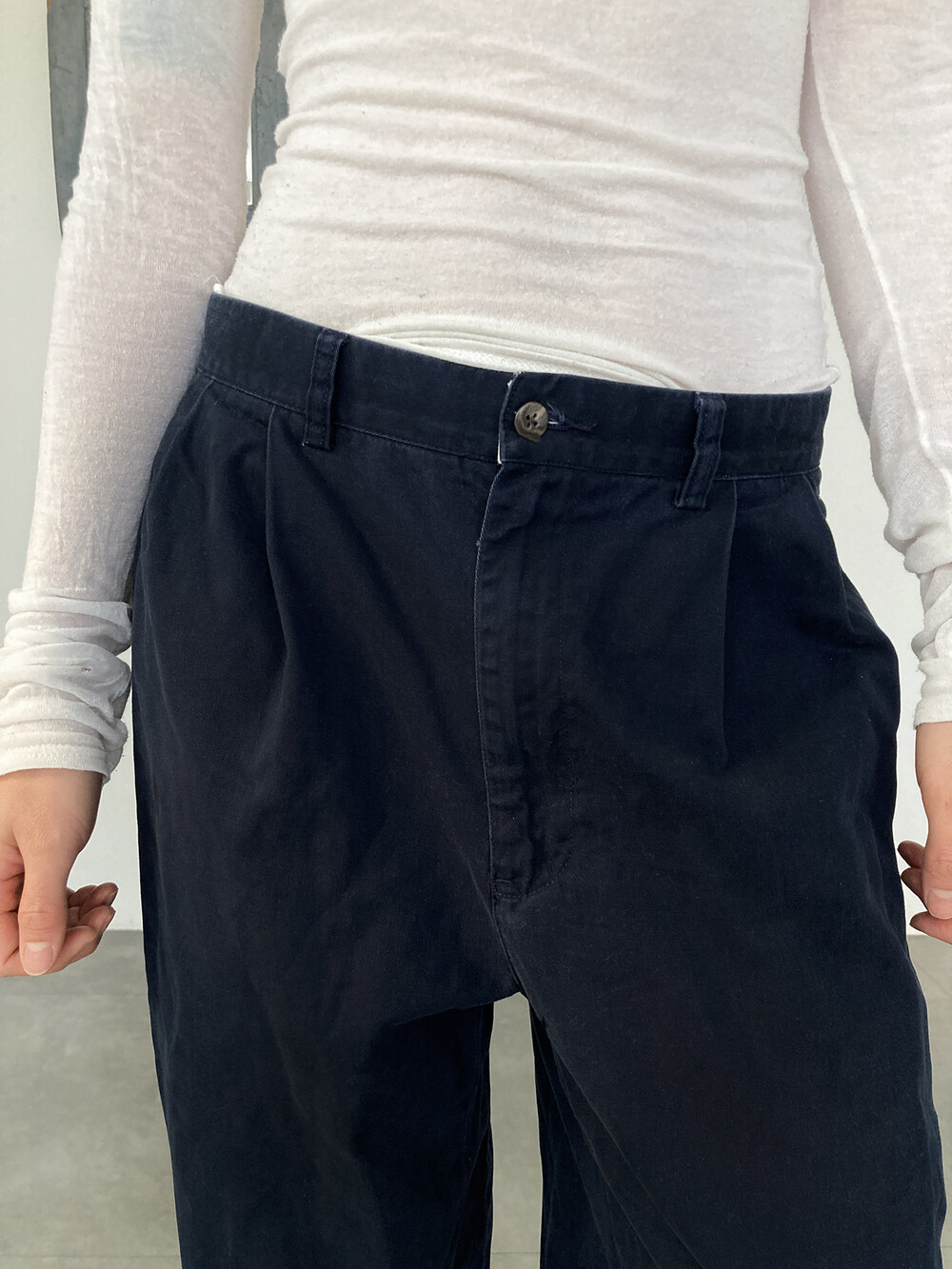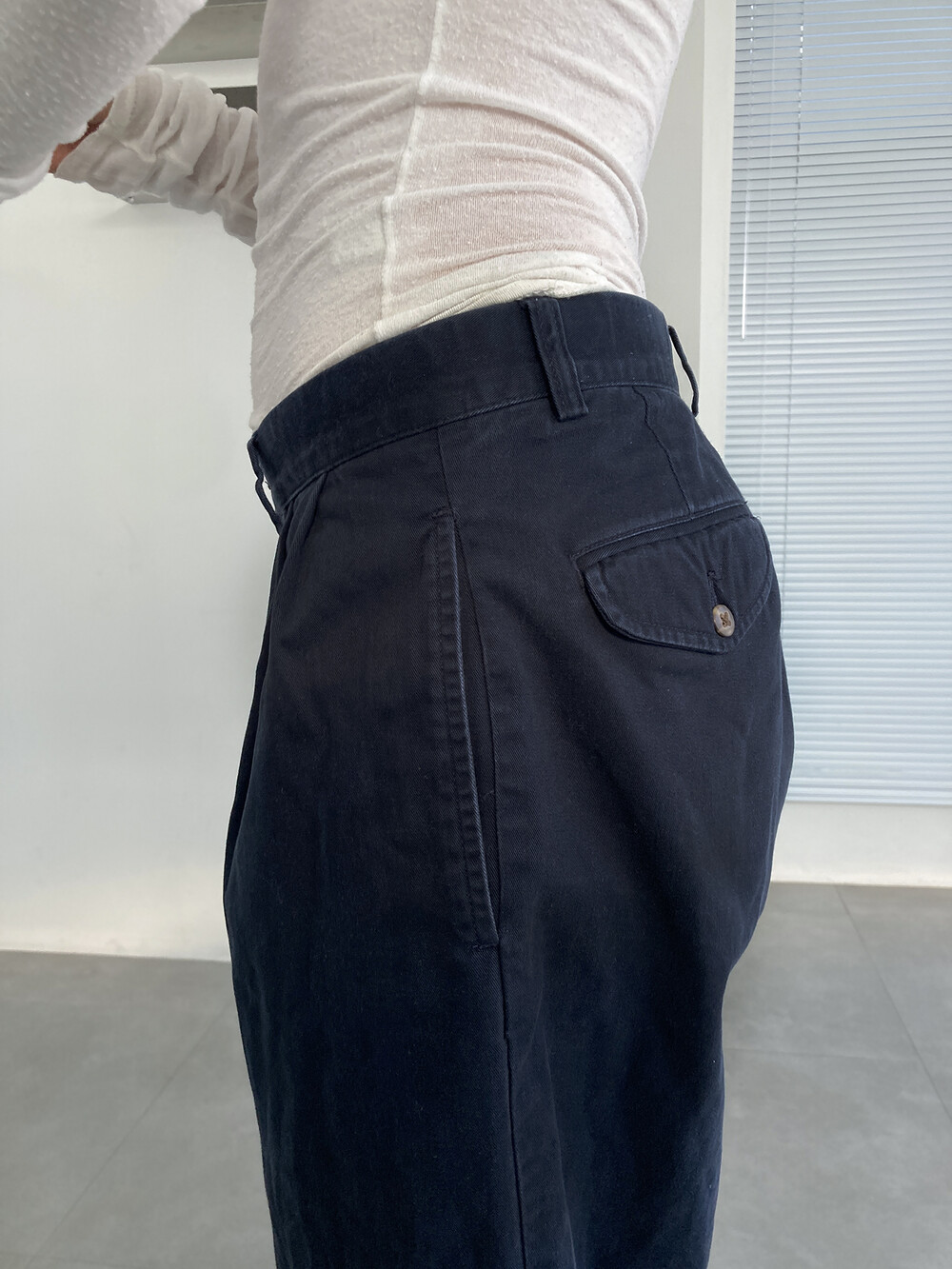 RALPH LAUREN navy cotton pintuck pants