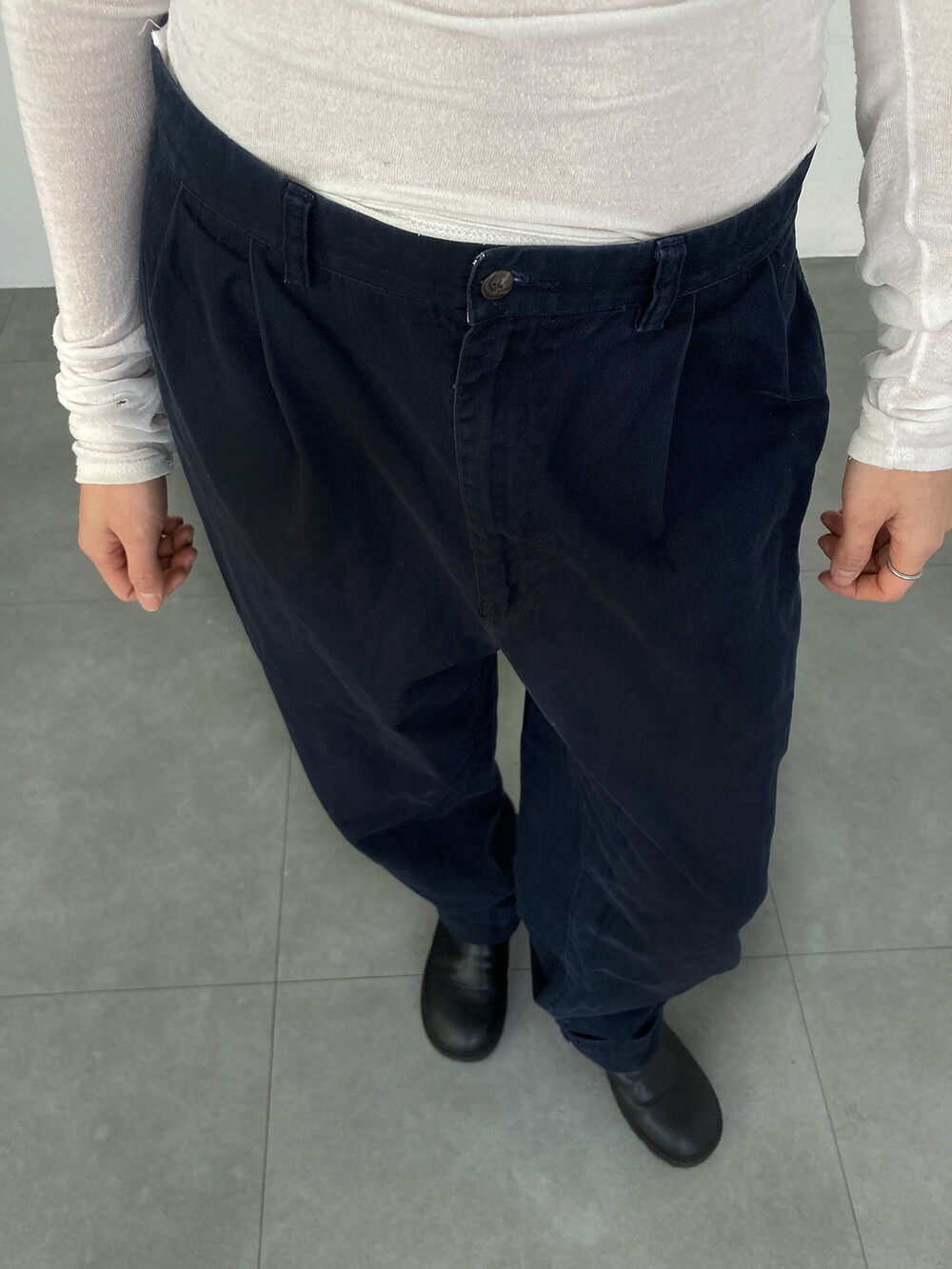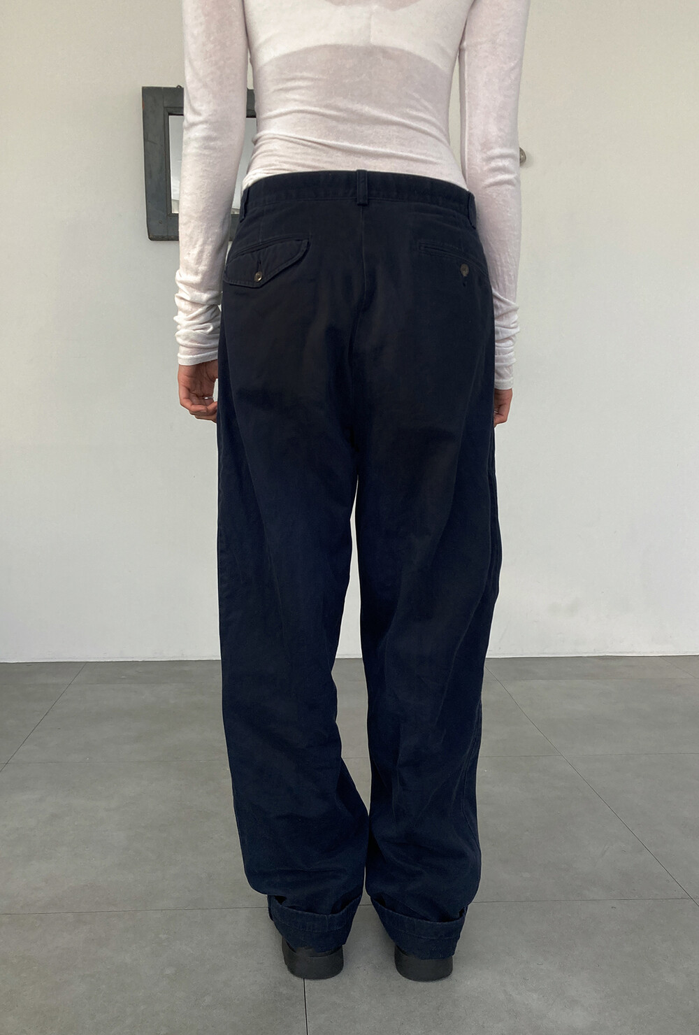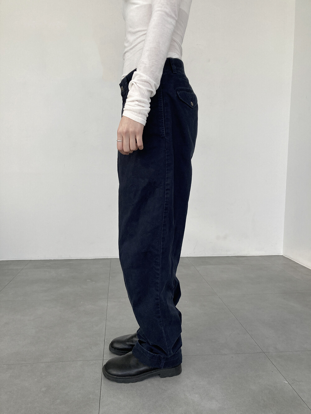 RALPH LAUREN navy cotton pintuck pants