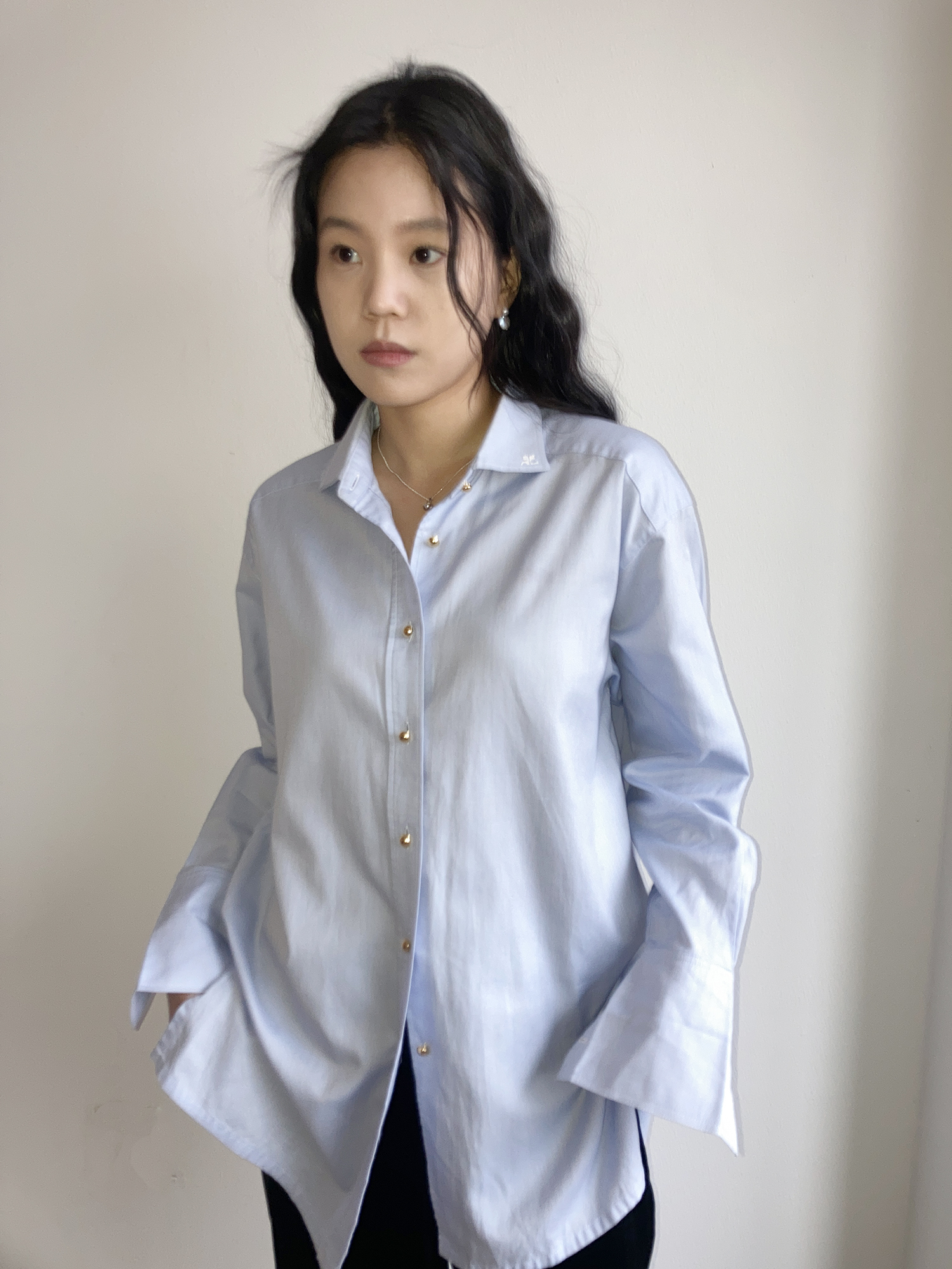 Courrèges golden button shirt