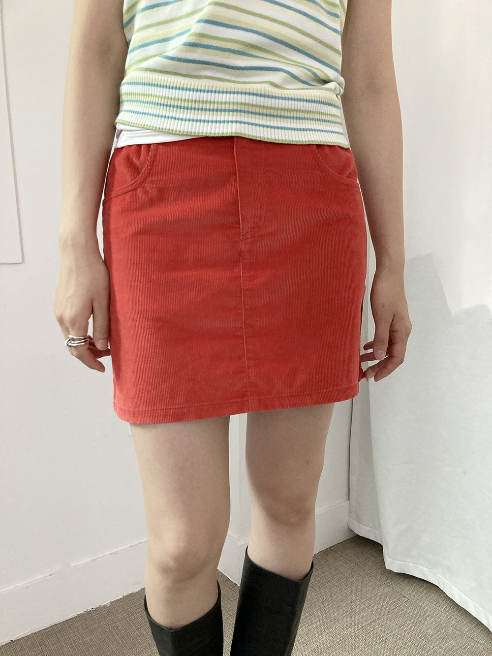 A.P.C의 레드컬러 코듀로이 스커트입니다.