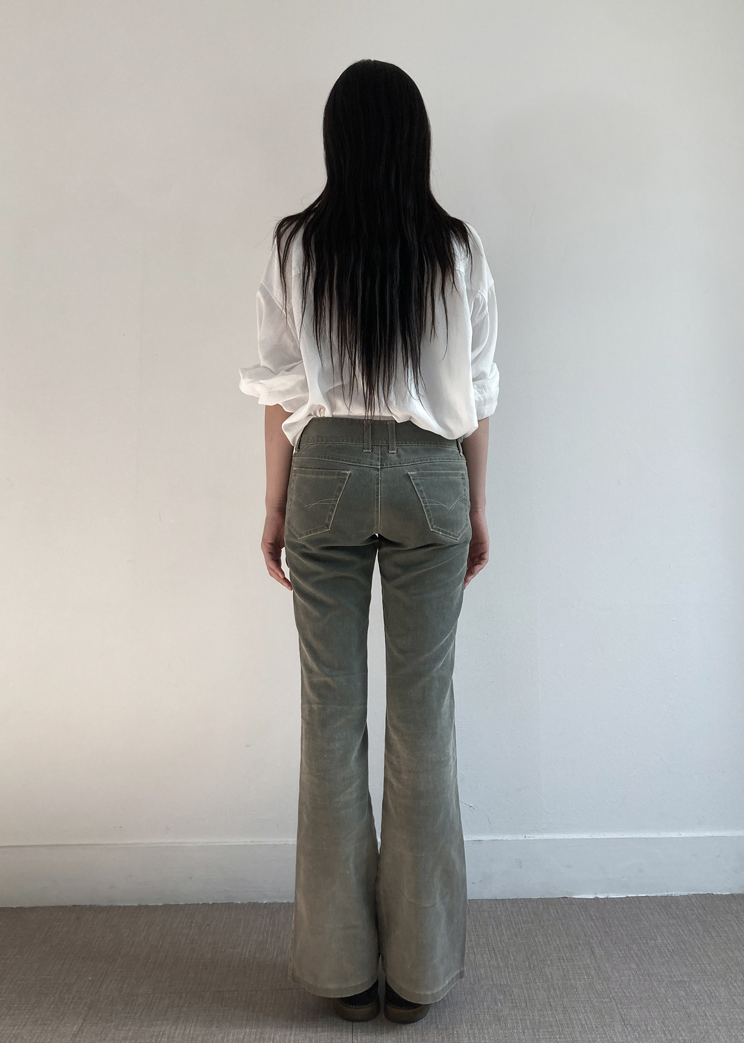 로우 라이즈 부츠 컷 데님 팬츠입니다.