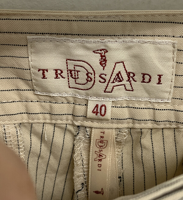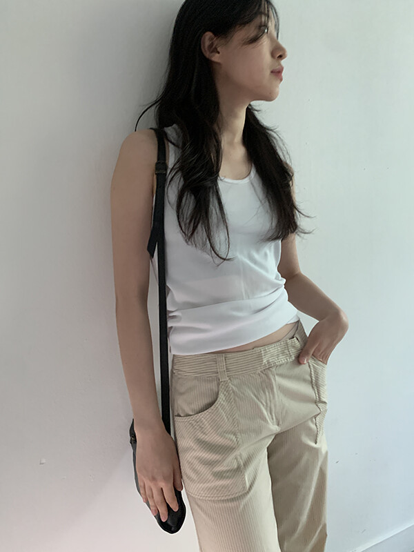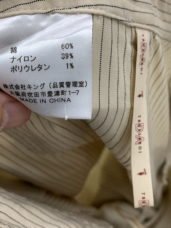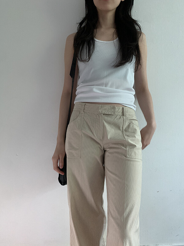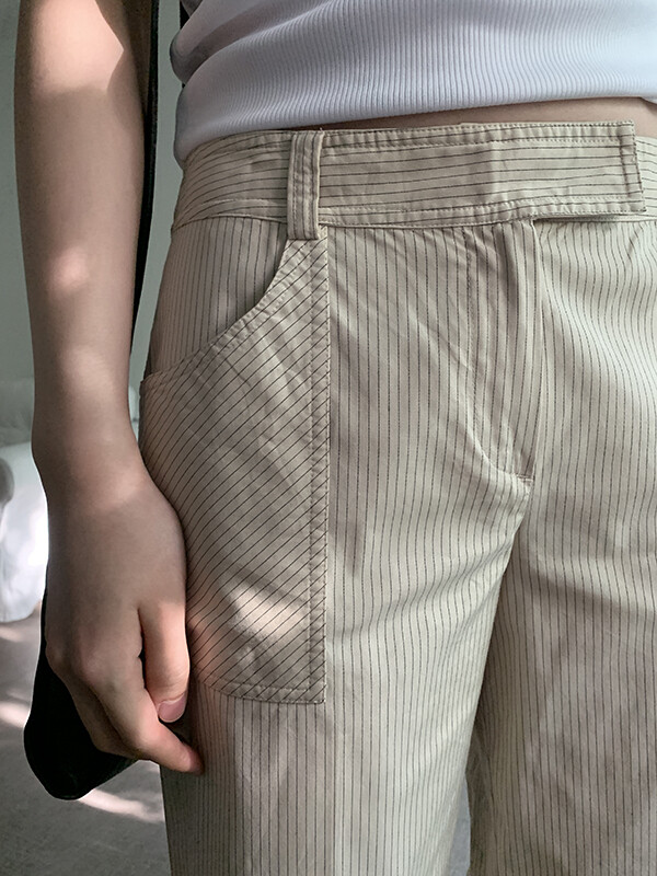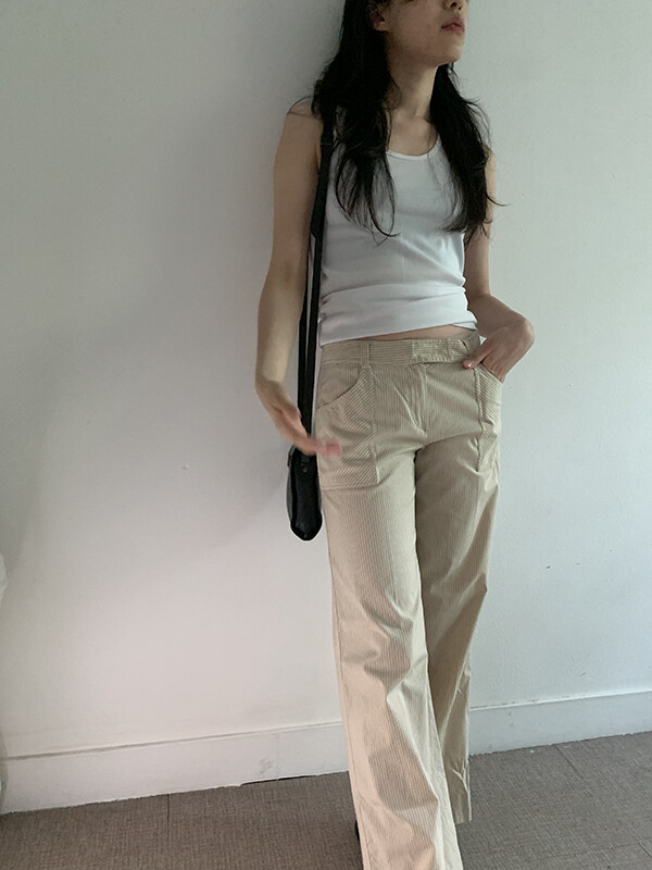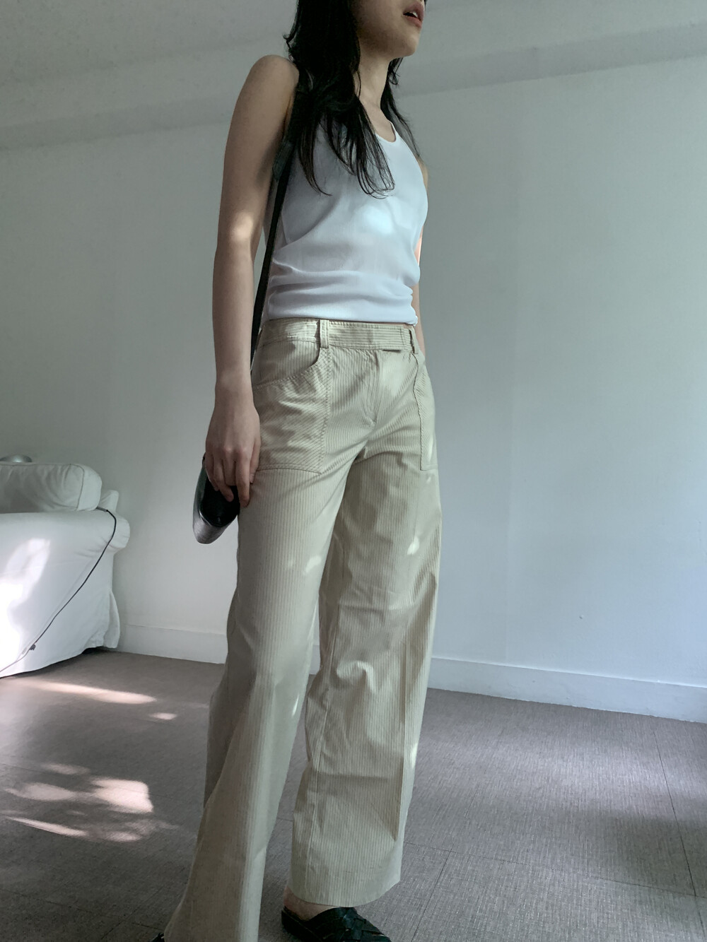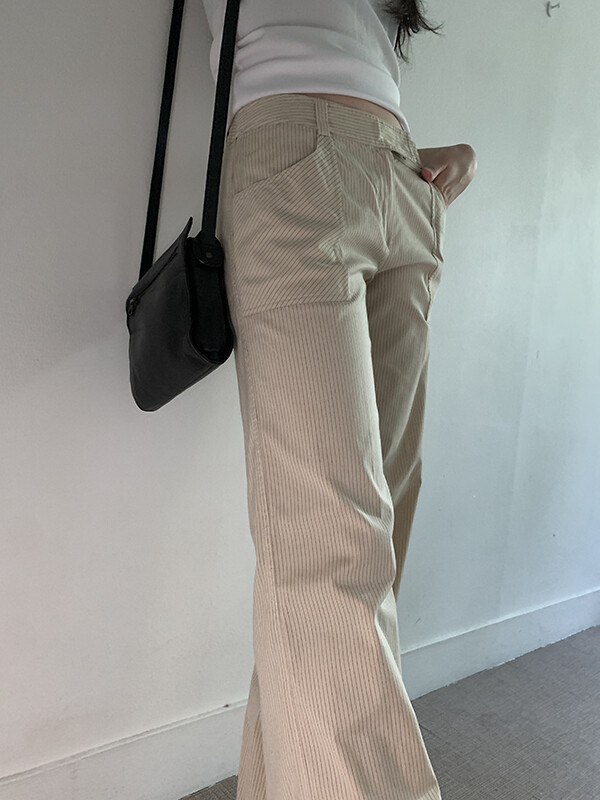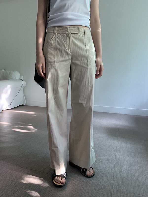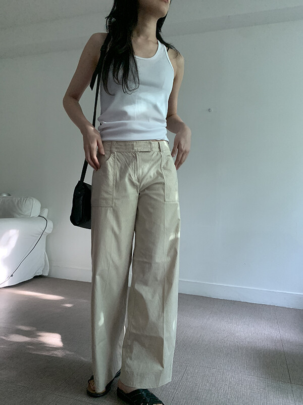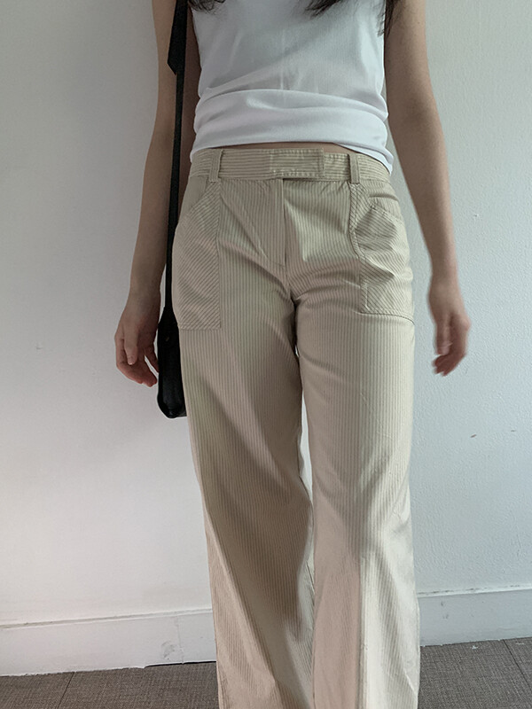 트루사디의 베이지컬러 스트라이프 팬츠입니다.