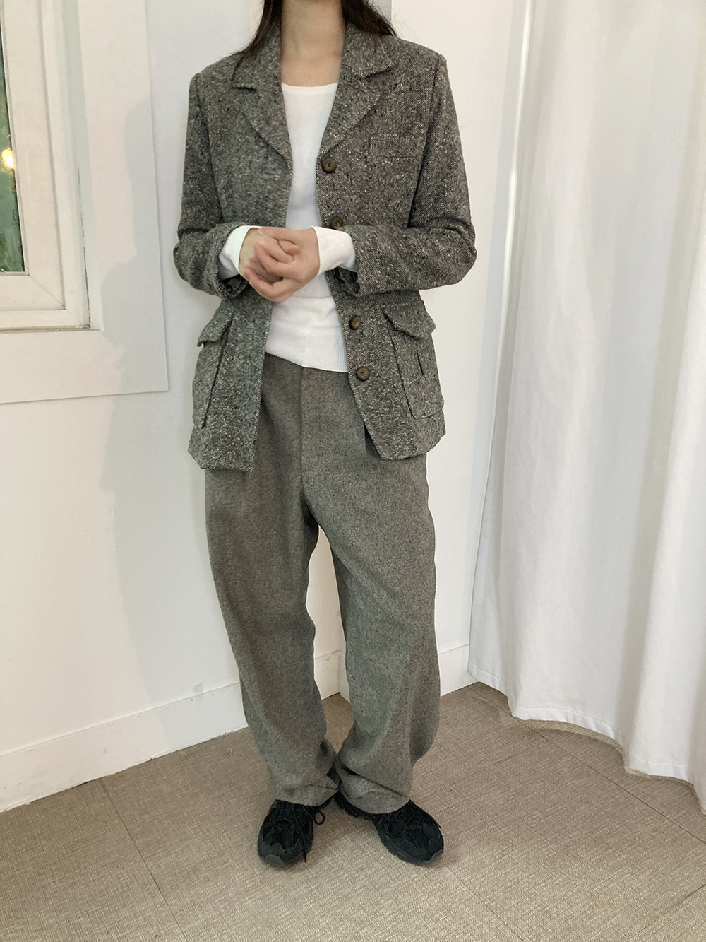 오묘한 원사 컬러가 매력 있는 울싱크자켓입니다.