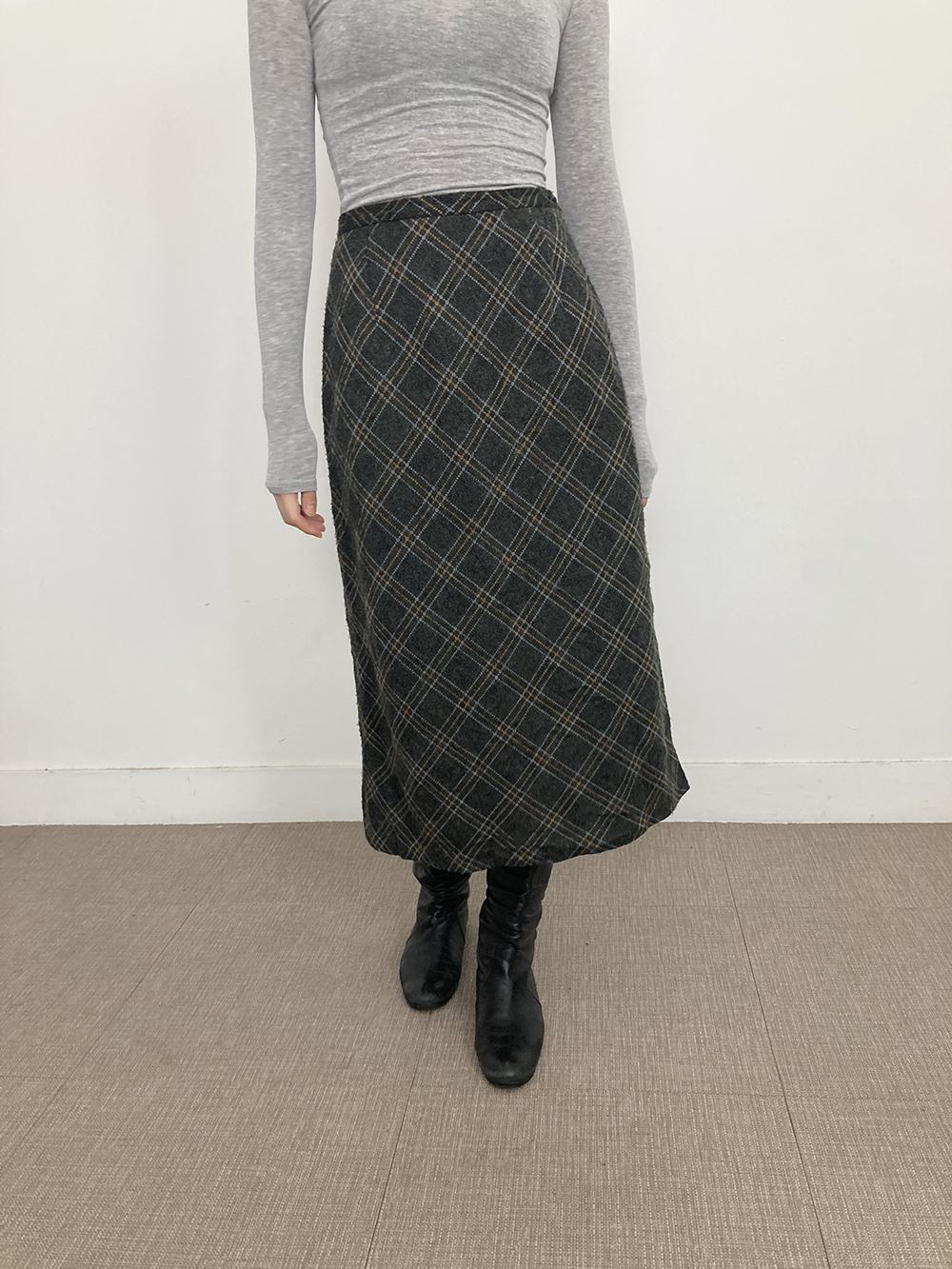 울혼방 소재의 체크 롱 스커트입니다.