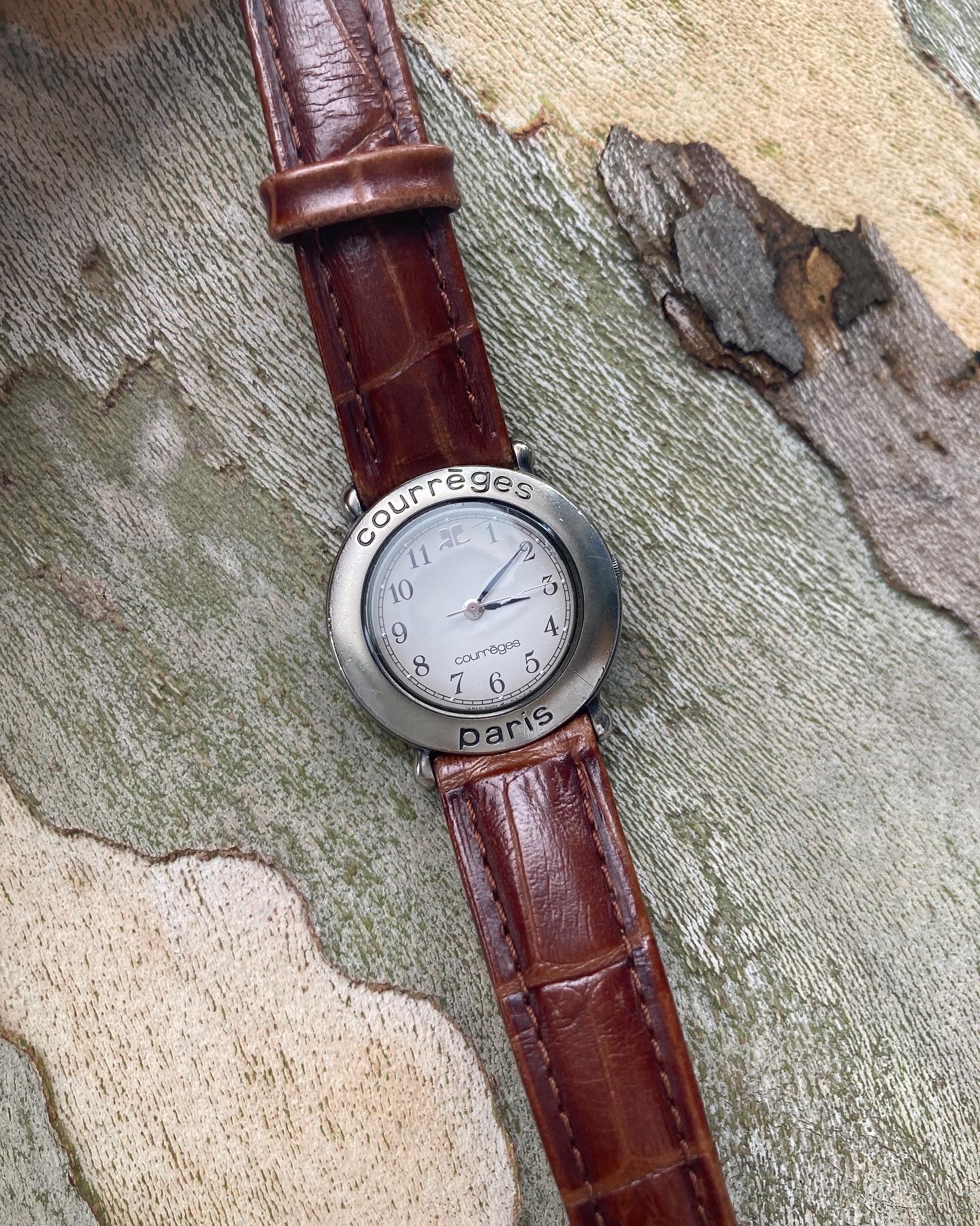 Courrèges classic brown leather watch
