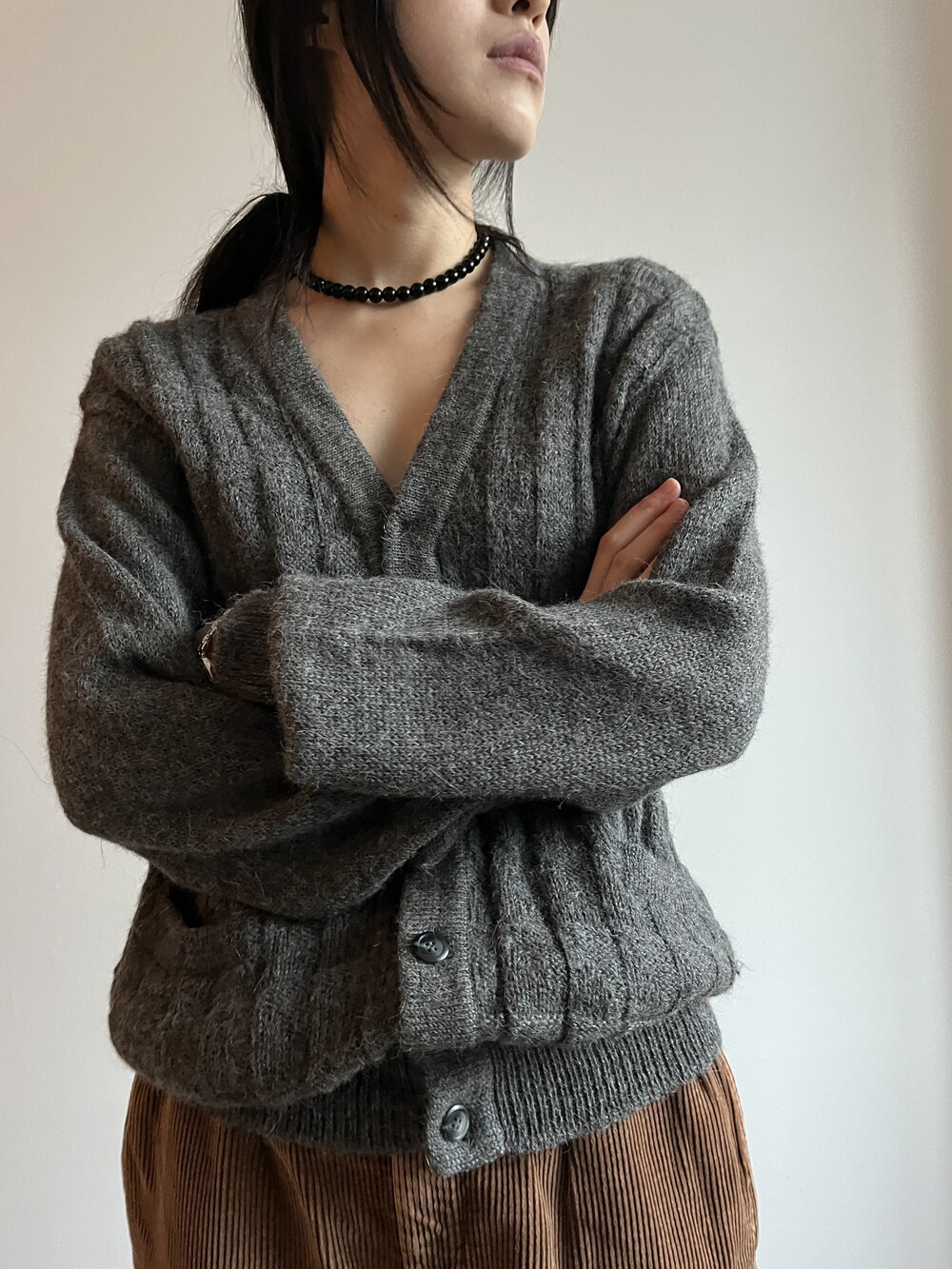 grey wool cardigan