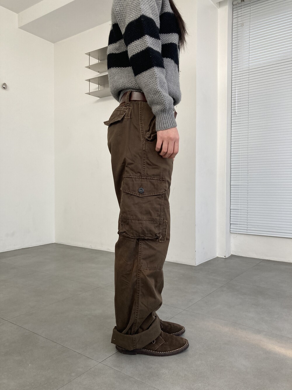 워크팬츠 느낌이 좋은 브라운 컬러의 카고 팬츠입니다.