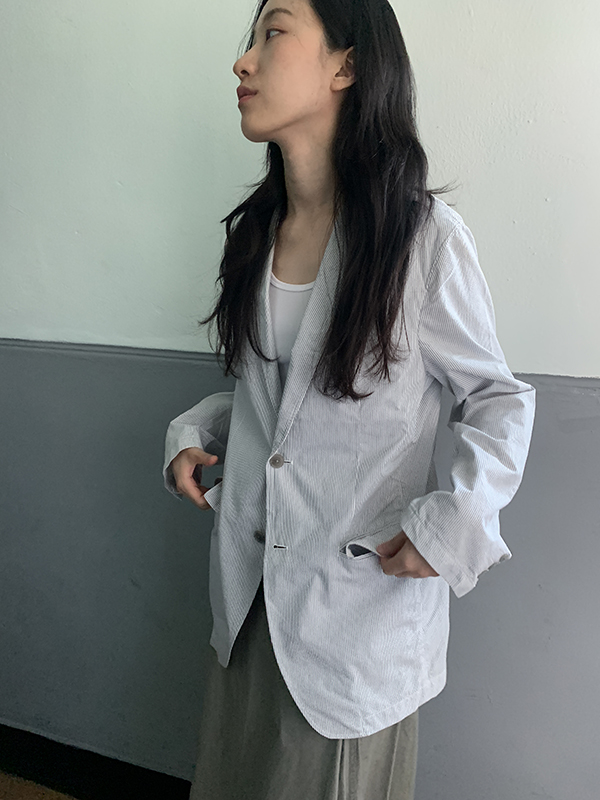 시원하고, 바스락거리는 소재감의 스트라이프 자켓입니다.