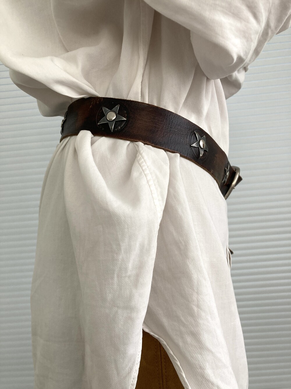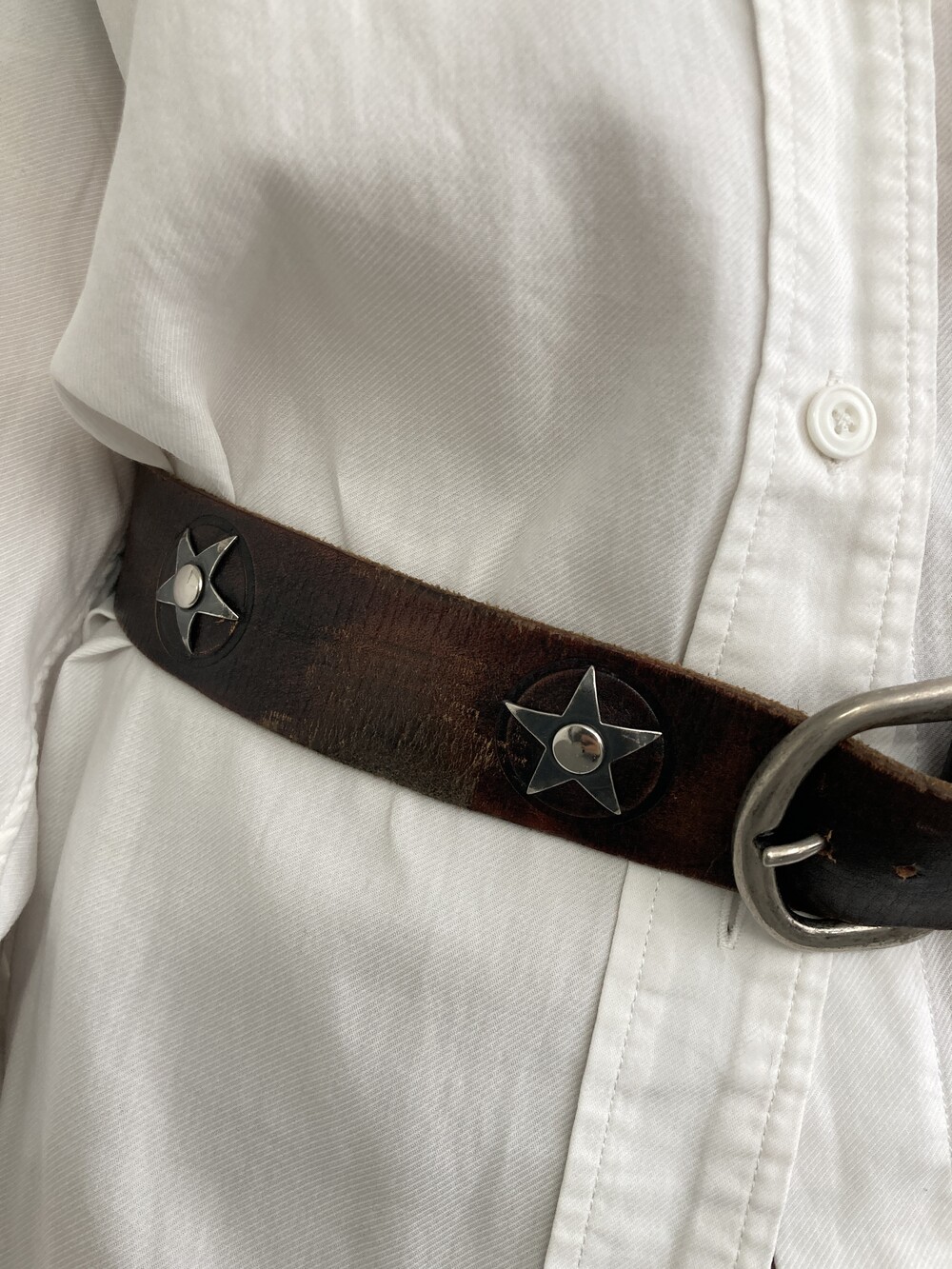 brown leather star concho belt