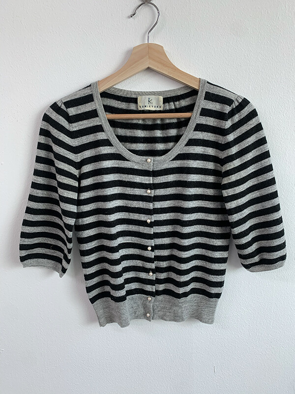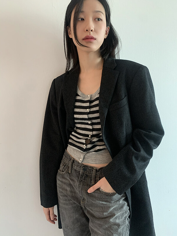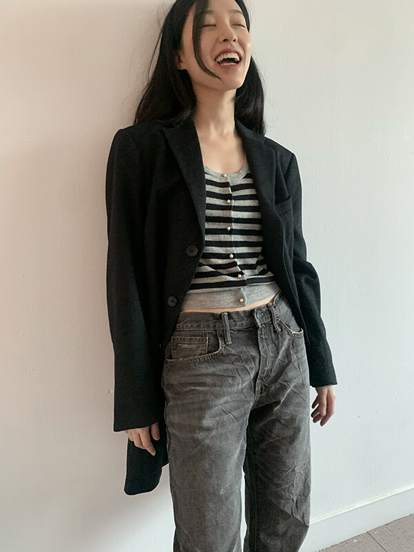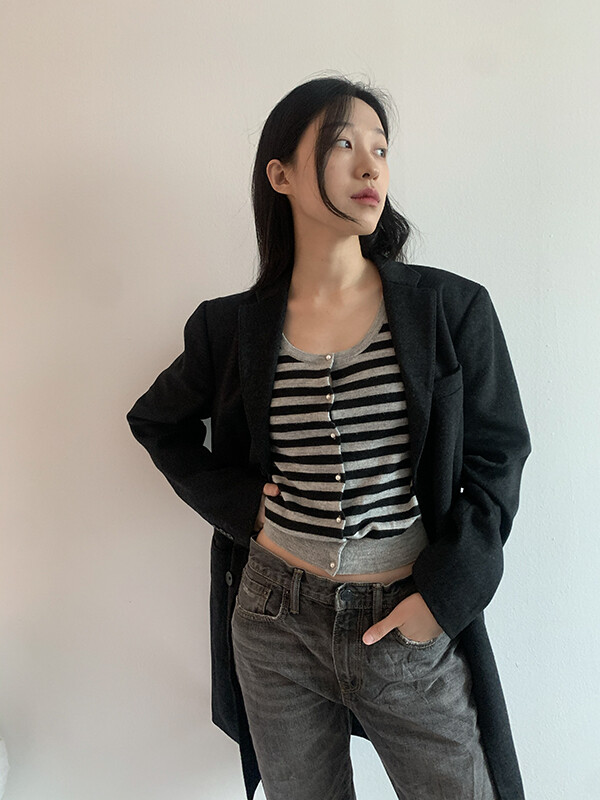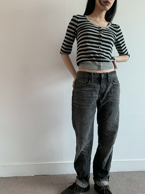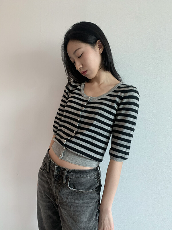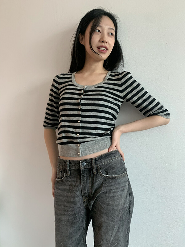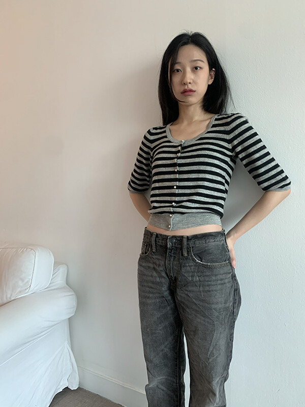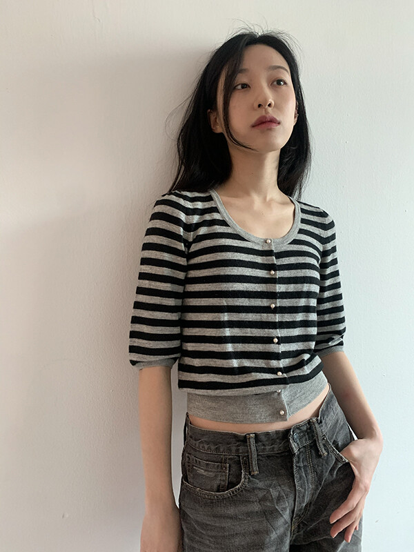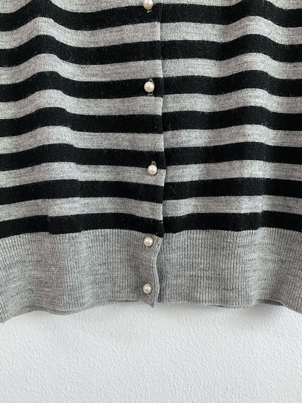 작은 진주버튼이 귀여운 단가라 가디건 입니다.